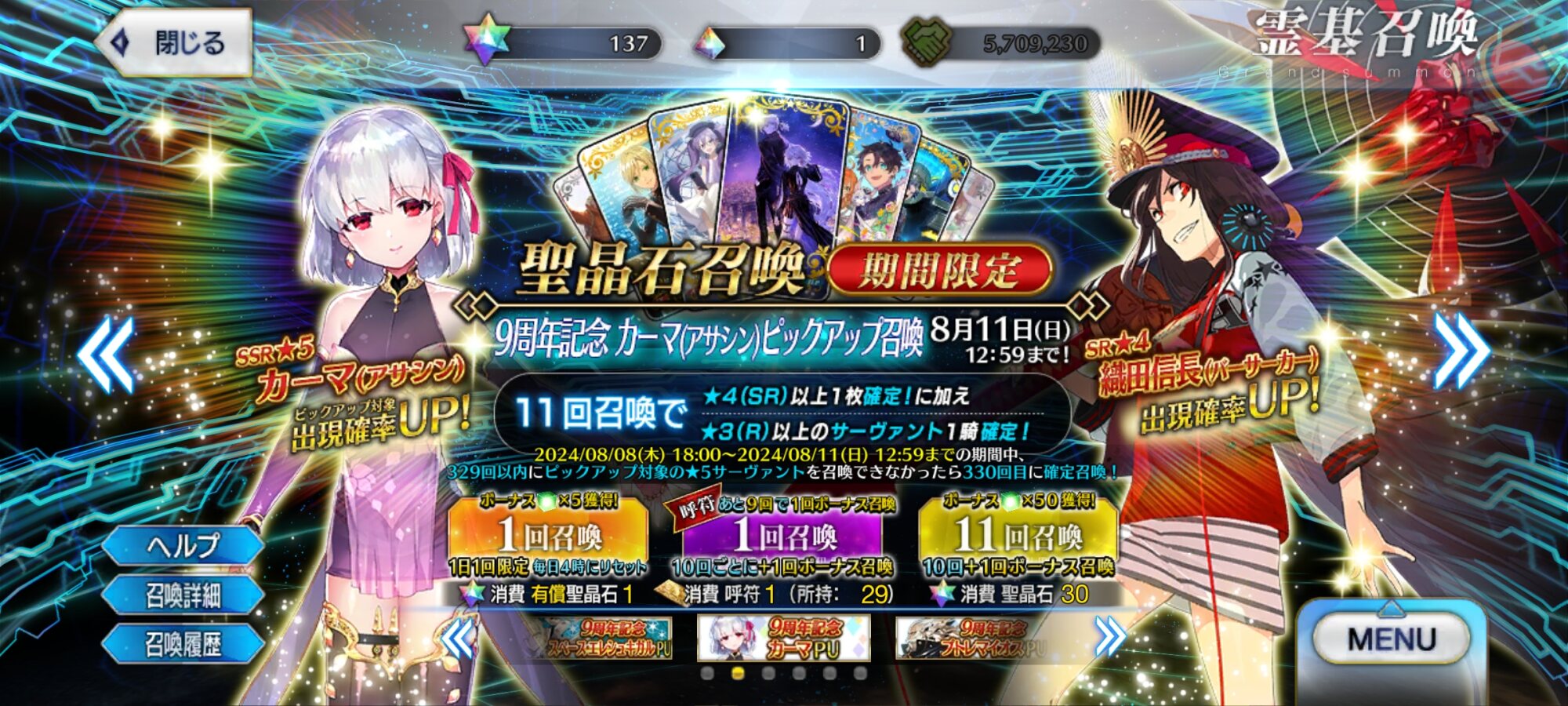 カーマちゃんはひけませんでしたが水着ノッブは二人ひけたのでよし立てました