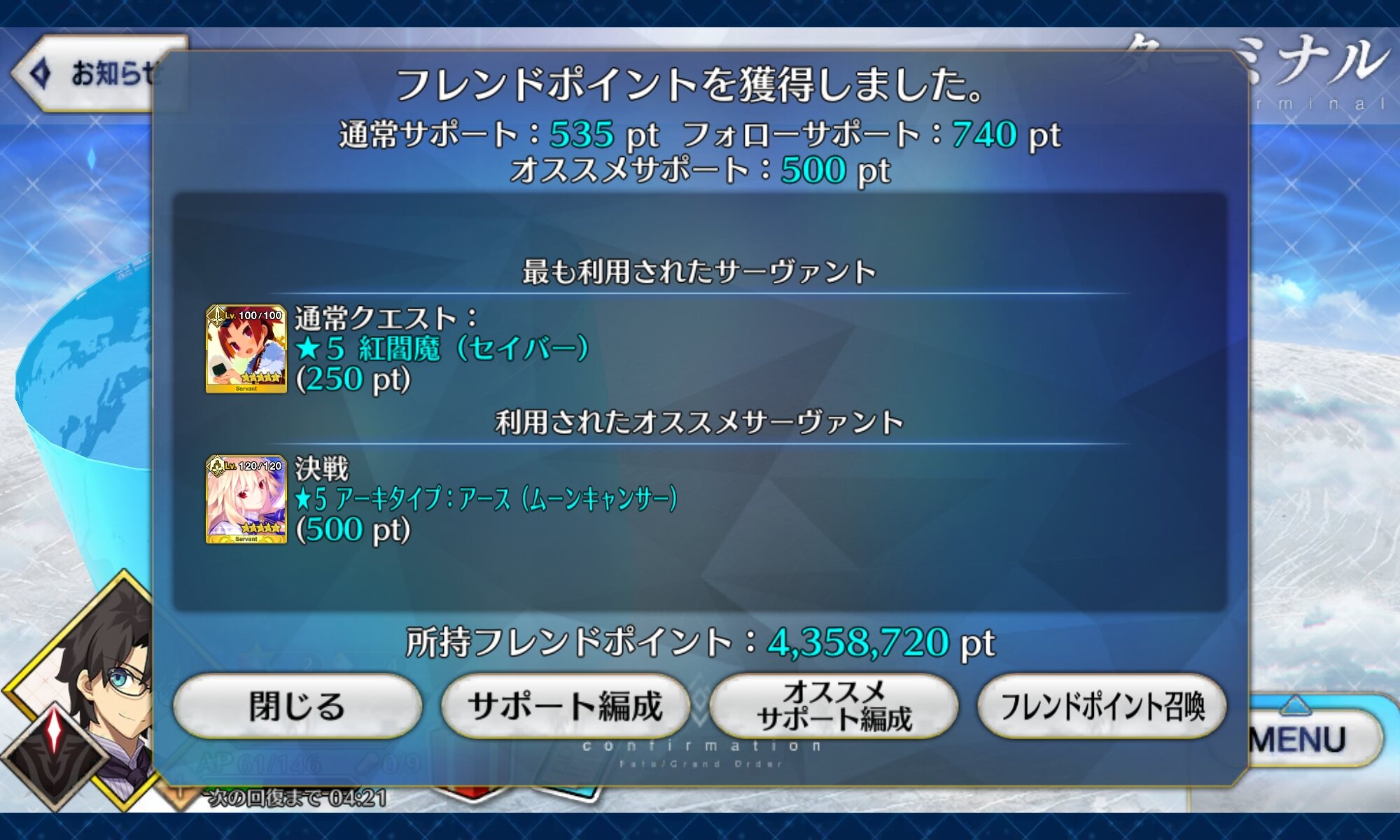 4はナーサリーで、5がサポート鯖から選ばれたら神、マーリン、スカディ、孔明、玉藻、ミスクレーン>>883