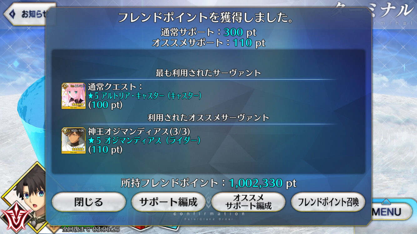 汗拭かなきゃ…決意巌窟王、ジナコさん組み込んだのにうまく戦えなくて令呪コンテしたなぁ