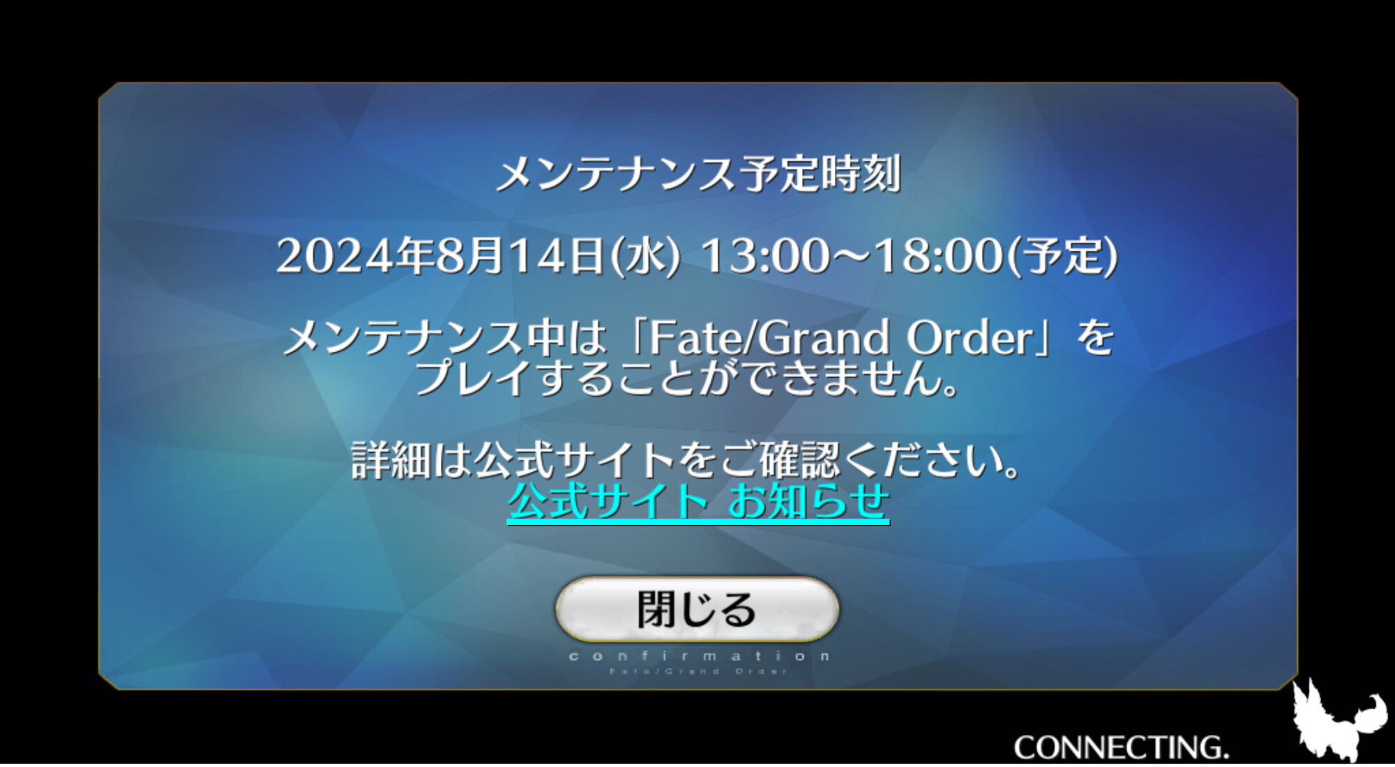 ソーナンス!メンテ中だ。(他言語版の)FGOプレイしよう。