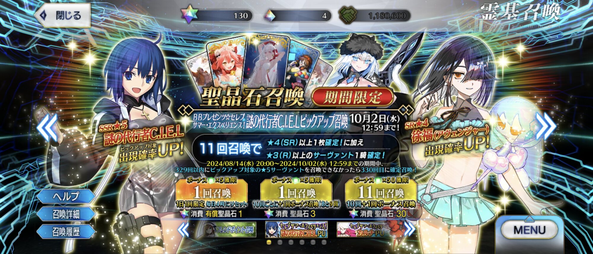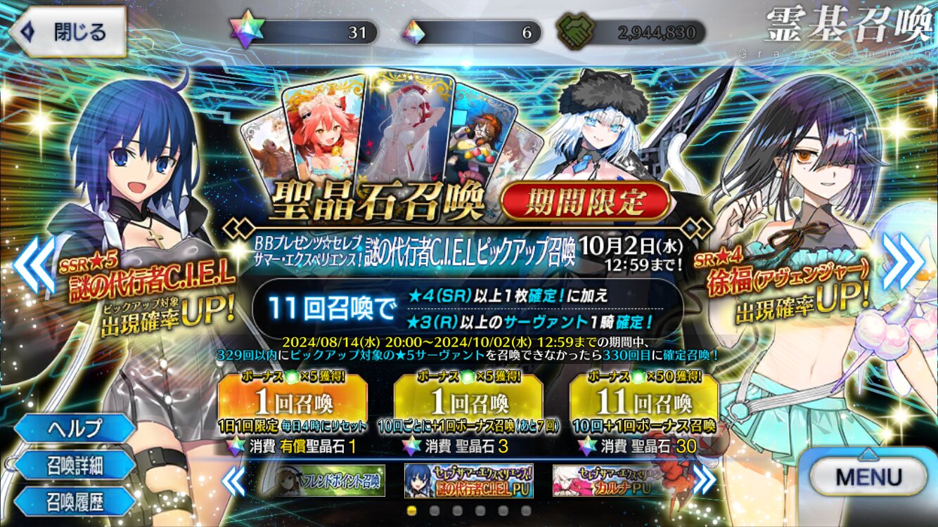 シエルさん以外はきてくれたよ()徐福さんイイね...水着テノチも楽しみだ