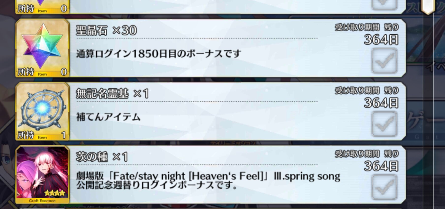ここ数週間で配布された石の存在忘れて石買ったがまあ些細なことよね