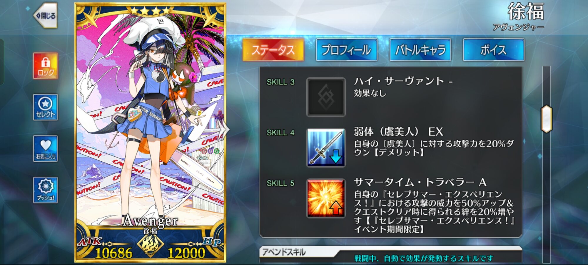 この子にも上げたいんだけど方法無いッスかね???徐福ちゃん、単体即死の即死付与率UP持ちなのね