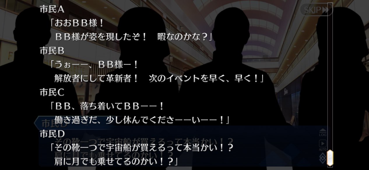 なお今だと改善されてる(気をつけられる)が昔は認識できない巨腕のせいですぐバレる(地面を擦る音がめっちゃ鳴る)宝の持ち腐れスキルであったねえムーンセル舞台なのになんで月の王がバイトやってんの?権限BBドバイに掌握されたの?お忍びの水戸のご老公なの?