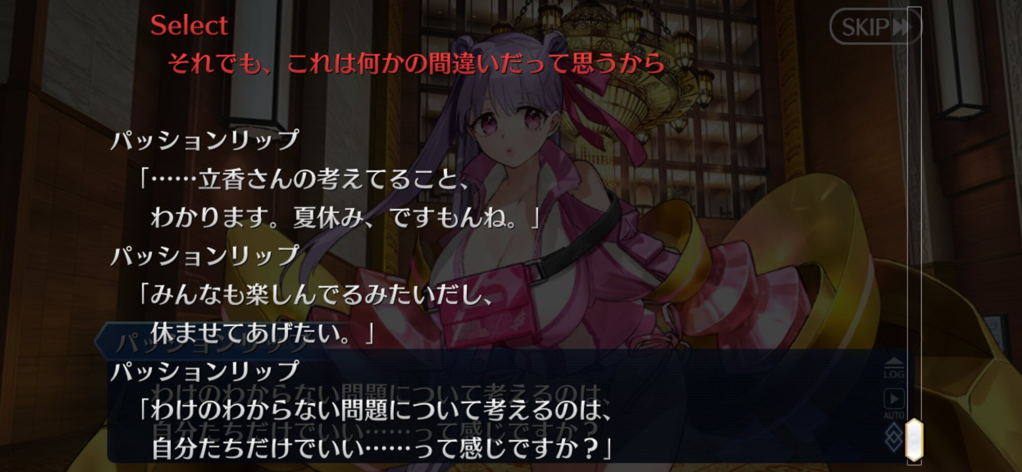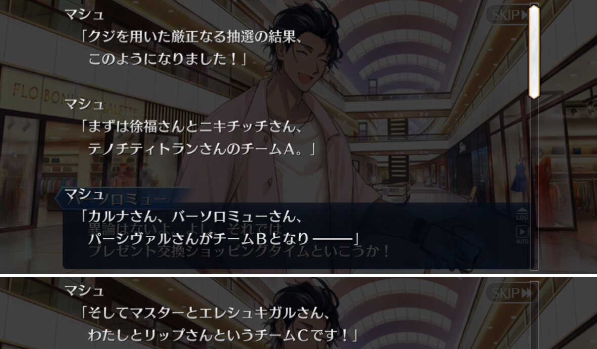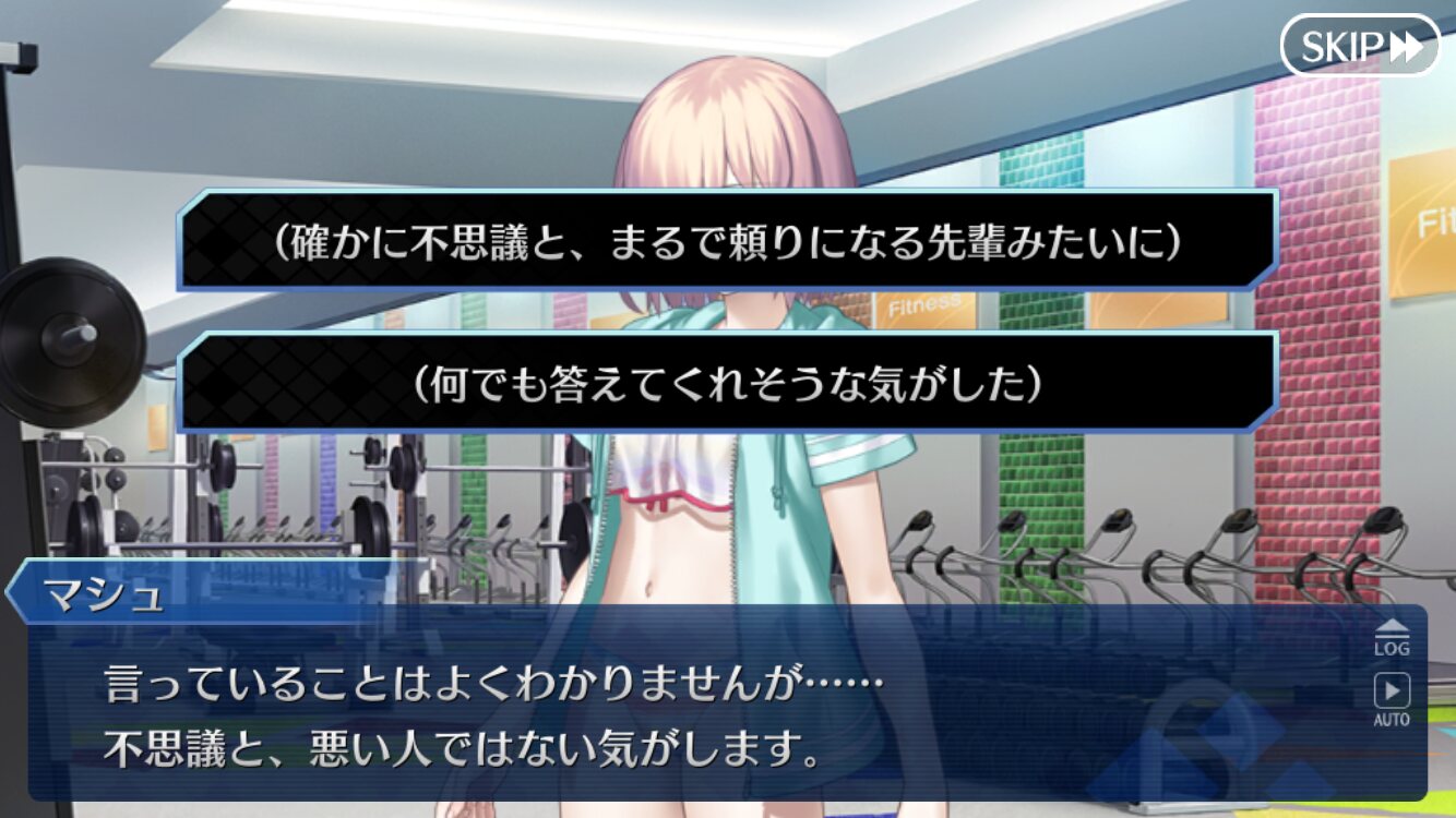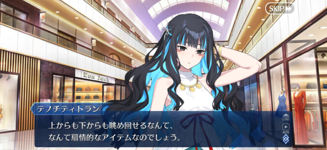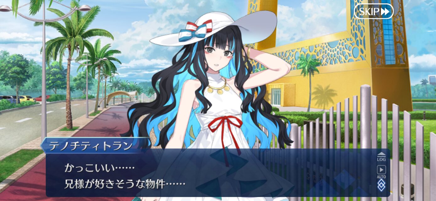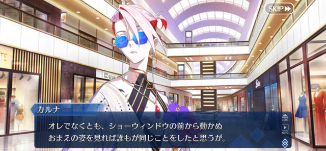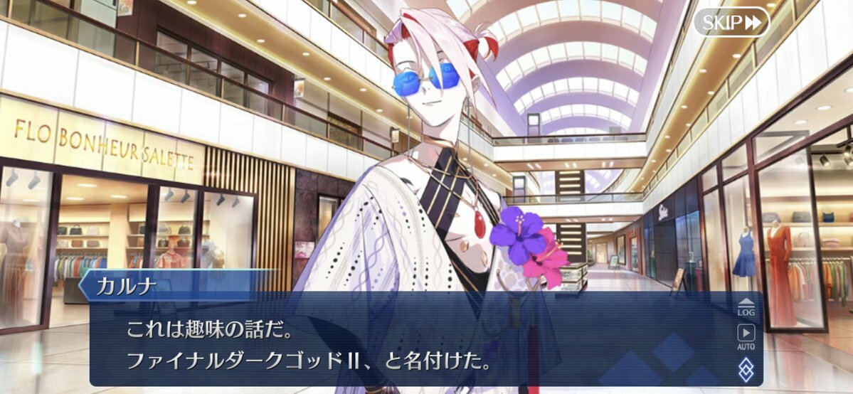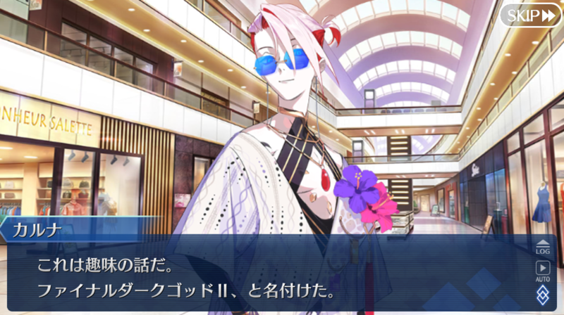 あっちは「新人類を愛でるために現生人類を滅ぼす」だから。さっきカルナさんの夏服開放して「マスターの夏服とお似合い」とか言い出して「おっ、おまっ、お前そういうこと言うの!?」ってなっちゃった