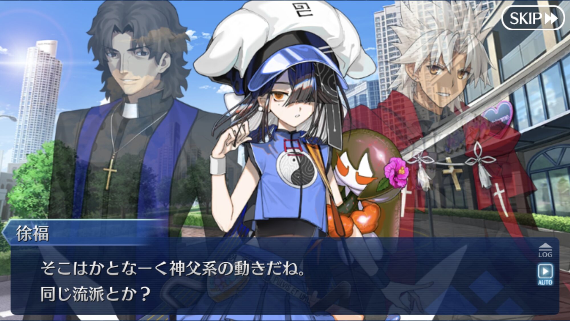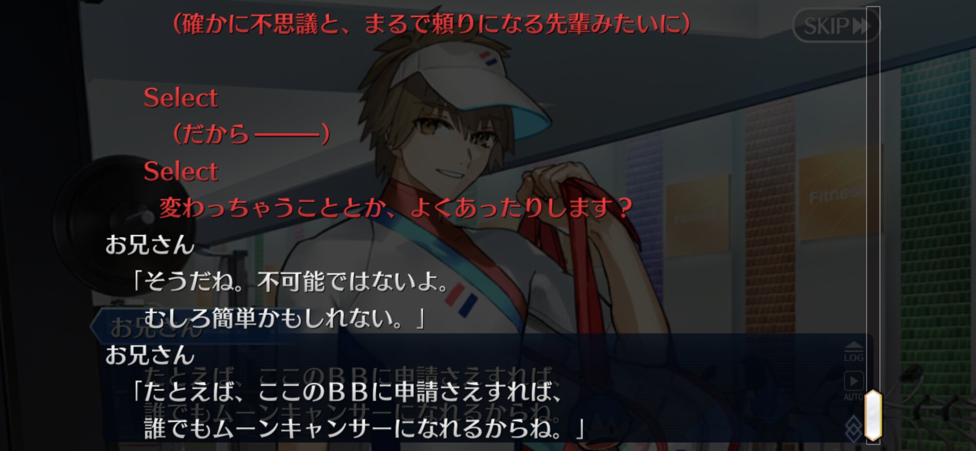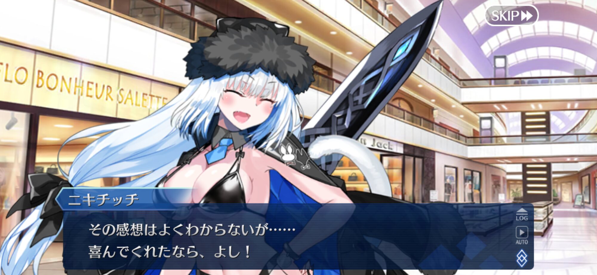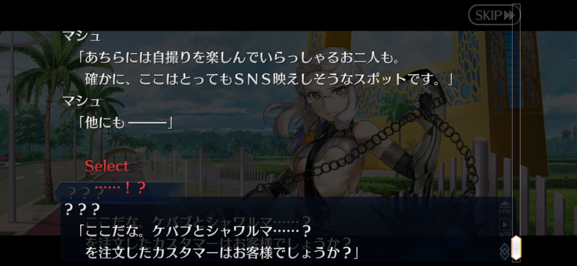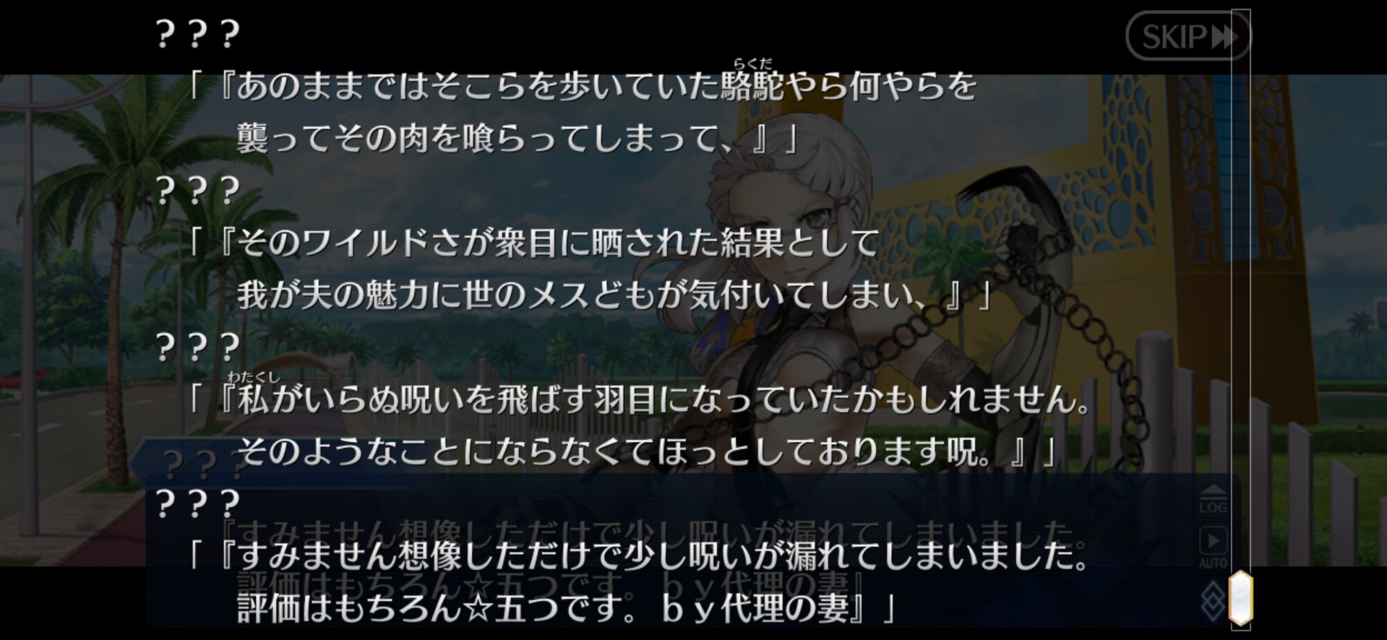 あっちは「新人類を愛でるために現生人類を滅ぼす」だから。さっきカルナさんの夏服開放して「マスターの夏服とお似合い」とか言い出して「おっ、おまっ、お前そういうこと言うの!?」ってなっちゃった