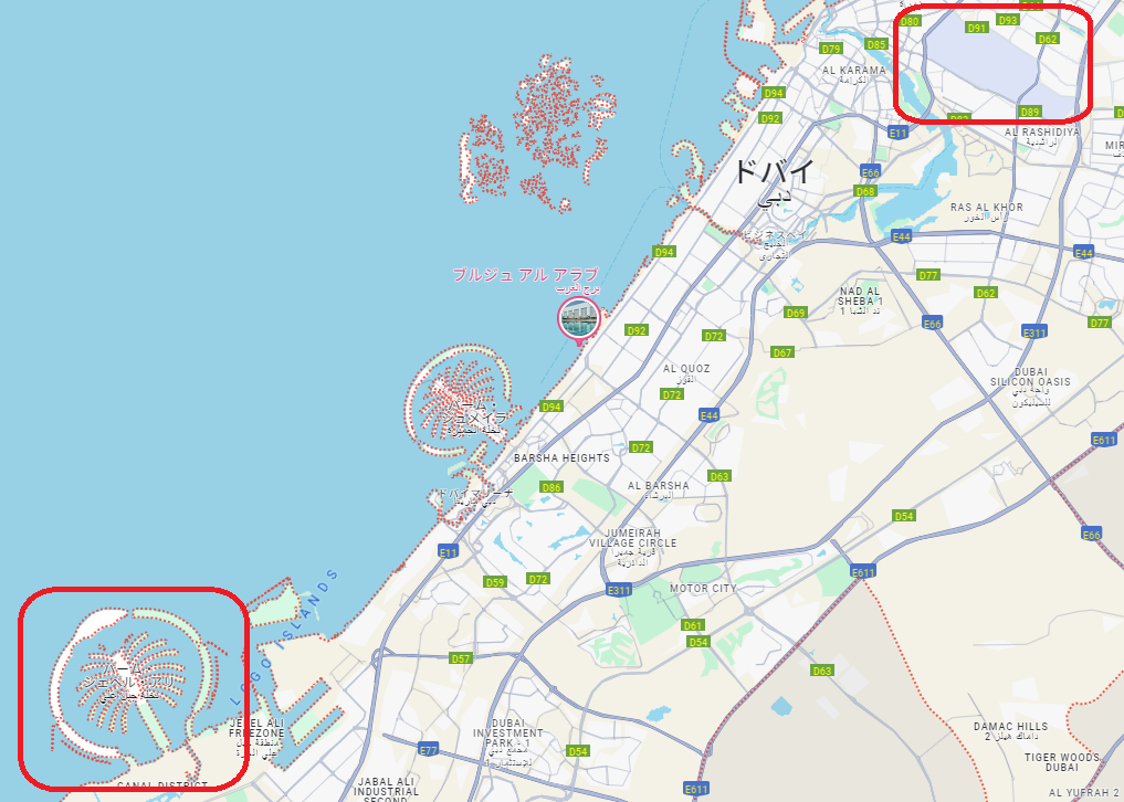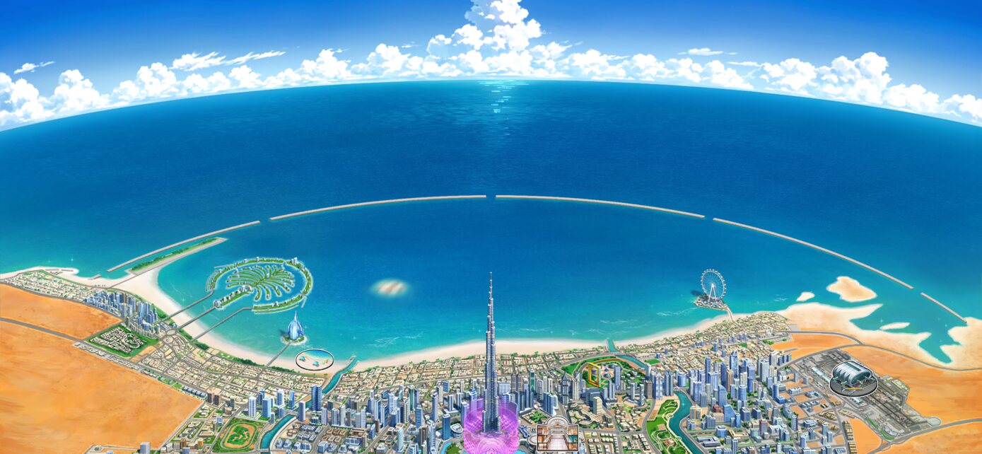 ドバイの航空図とか見たことあるスレ民はヤシ型出島(本来左側に二つあるものが統合されてる?)とか今日リップが指摘の観覧車の位置(本来ならヤシ出島の近く)とか、左側の方にあるトラック(競馬場のはずだけど外観がちょっと変)とか引っ掛かりまくってた