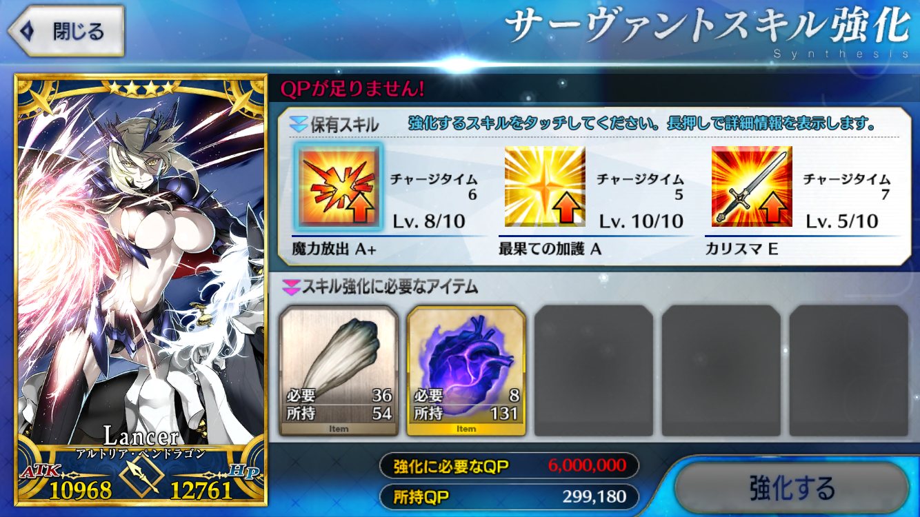 スキルレベル9にしないと凸虚数単独宝具が使えないんだけど素材が足りなくて叫びたくなるチーム>>60