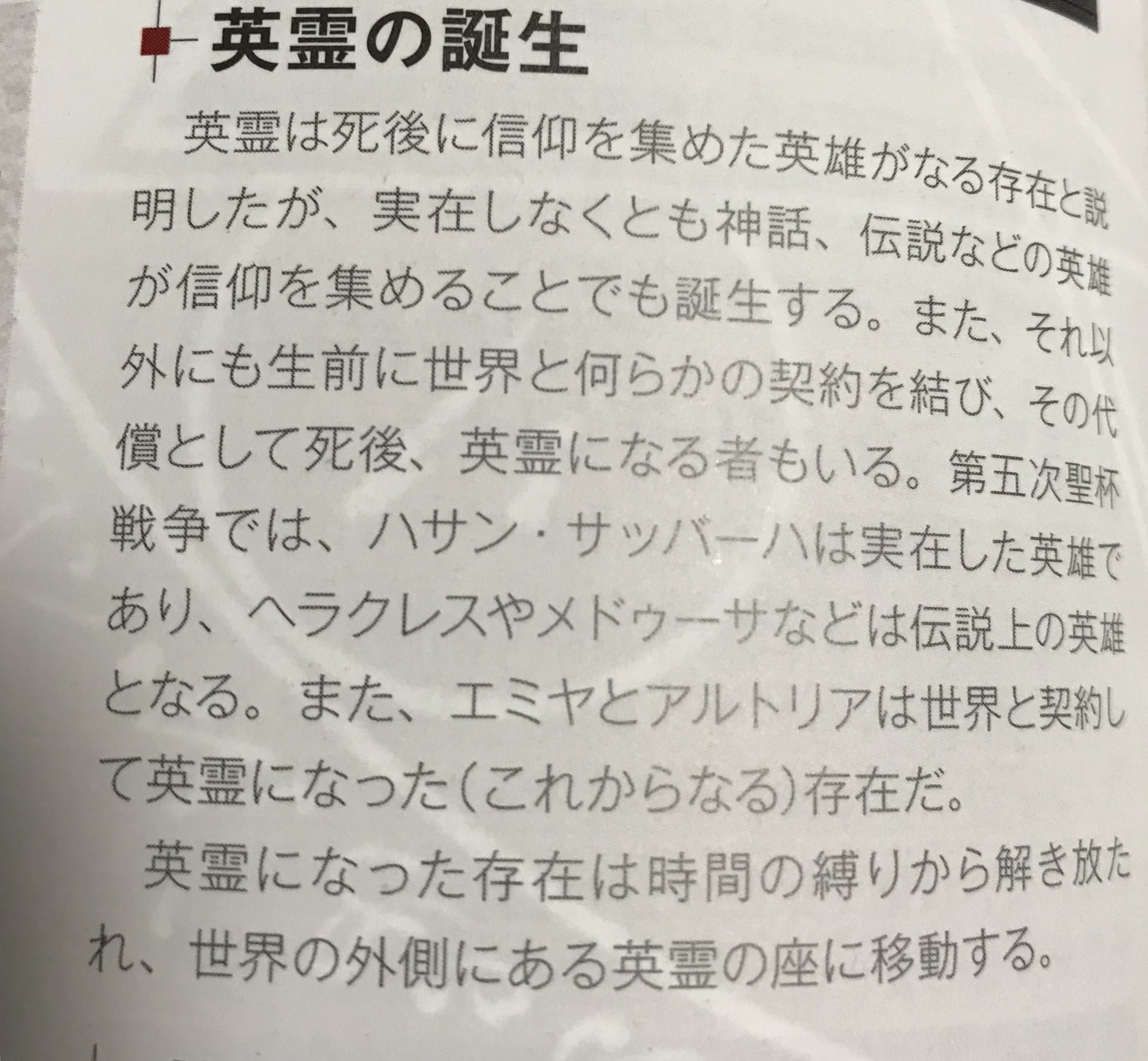 ところで、本編での出来事が座へ影響を及ぼすってのはベディ卿やカルナさんがそうだから、新アサもにたような感じなのかなと。水滸伝の新アサとして座にはいるけど、新宿によって幻霊の影響が記録として残り、純正新アサとドッペル融合した新アサが二重でいる状態なのかなとか考えてる。だからカルデアや李先生の幕間では普通だけど、脱獄イベでドッペルで来たのかなと。>>61
