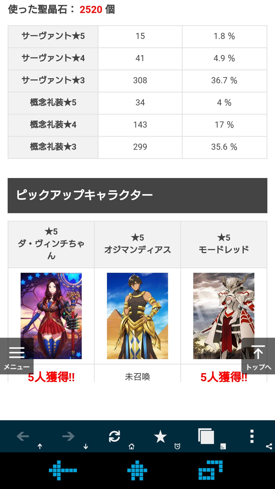 そしてダ・ヴィンチちゃんがまさか1年で2回ピックアップされるとはうちのWニトクリスのためにオジマンもお迎えしたいと常々思ってたけど、10月の剣豪が内定してるタイミングで来てしまうとはどうしたものか…