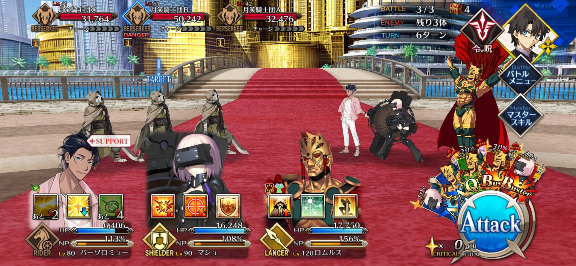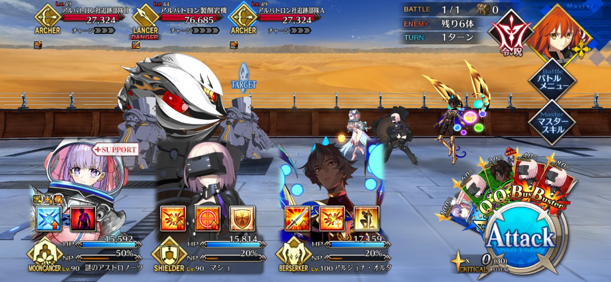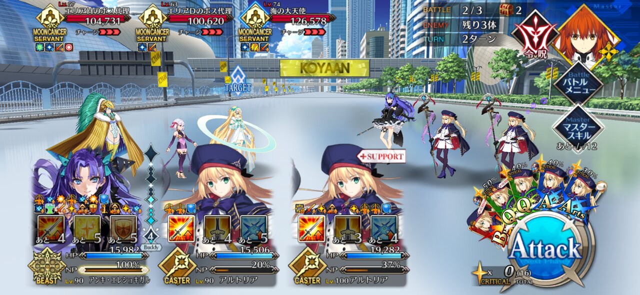 あれは1ターンでサーヴァントのスキル全部とマスター礼装スキル全部使うんやキアラはいまんとこ動向不明な感じですかね