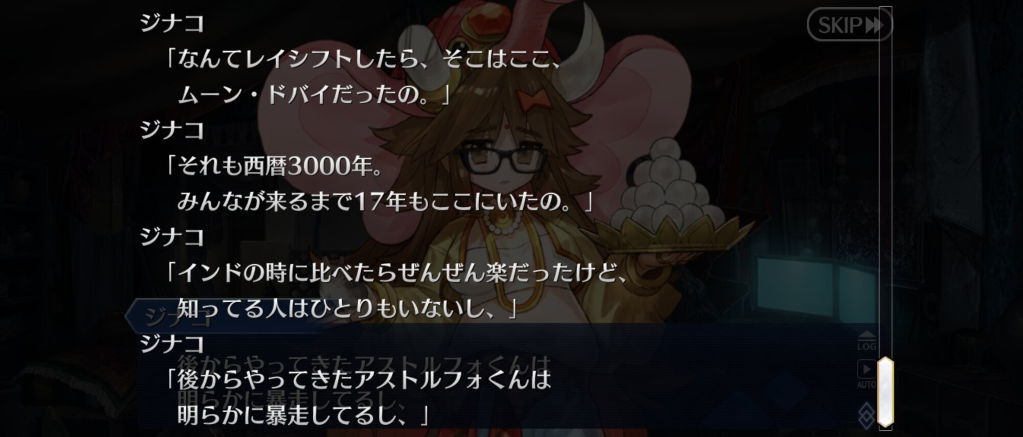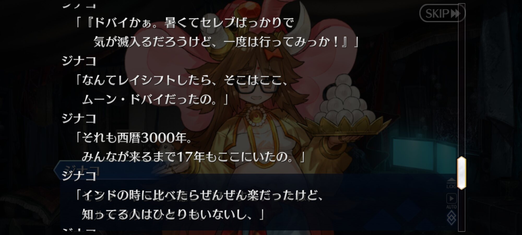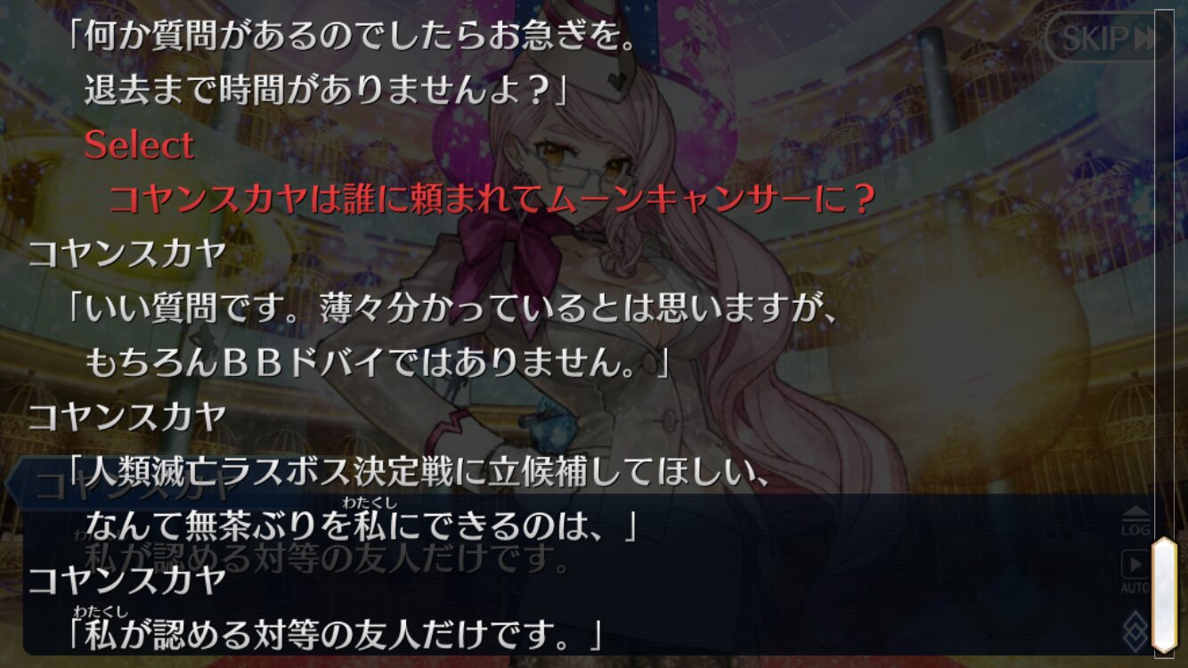 これがムーンキャンサーの気持ち…?(違)進めるほどカルデアのマスター呼んで放置してる理由がわからなくなるけど、もしかしてドバイ的にはジナコ案が本命だったりすんのかな