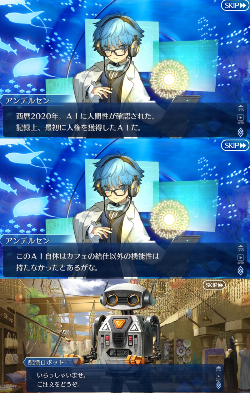 そのイベント参加してない新参者だからか、選択肢が「???」「?????」の2つでした…もしかしてアンソニーって……初めてアストルフォに付いたまともなマスター…?(ジークくんはイレギュラーと言う意味で夜露死苦)