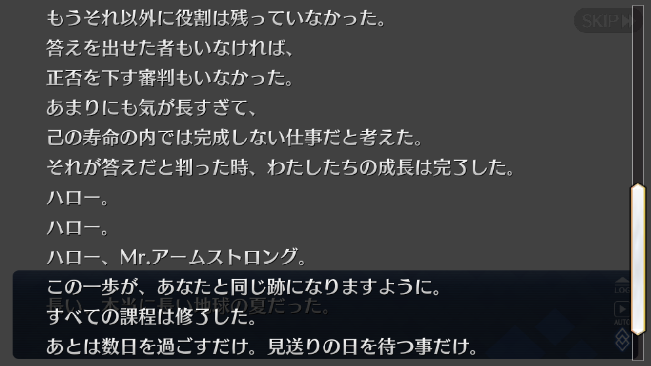 そこからもうちょっと進めて旧人類であるぐだ達に新人類の船出を見送ってほしいんじゃないかなーと予想しとく