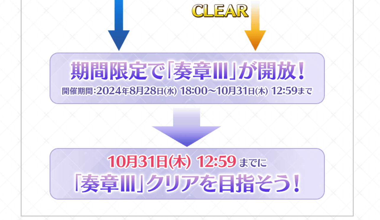 たぶん月曜かな、奏章Ⅲの遊び方みたいなやつがお知らせに載ると思うけど後継戦