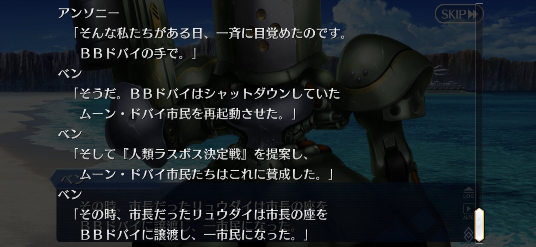 AIとの戦争の開戦を決めたアンソニー、AIとの戦争で徹底抗戦作を取ったベンまでは想像できるけど市長のリュウダイは何をしたんだろうな戦後のことな気はするんだけど