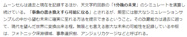 そんな癌細胞がまるで転移するように月にムーンドバイを建設。これにより月の上に知性体が現れたので月のアーキタイプが自分の姿(AI)を獲得。