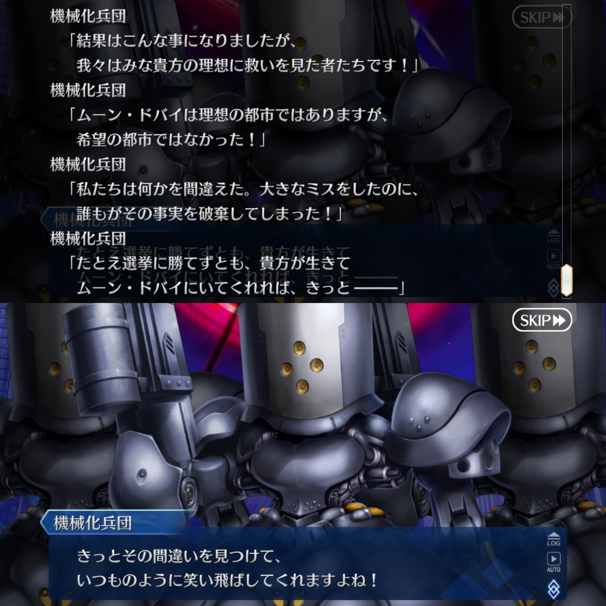 月のアーキタイプはAIに対して「休眠して二度と目を覚まさないなら見逃すけど、活動し続けるなら滅ぼす。」と警告し、AI達は休眠状態へ。