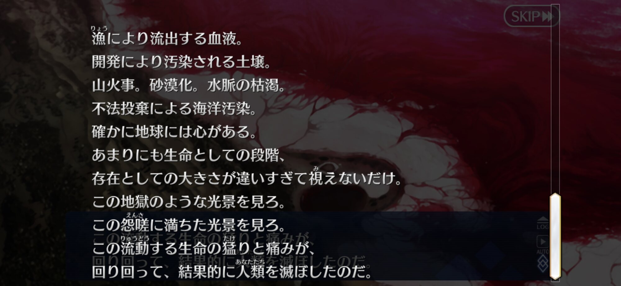 地球の魂的には自分の上で生まれた知性体が発展のために自身のリソースを食い尽くさんとすることに文句はないけれど、隣でそれを見る月の魂から見た場合に冒頭のような独白になる。