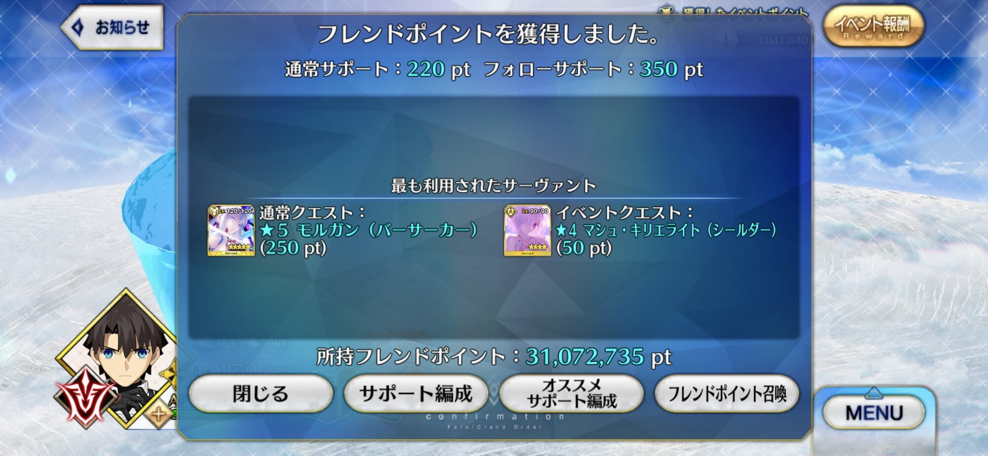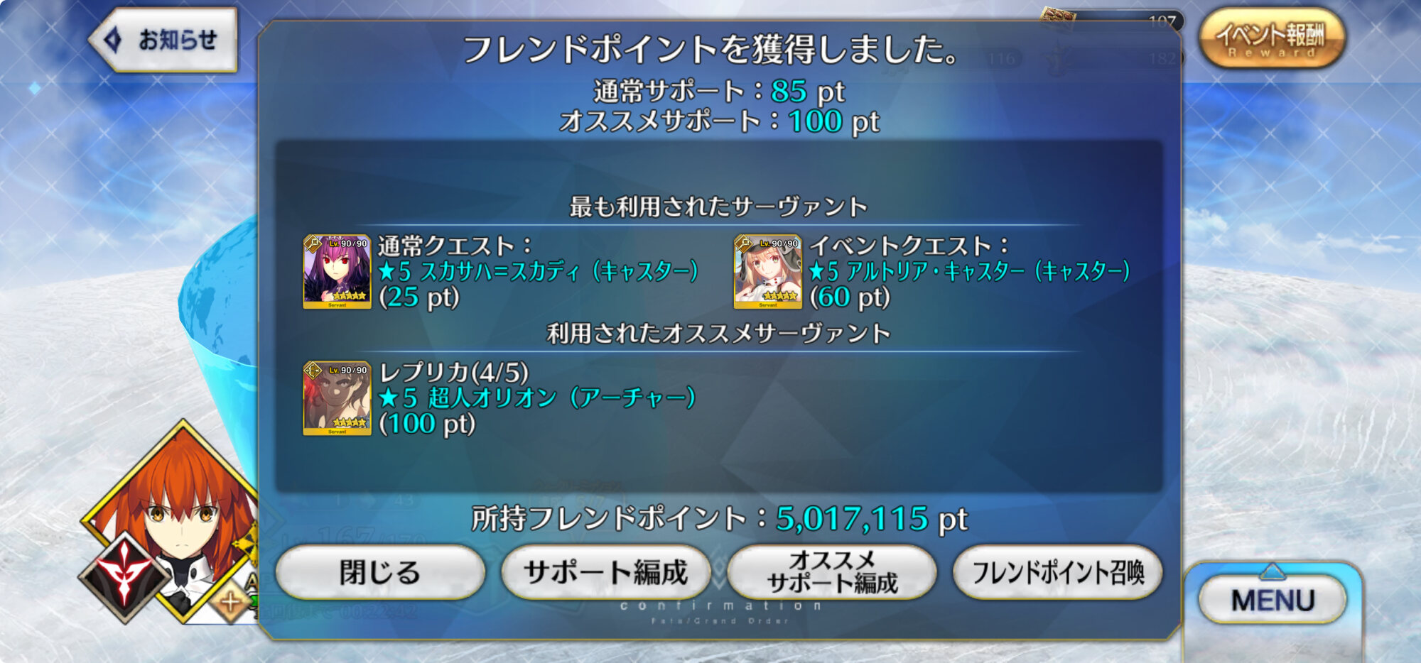 うちのサポ姫君がめっちゃフレポ稼いできよる