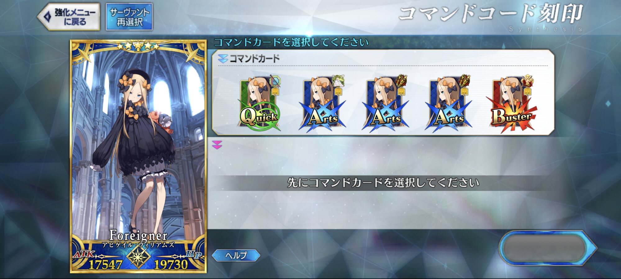 最高鎧系サーヴァントはバトルグラ鎧にしてコマンドカードを素顔にしたりしている