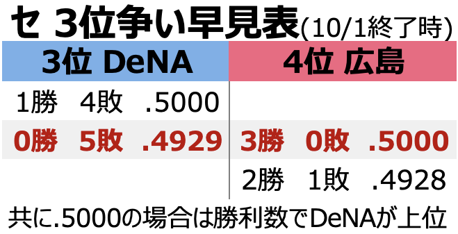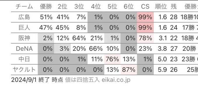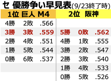 首位争いの巨人阪神、3位内に入りたい広島横浜、最下位はなんとしても避けたいヤク中日