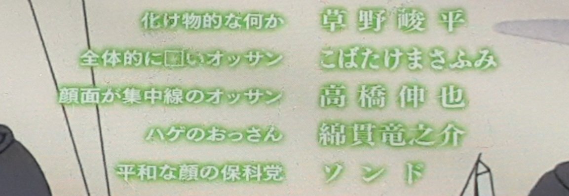 事が事だけにオッサン、オバハ…お姉さんになっても未練振り切れて無いんだがロバート秋山が声優としてめちゃくちゃ上手くない?と思ったがノア役がファーストサマーウイカでビックリした
