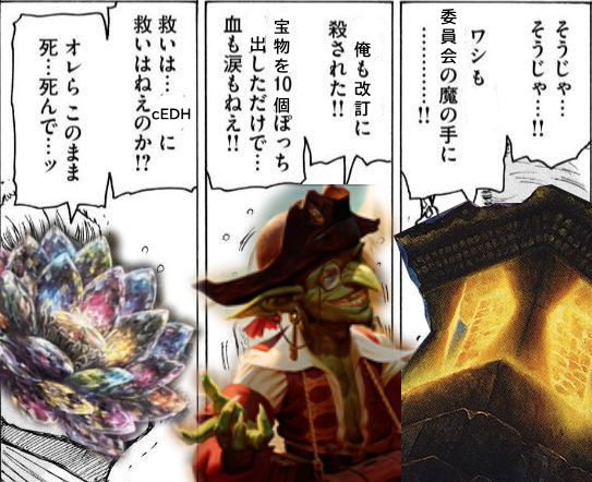 カードショップはウィザーズ社を集団訴訟するべきレベルだが、あくまでも外部委員会の推奨ルールって体なのがいやらしいEDHはルール通りにデッキ組んでもレベル帯とかいうふんわりした雰囲気で文句言われることもあるから面倒でもうやってないわ