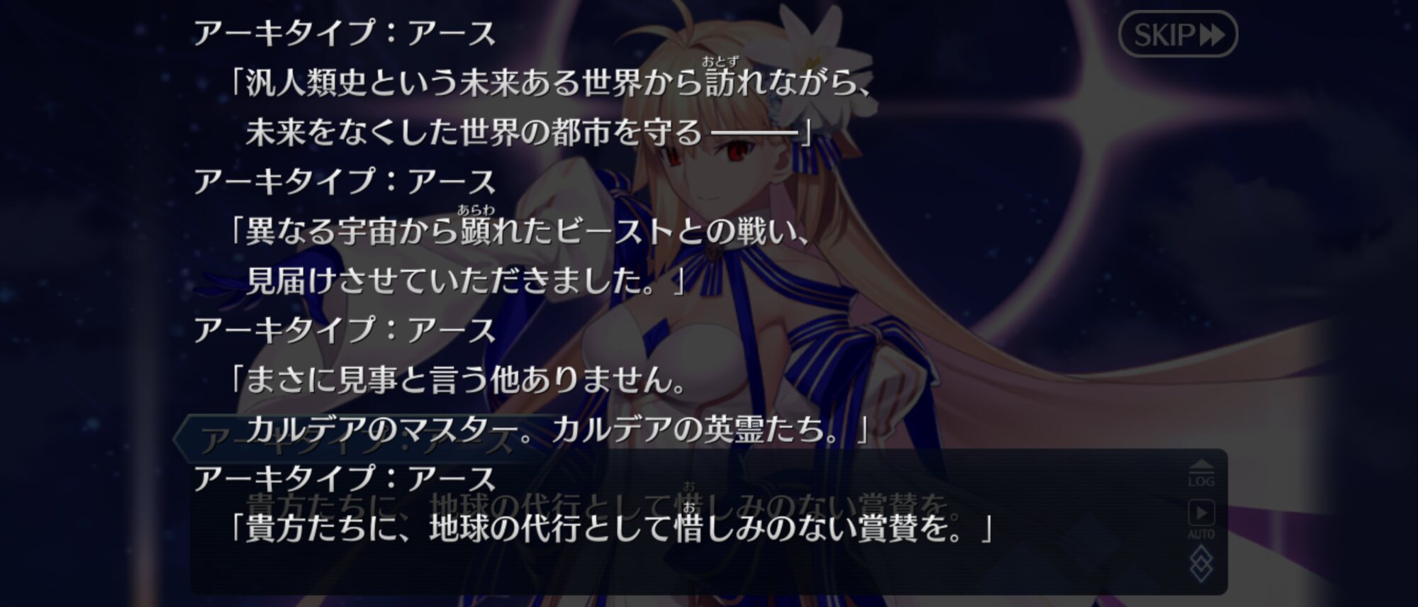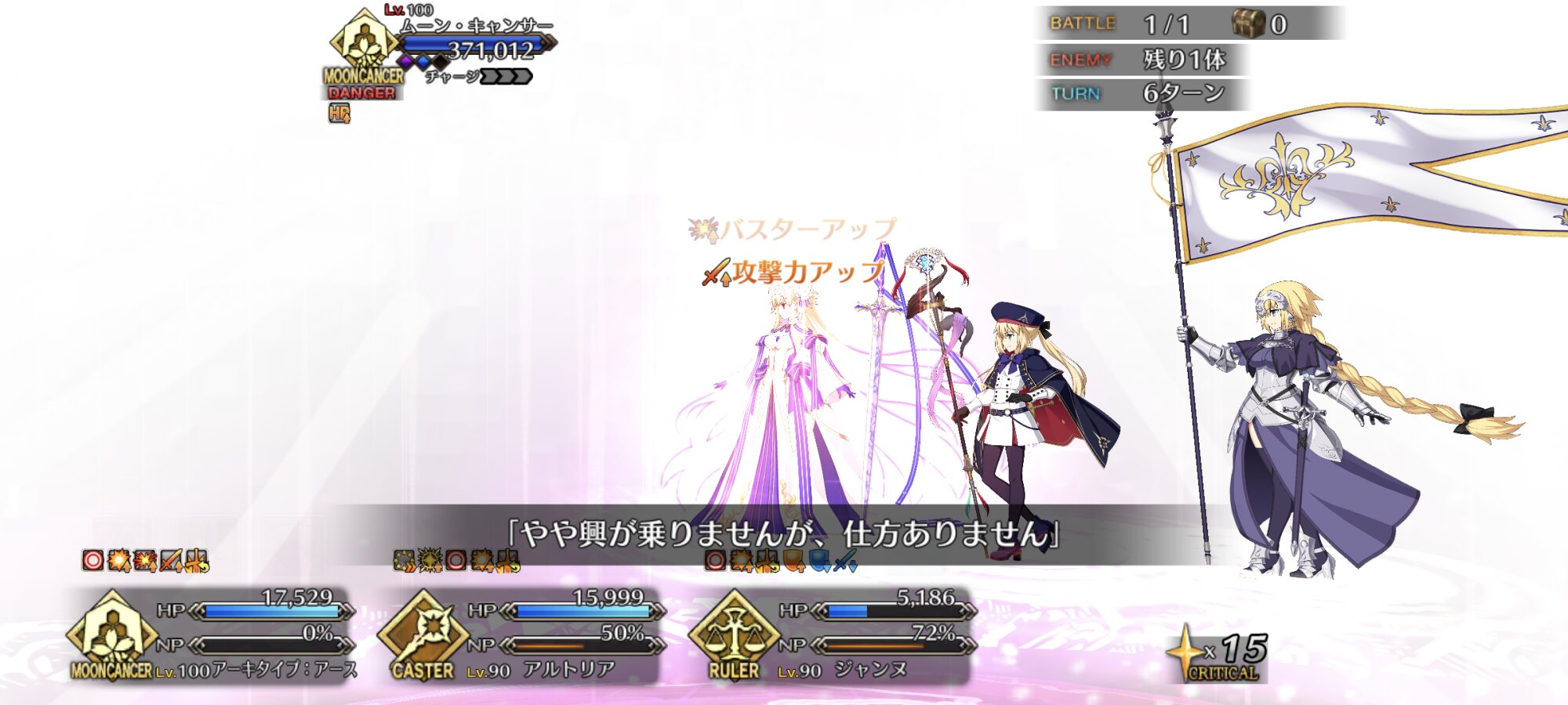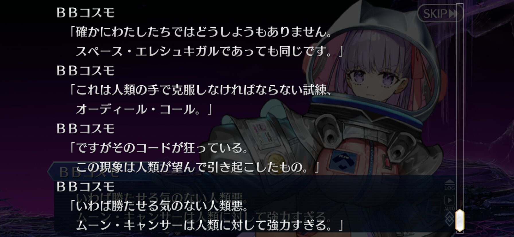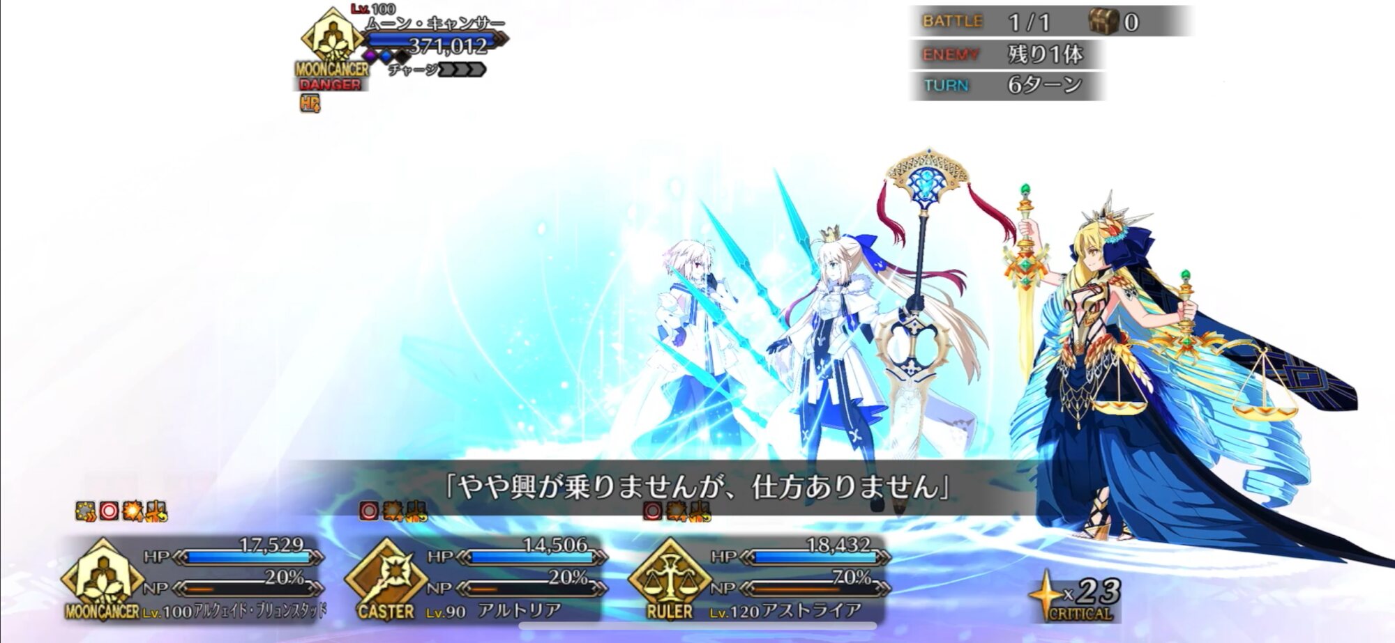 我々も宇宙の一員であり対等であると表明したりすんのかな今まで主人公はその章のクラスを疑似体験してたが、ムーンキャンサーはしないのかと思ってたラストの召喚でびっくらこいた