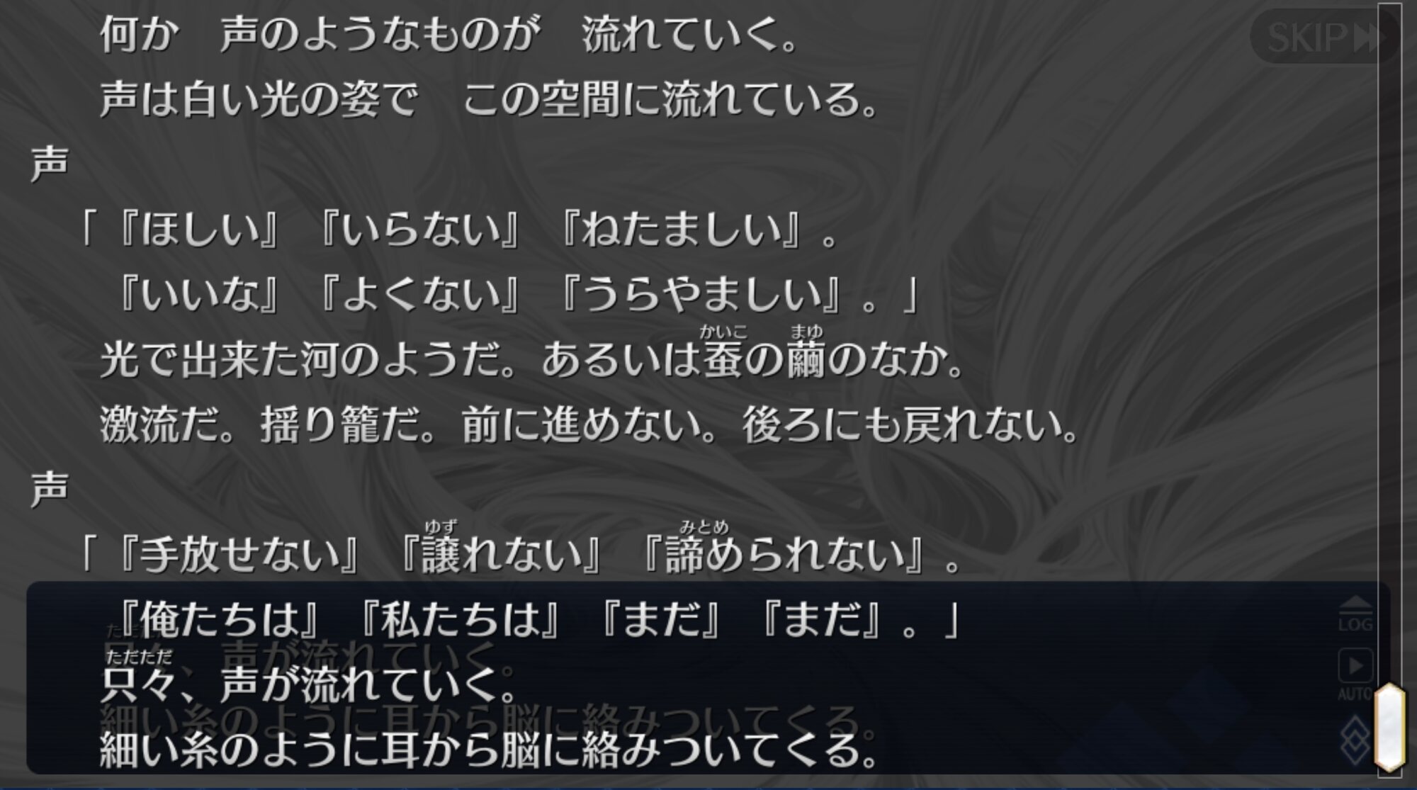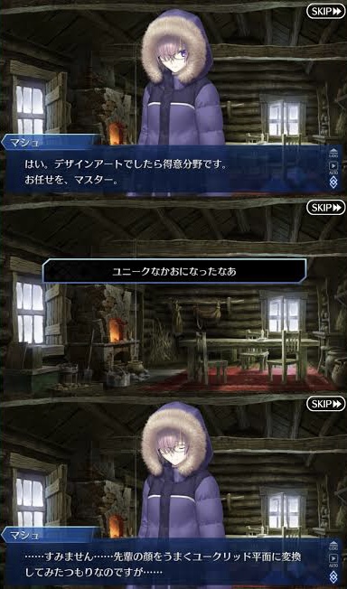 次立てる人は修正しておいて下さい。藤丸がプレイヤーの手から離れる描写が強くなりつつあって良かった。