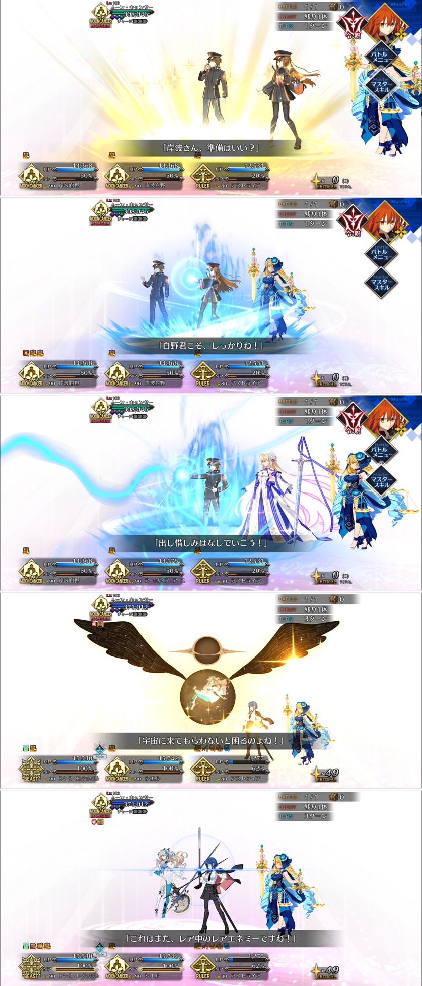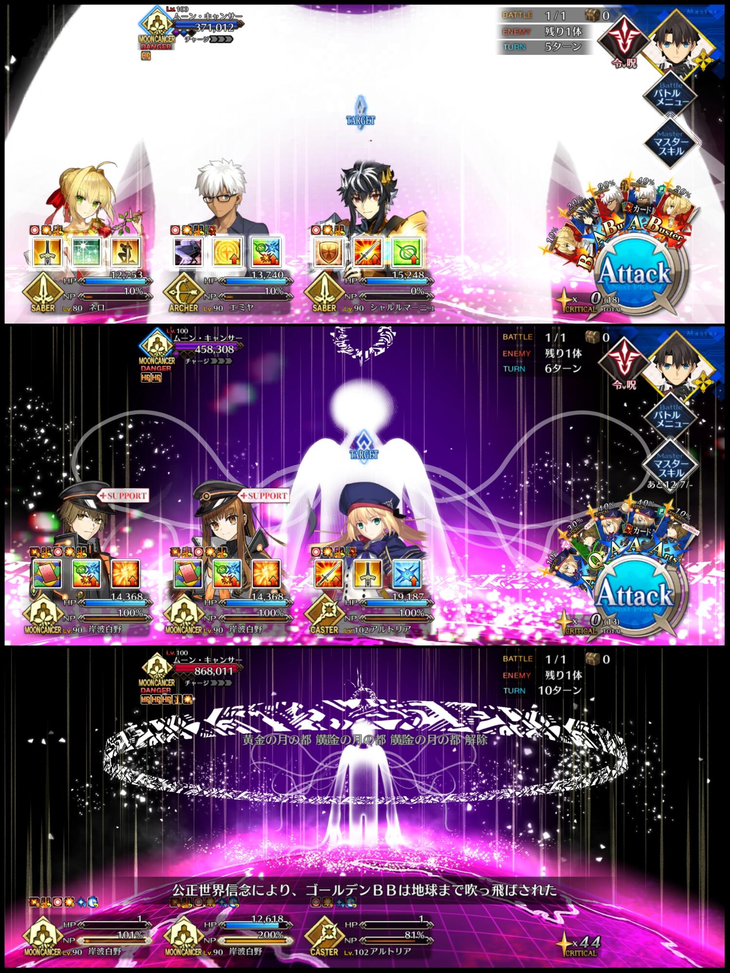 ムーン・キャンサーでのやり取りも最高だし、ラストバトルの合体宝具やラスアンの曲名がでたのがもう感無量!!!