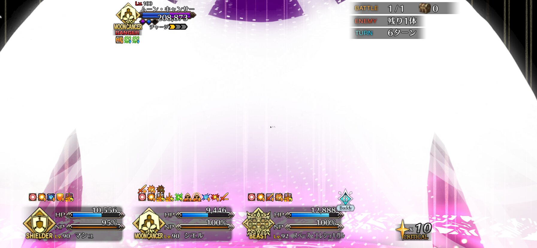 すぐメイン・インタールードくるからそれまで我慢だなムーンキャンサーのクラスは人類に対し庇護と試練を与えるクラスで、本質は強くなって後続に託せる様になってほしいと願う金型なんだろうな。