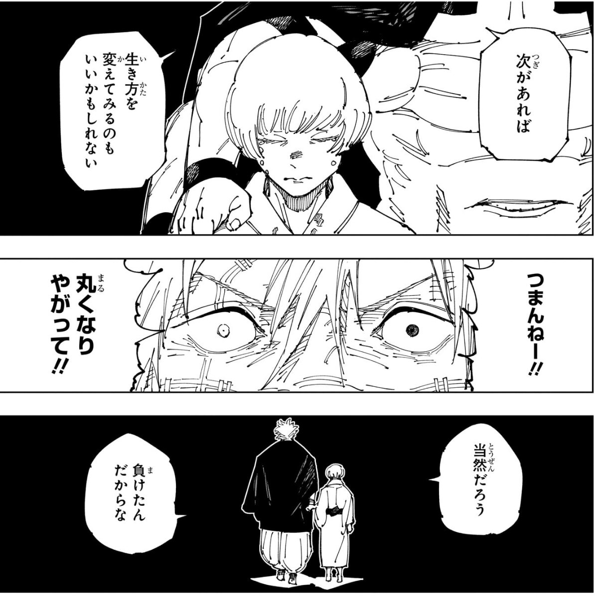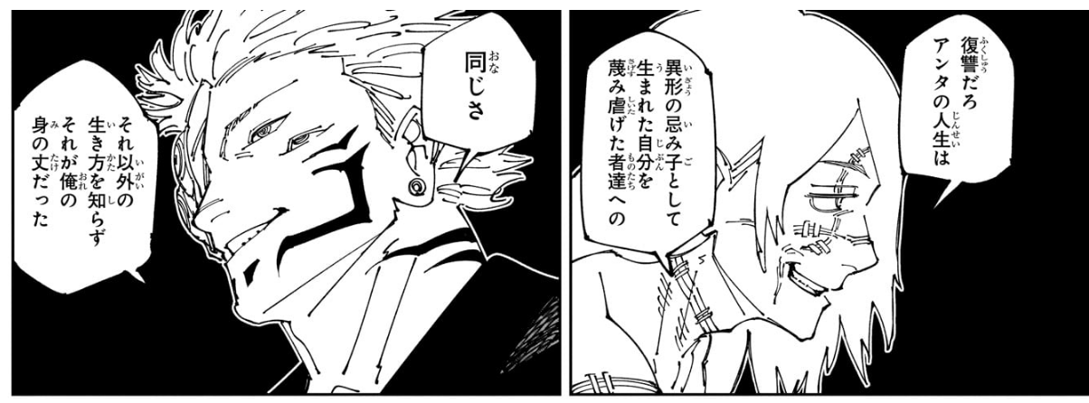 プロレスだからいいんだよそれで宿儺はあくまで人間だけど真人は呪いそのものだよって感じの対比になってるよね、最後の問答