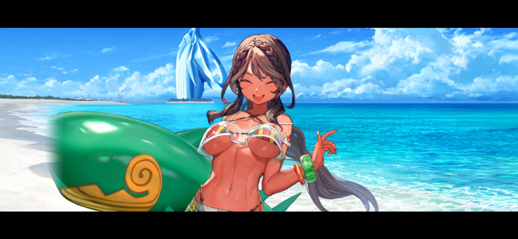 実はこれまで殆どの水着イベントに出演していたエレナさんですが奏章ストーリーがコズミックな事もあって話がややこしくなるから出してもらえなかったのかもしれません(ラストで「実はドバイは月」って明かされたからここまでは銛セーフですよね?)