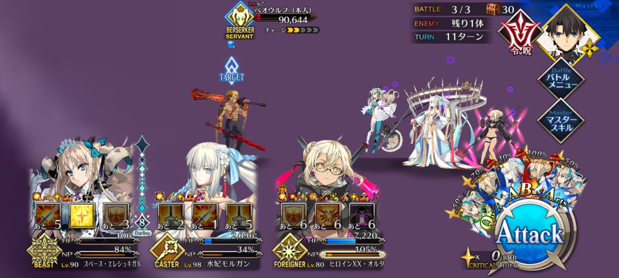 全体攻撃持ちのフォーリナーやアサシン相手だとLAは不安が残ってくる>>925