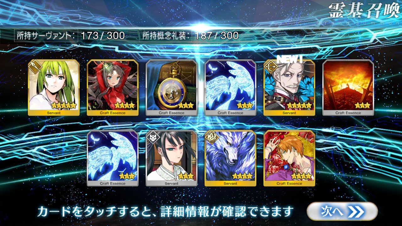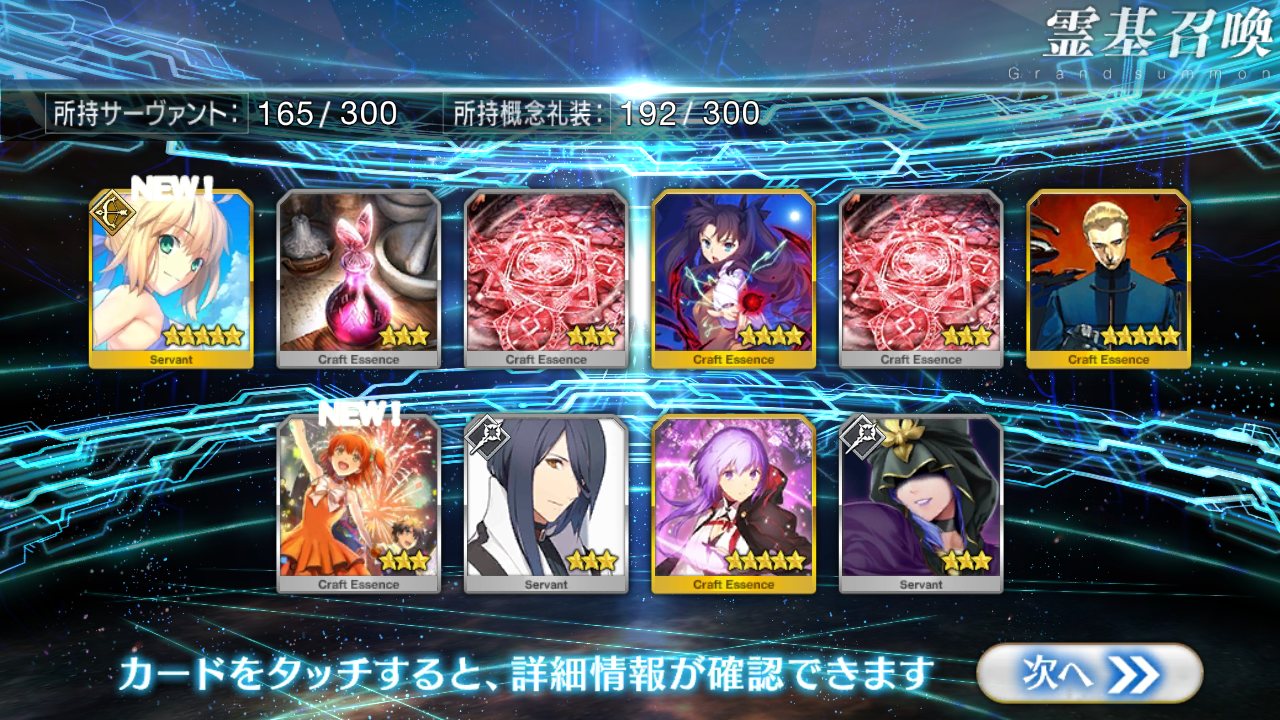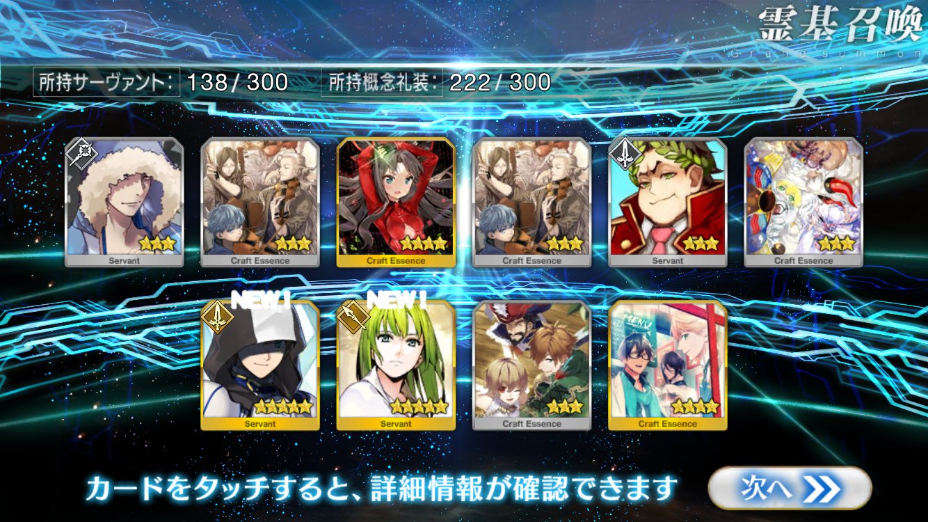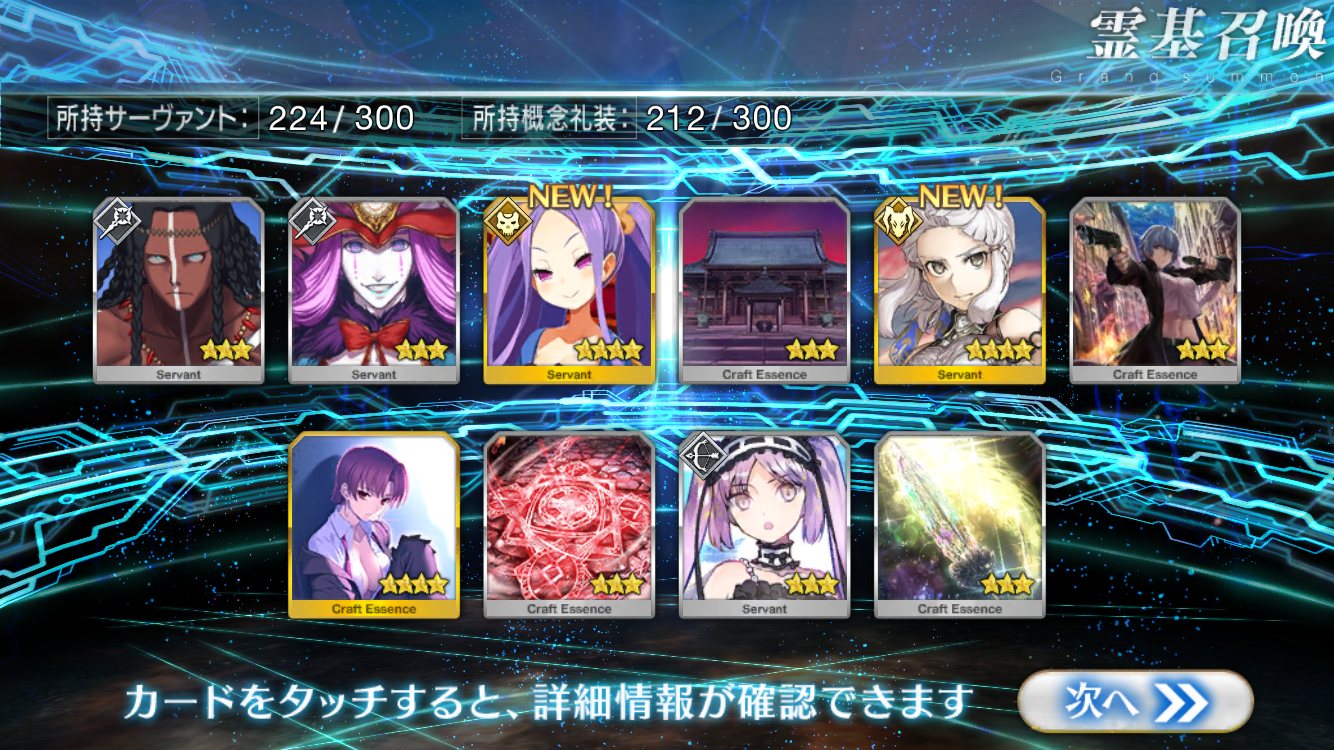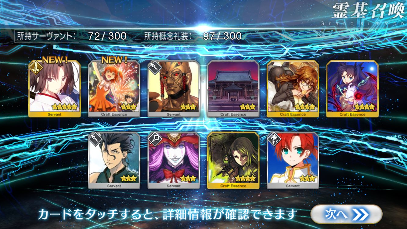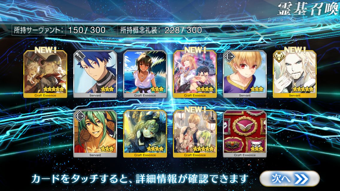 すり抜けてくれたのはずっと欲しかったジークフリート、あと三蔵は宝具を2にできた。