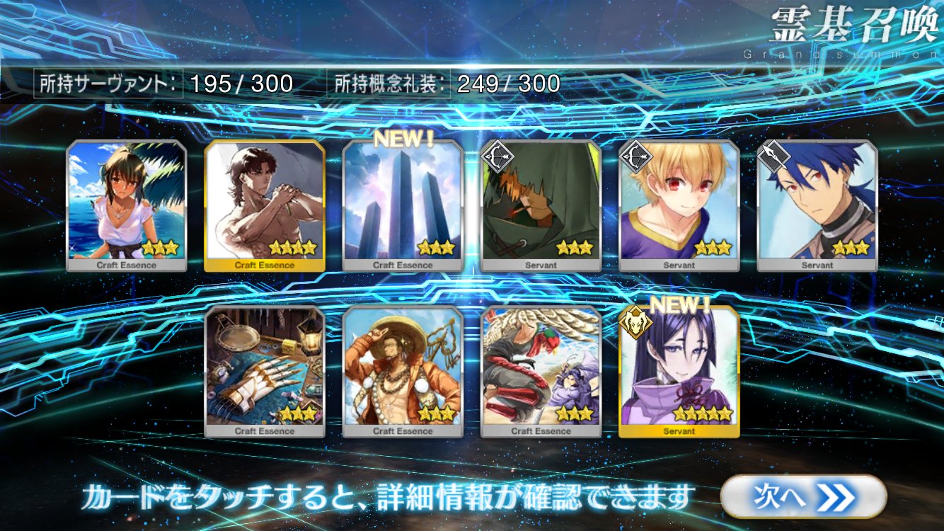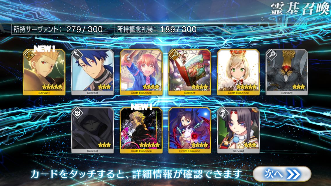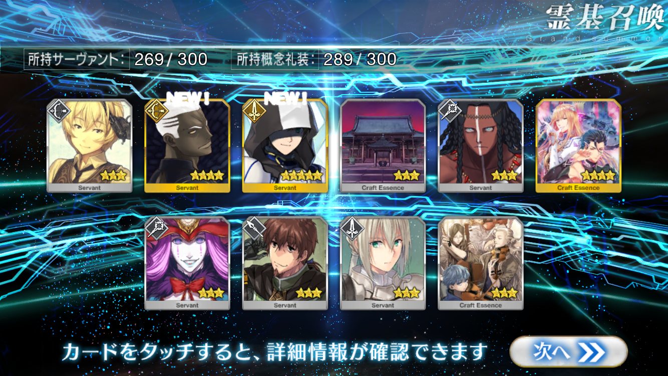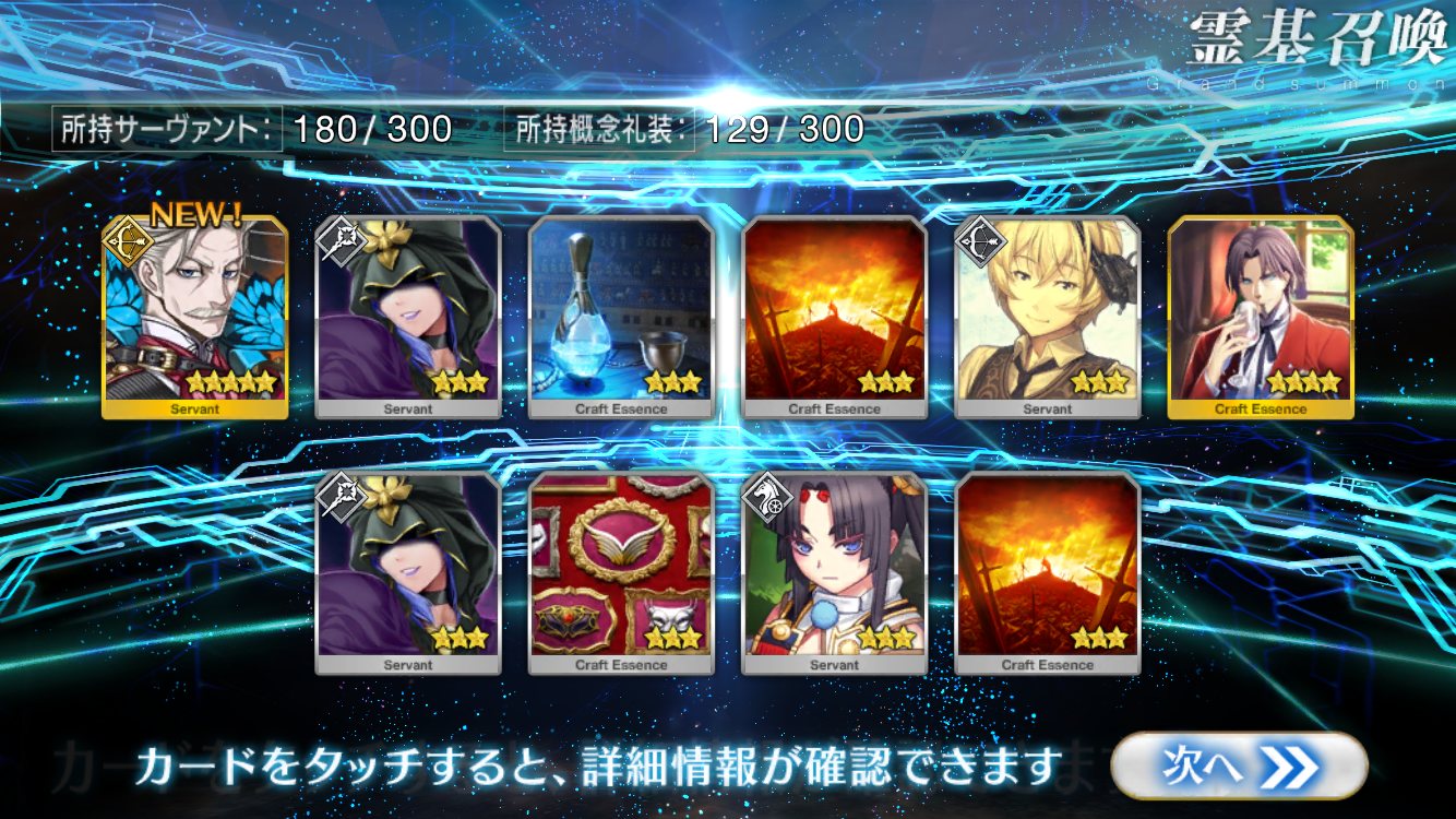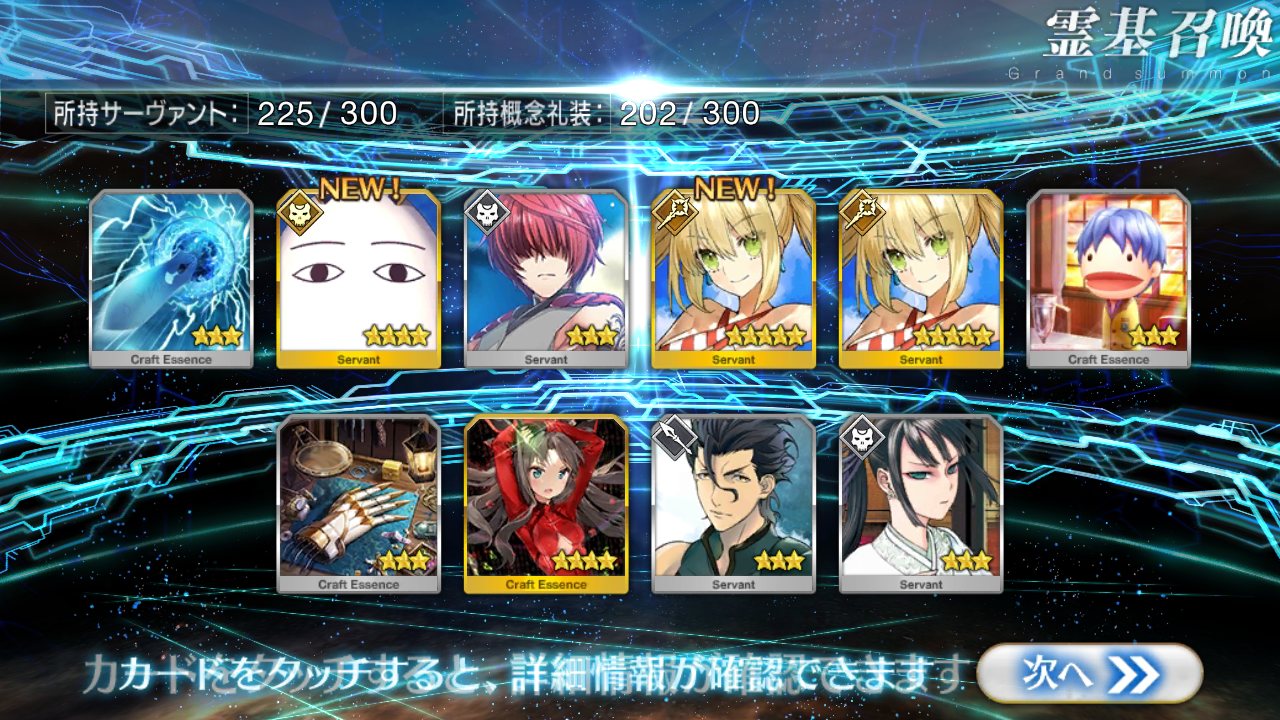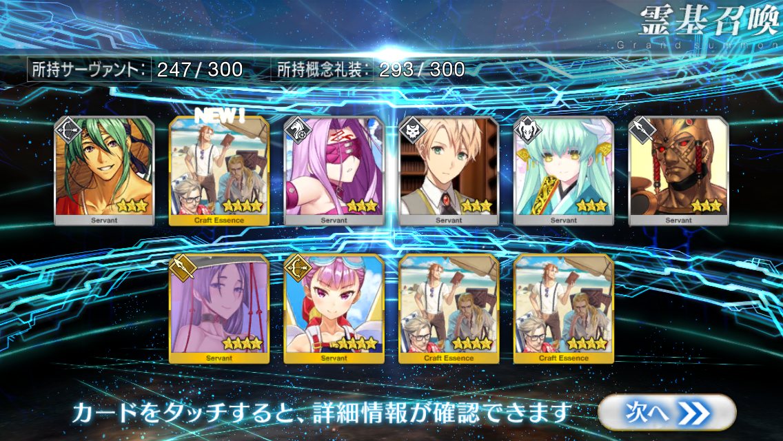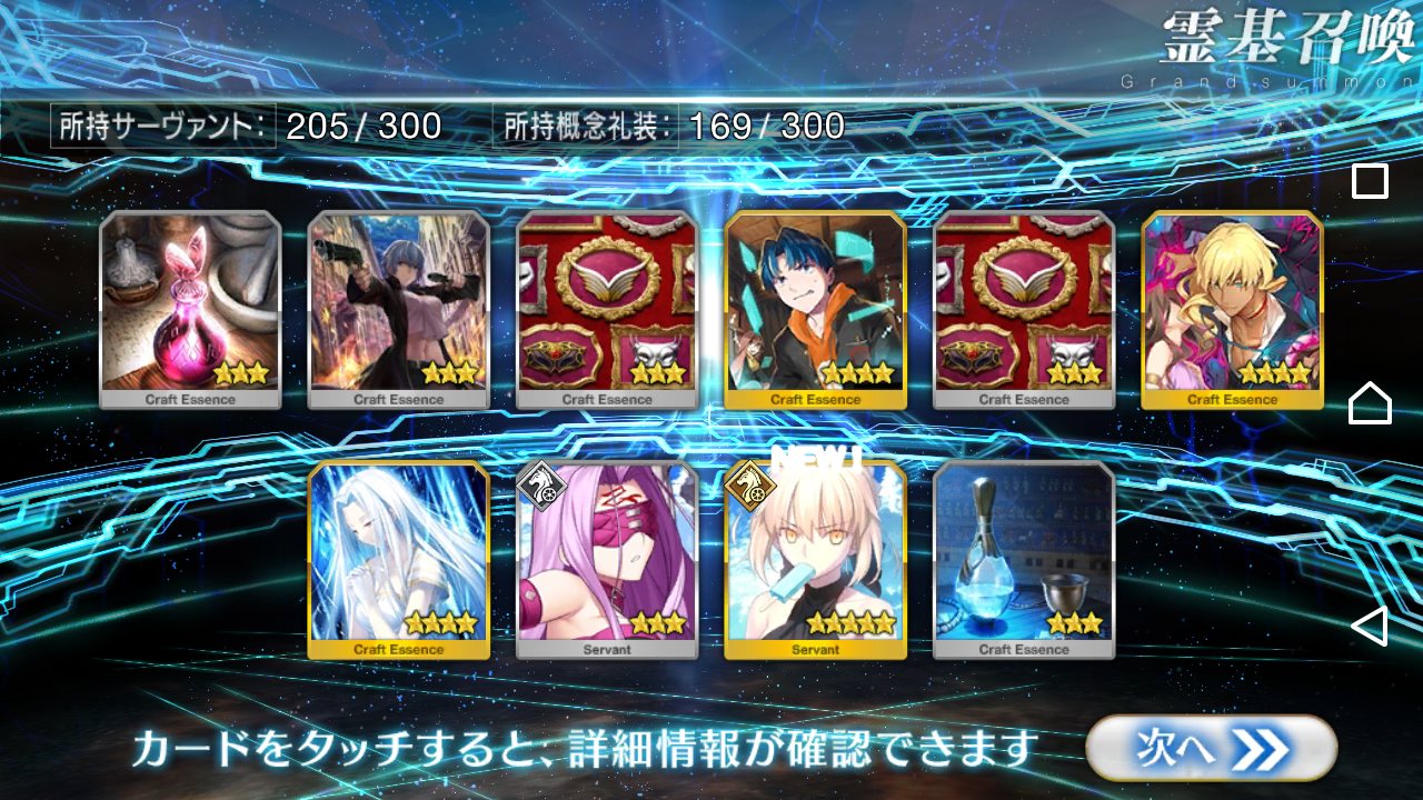 すり抜けてくれたのはずっと欲しかったジークフリート、あと三蔵は宝具を2にできた。