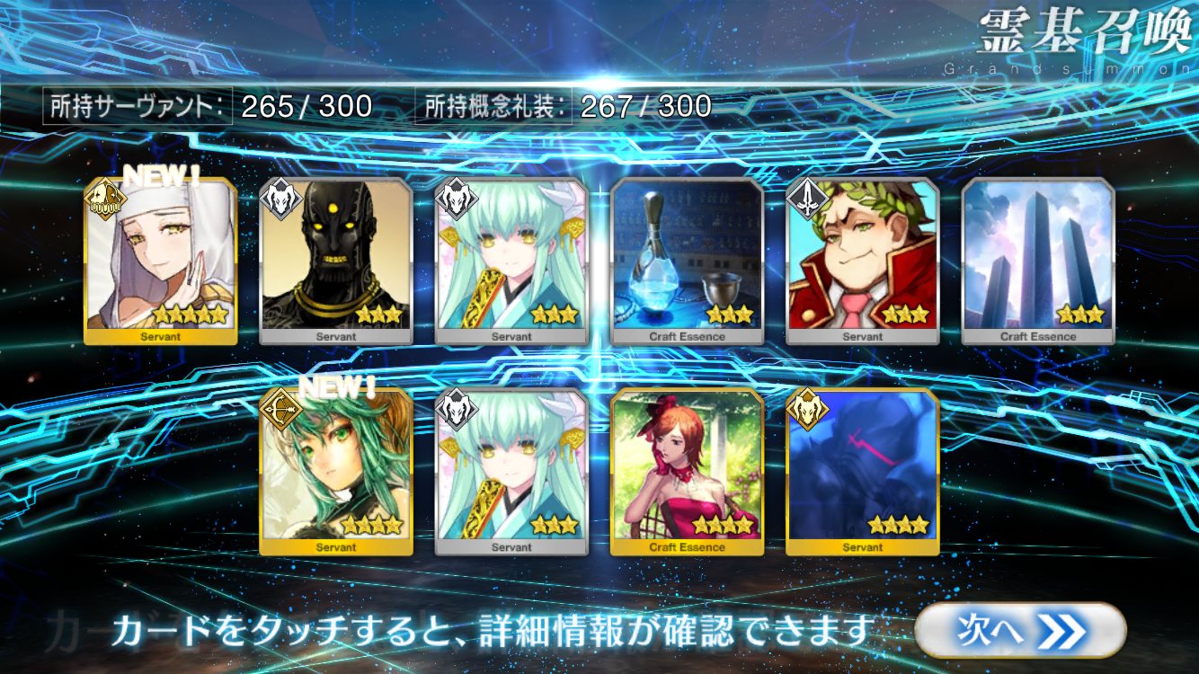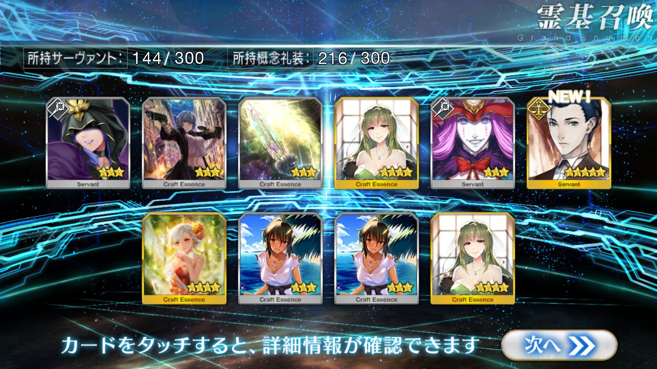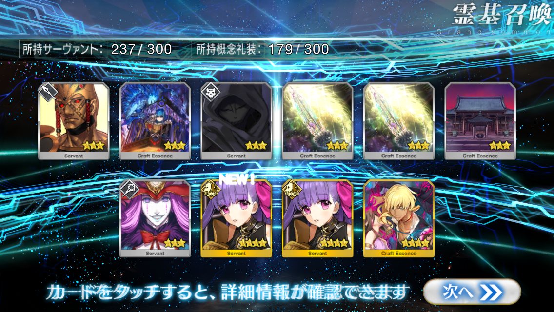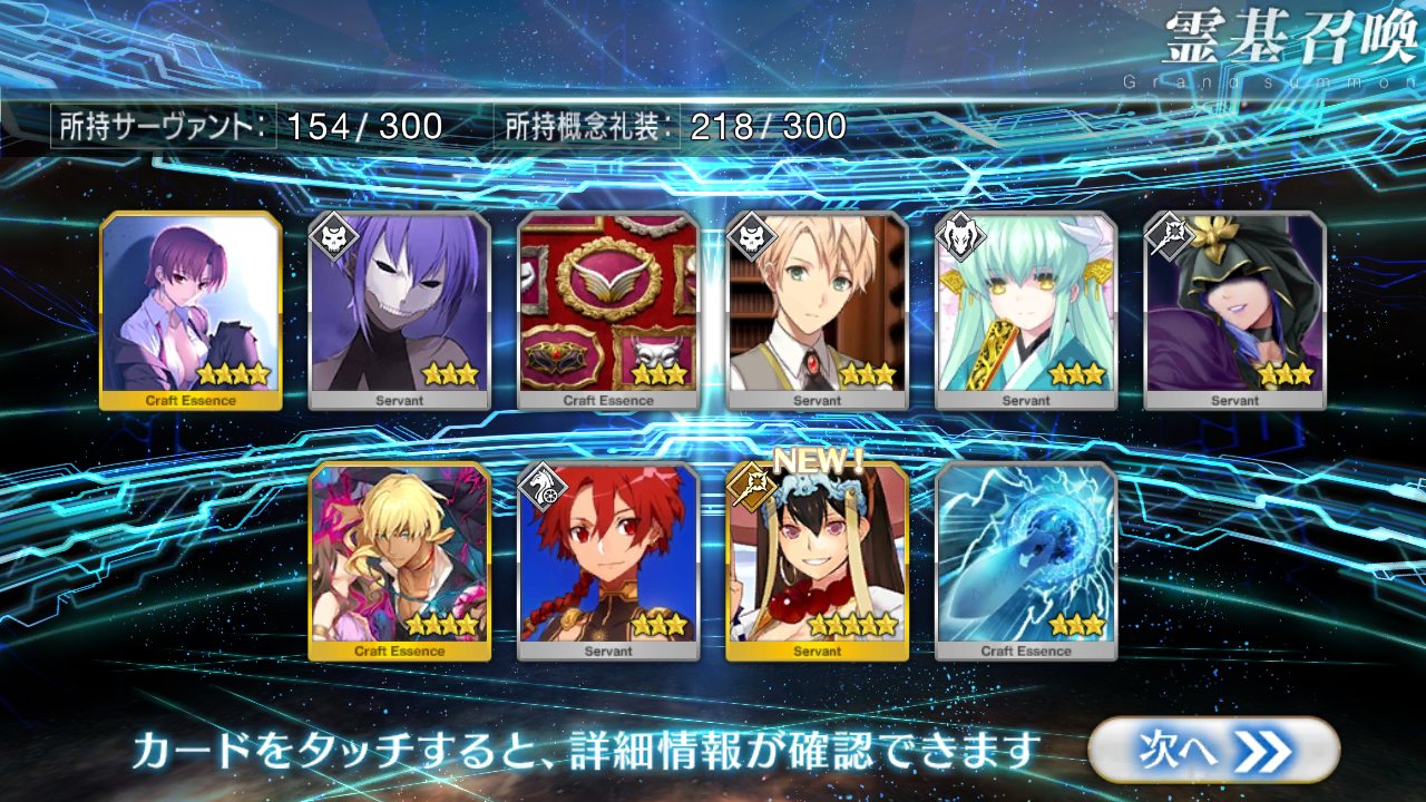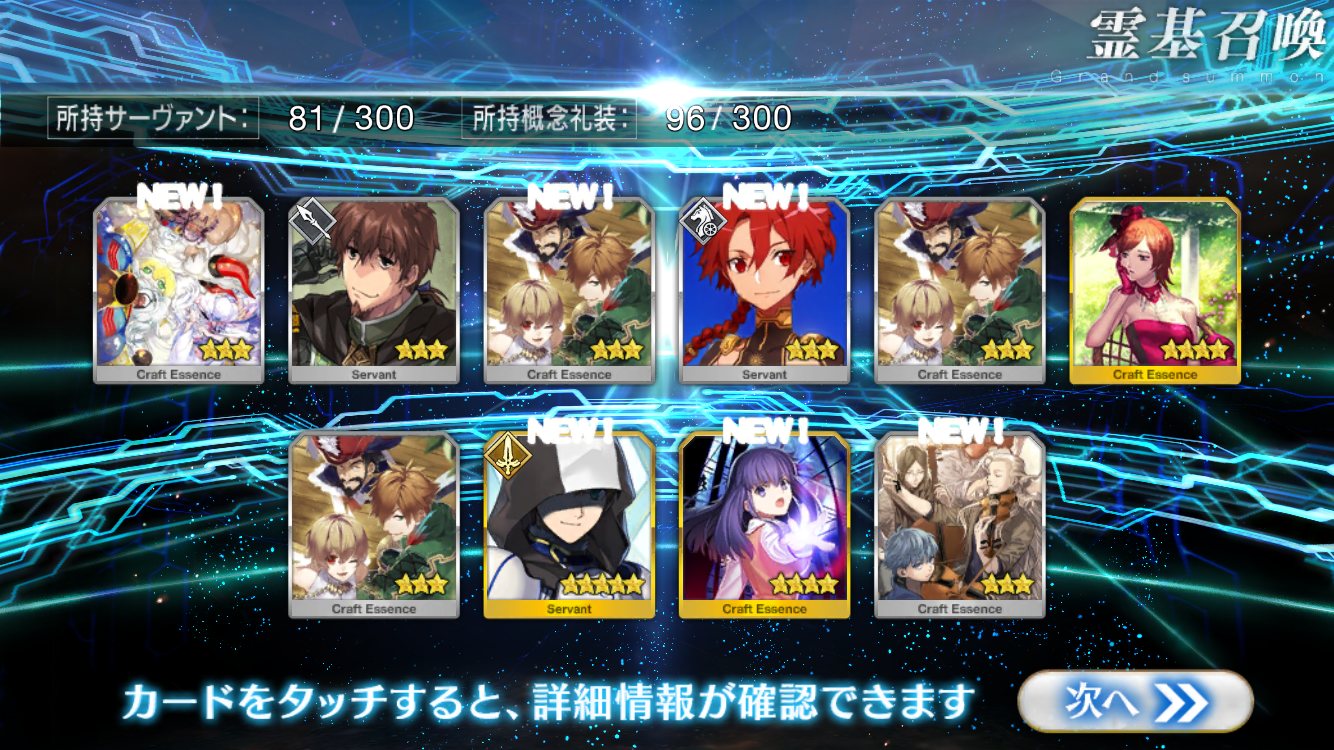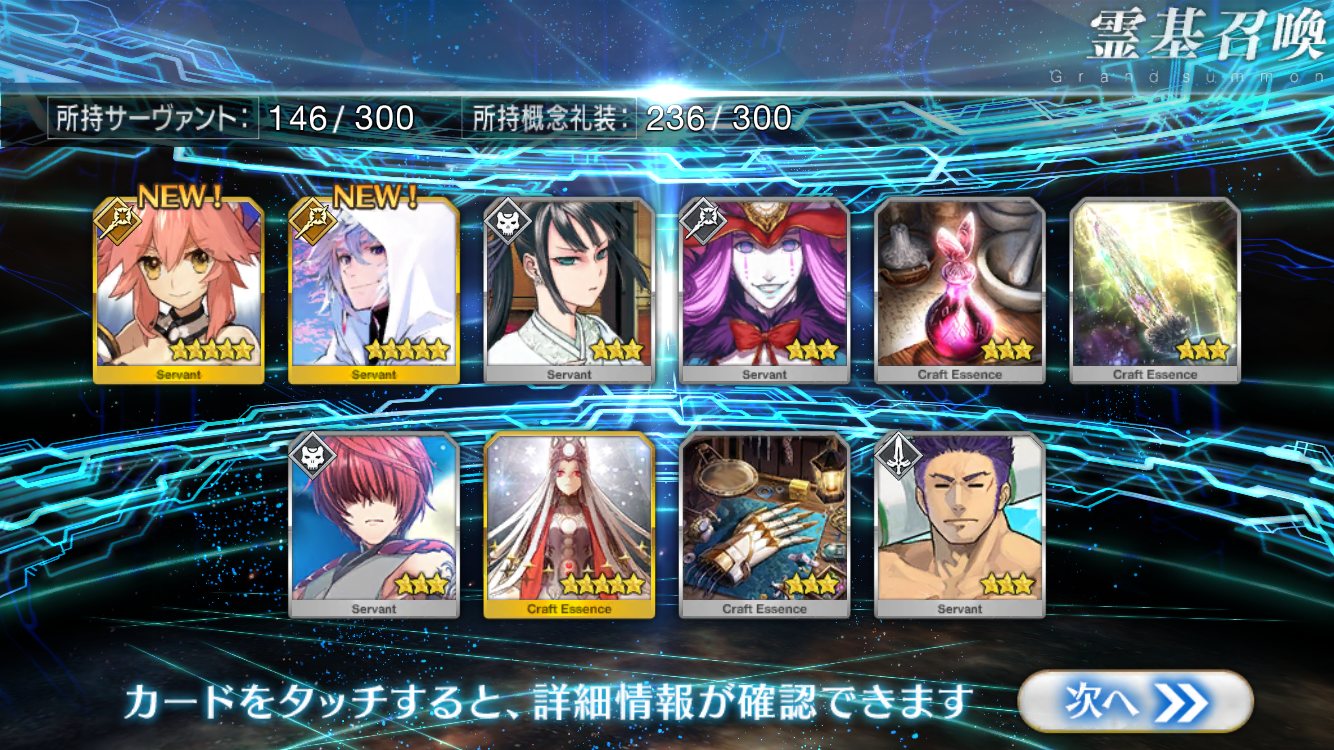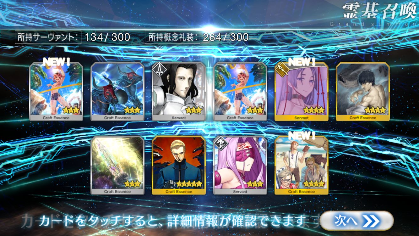 すり抜けてくれたのはずっと欲しかったジークフリート、あと三蔵は宝具を2にできた。