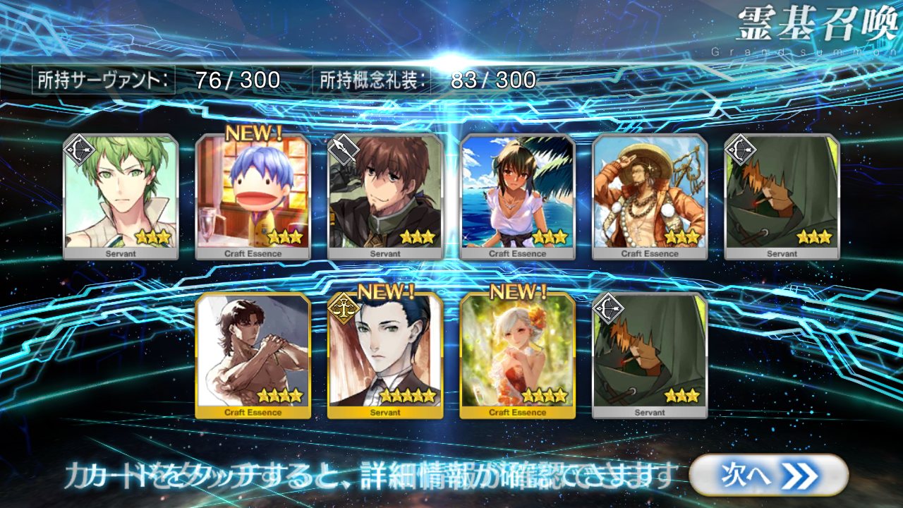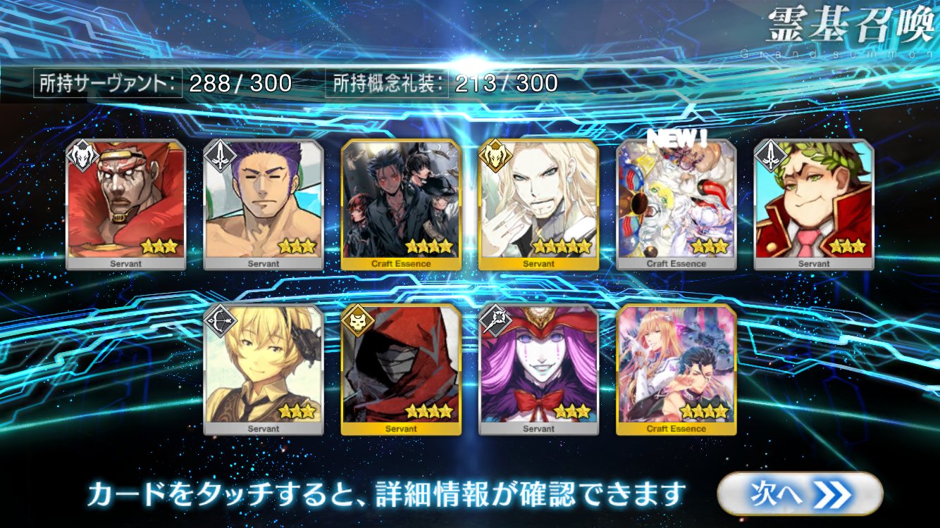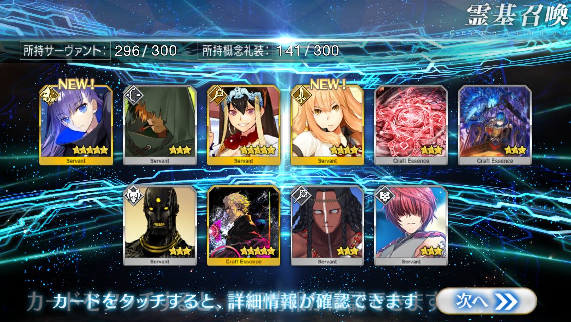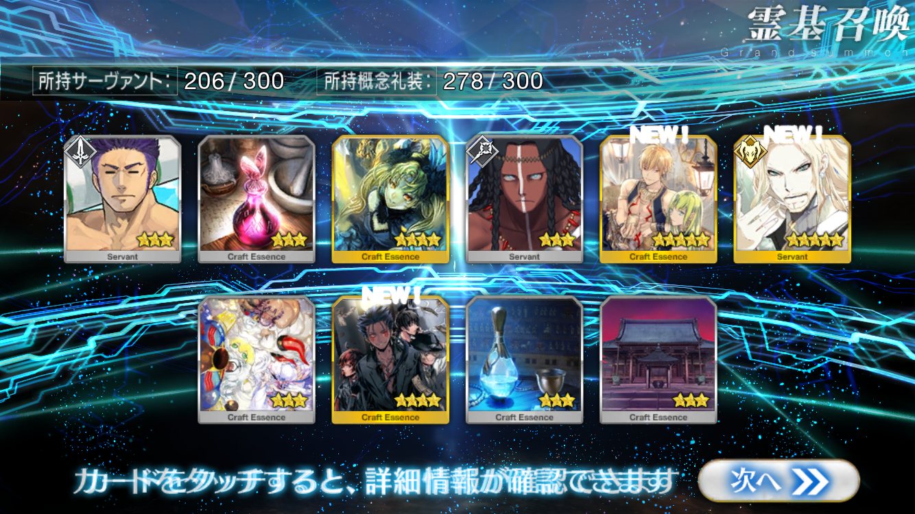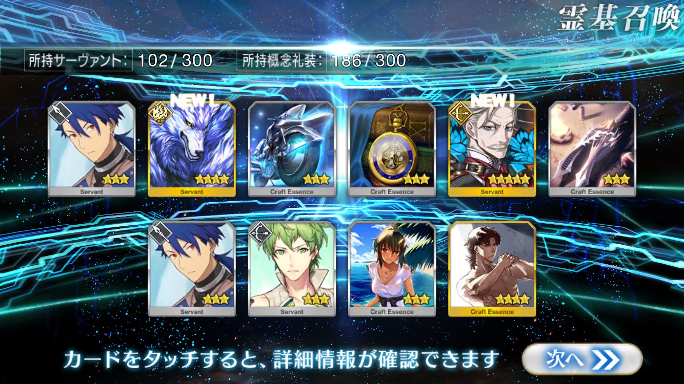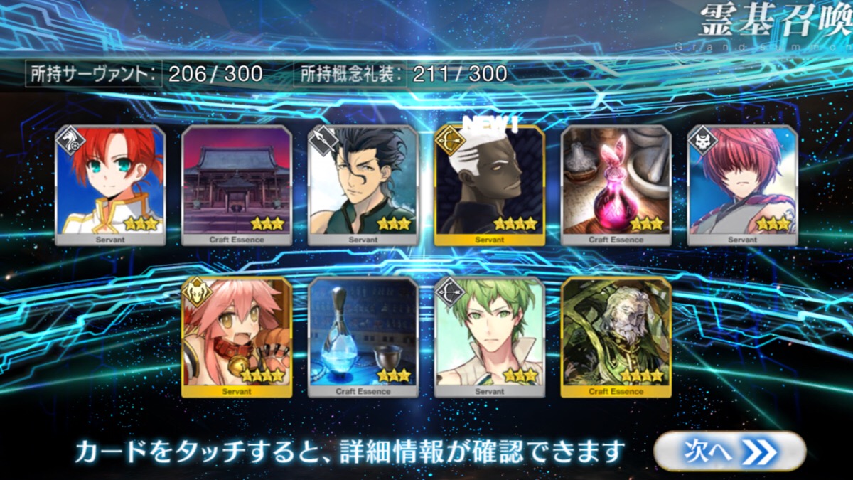 すり抜けてくれたのはずっと欲しかったジークフリート、あと三蔵は宝具を2にできた。