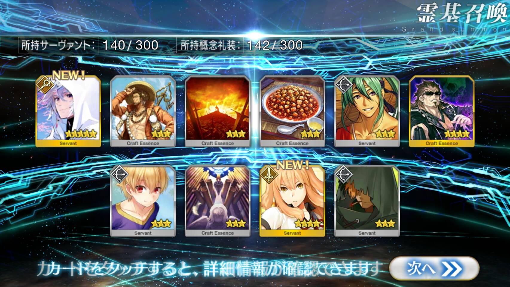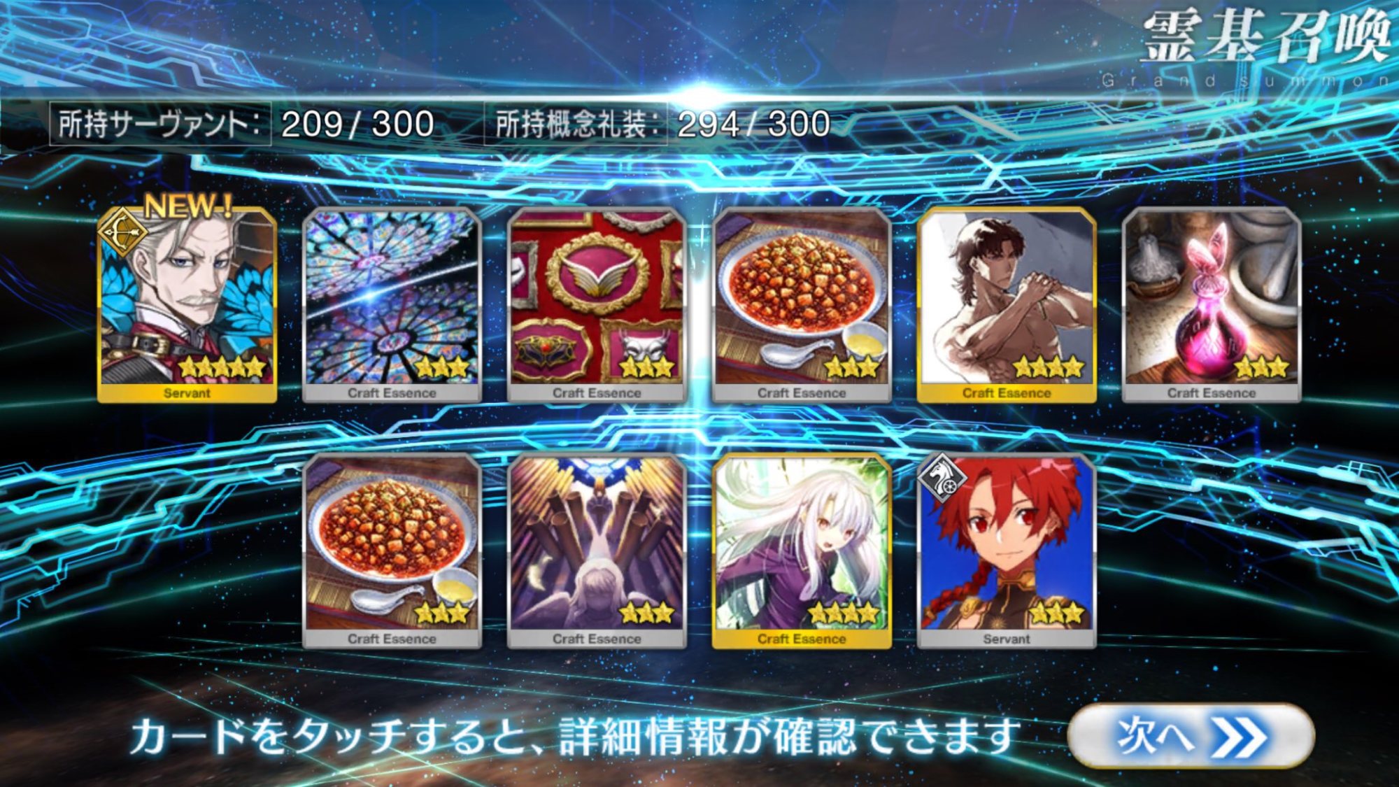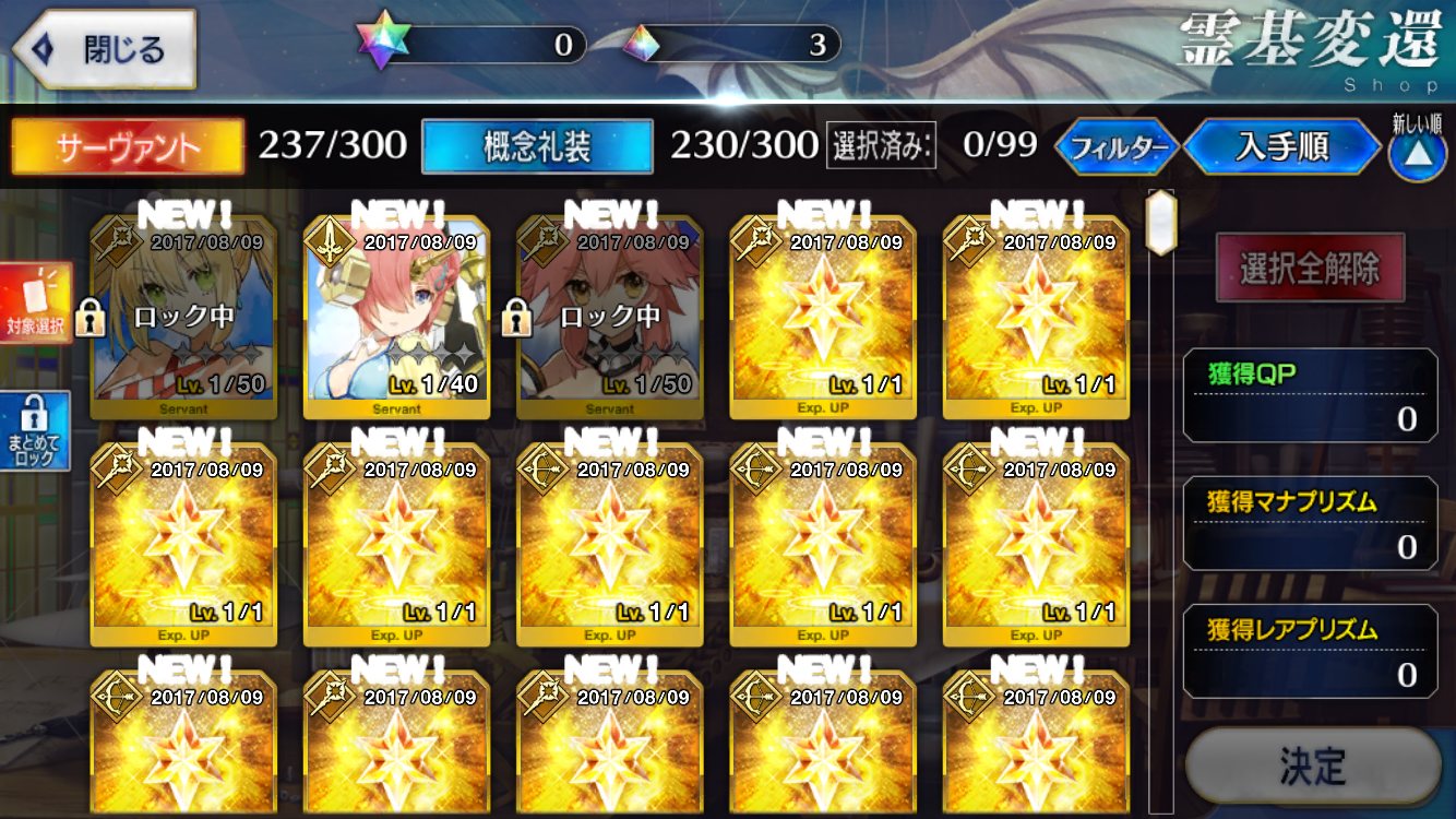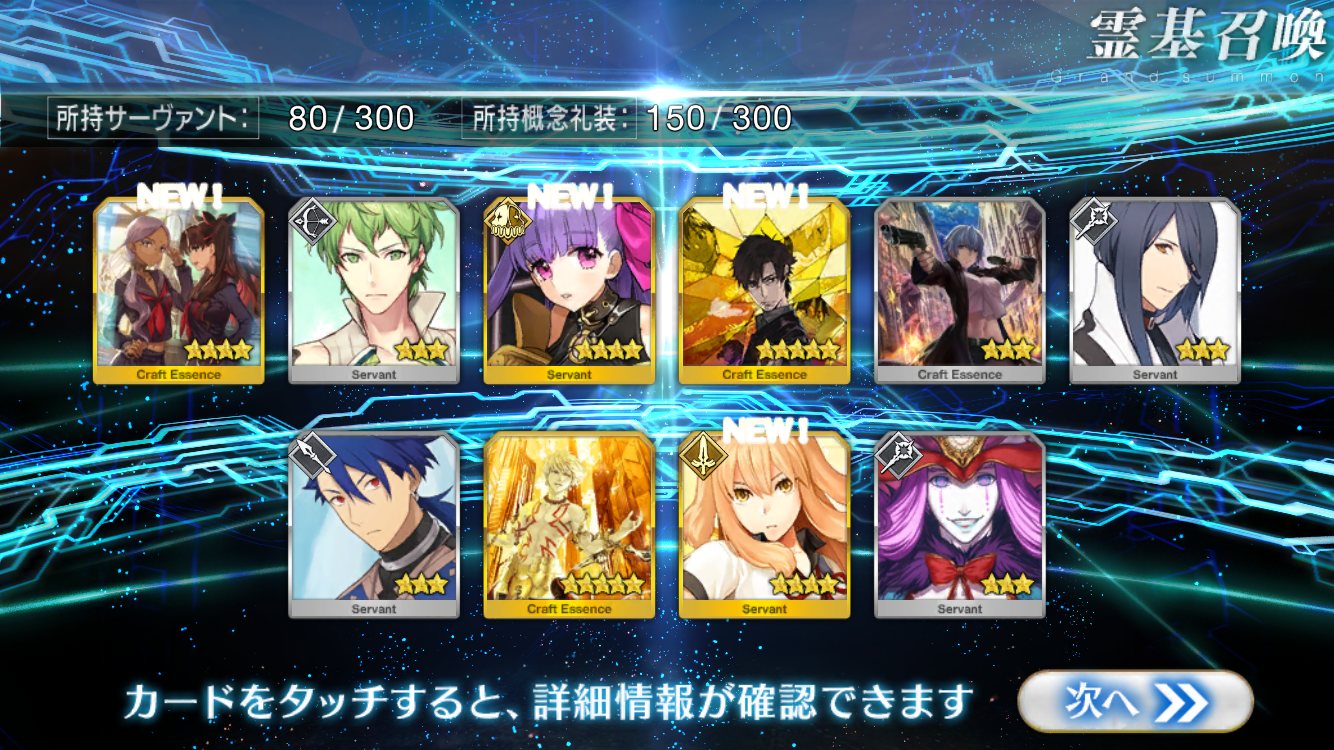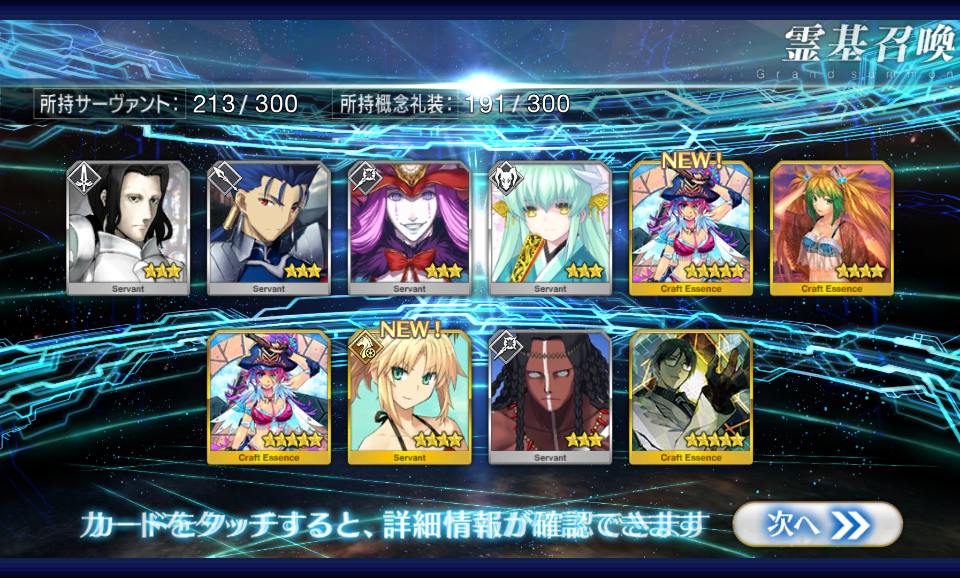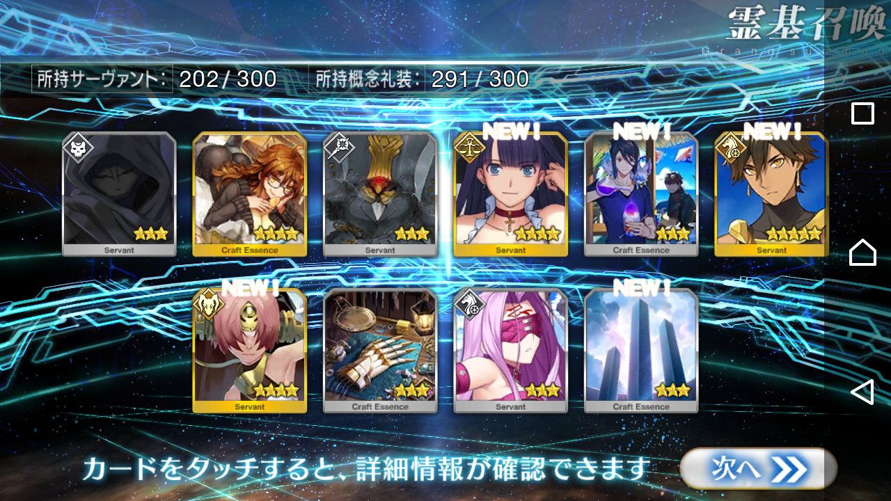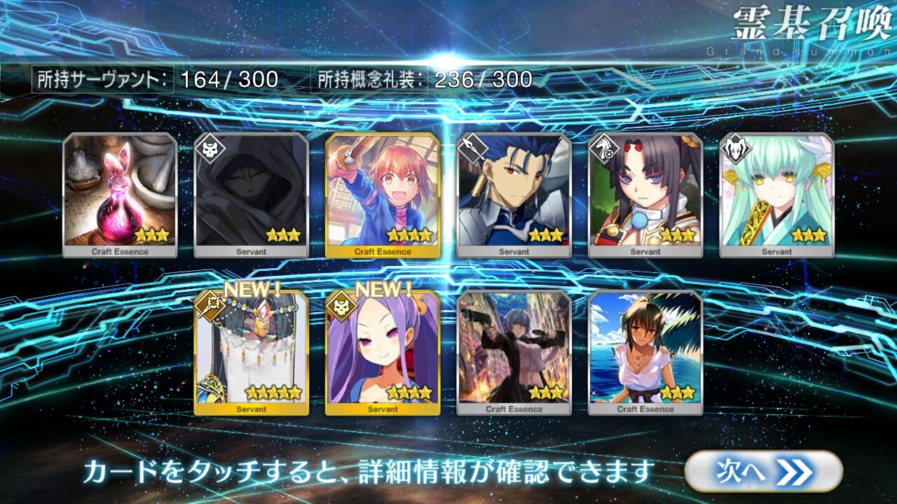 すり抜けてくれたのはずっと欲しかったジークフリート、あと三蔵は宝具を2にできた。