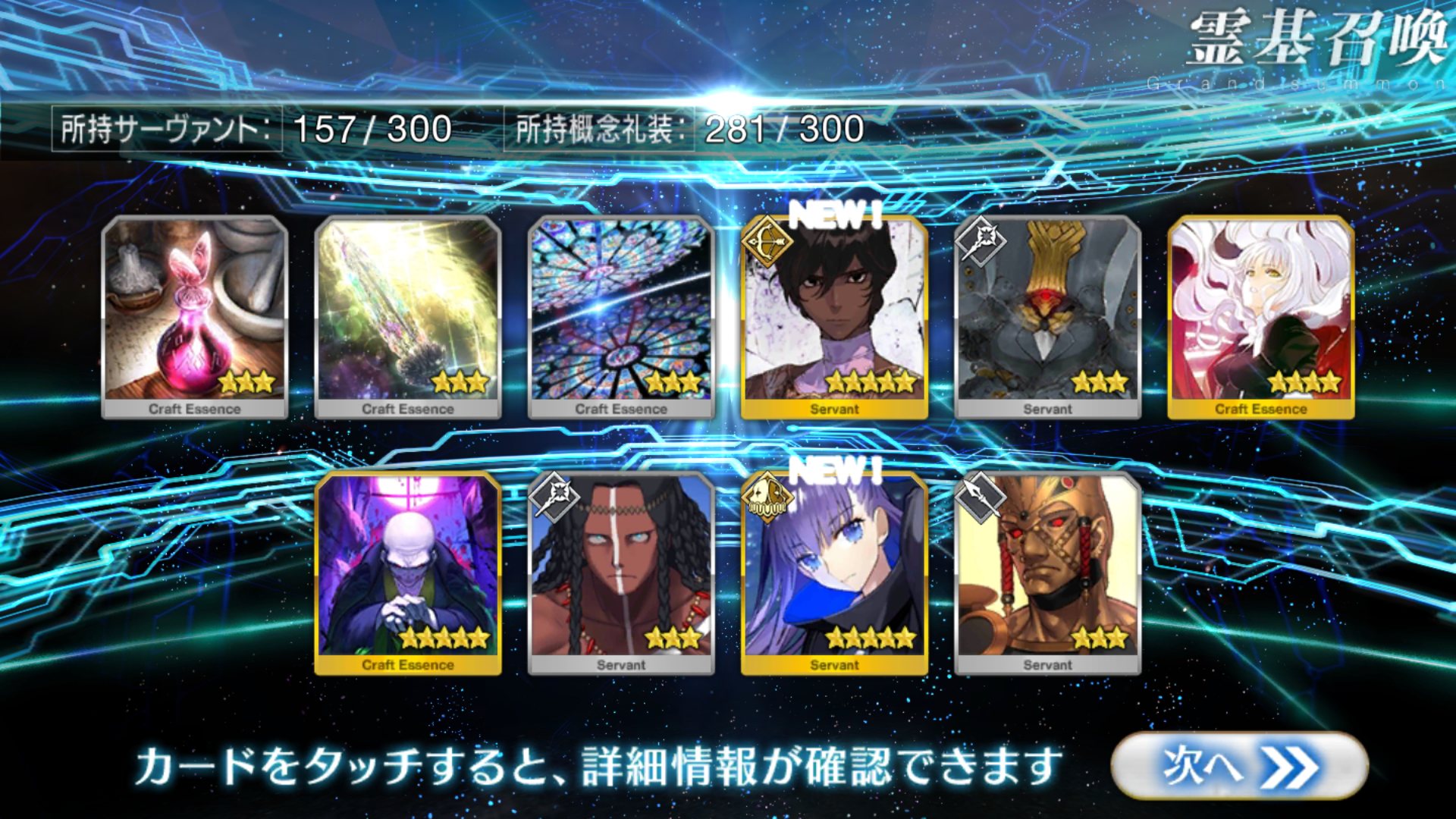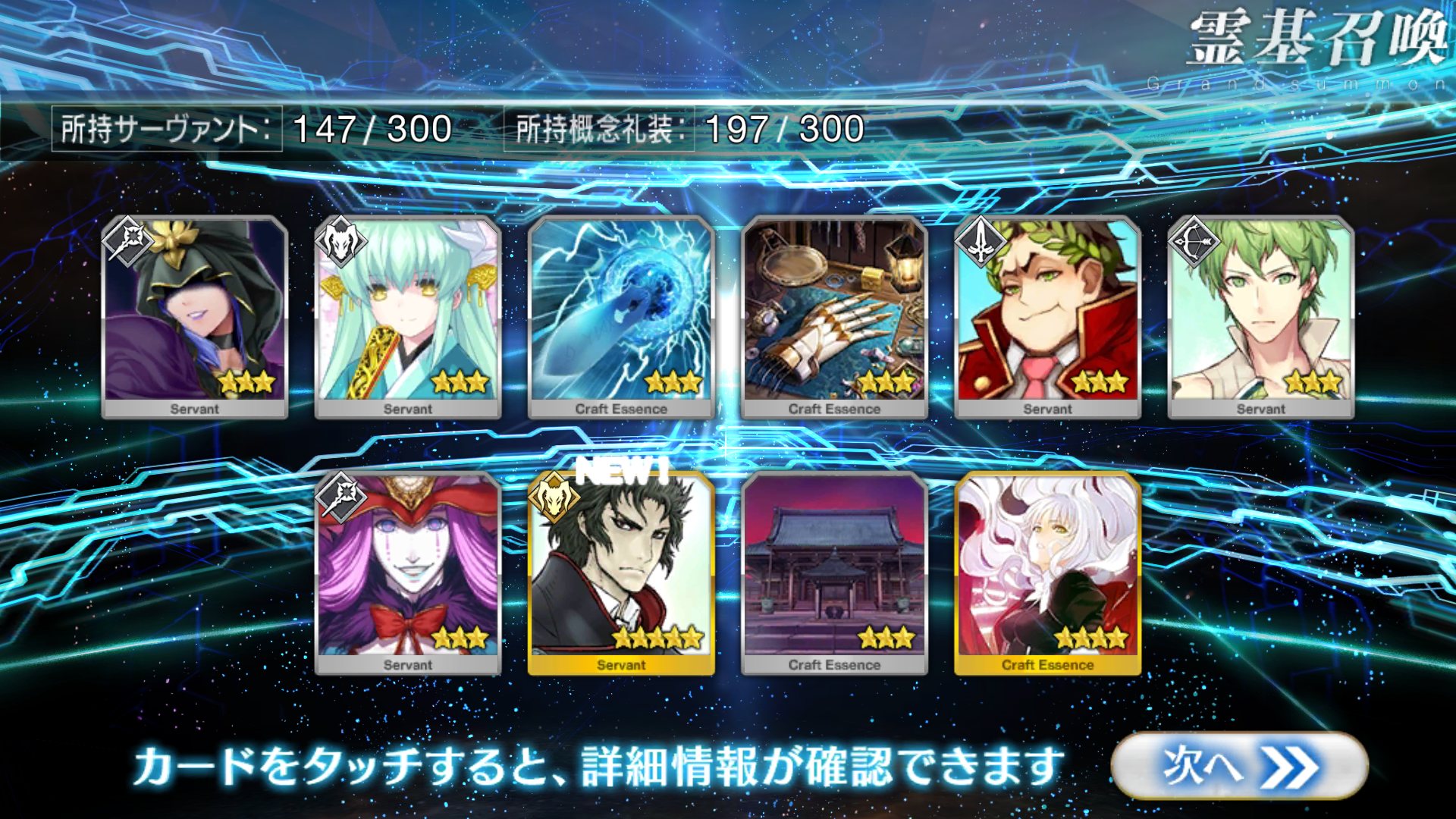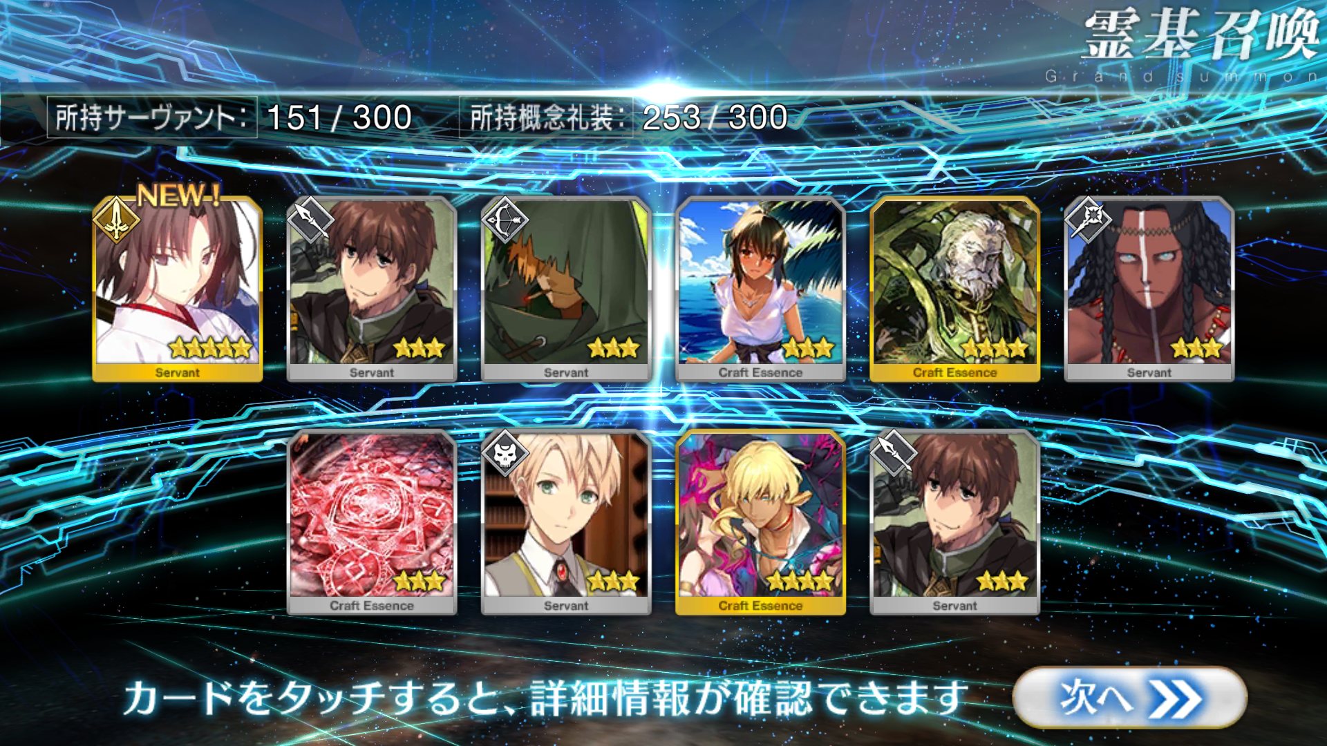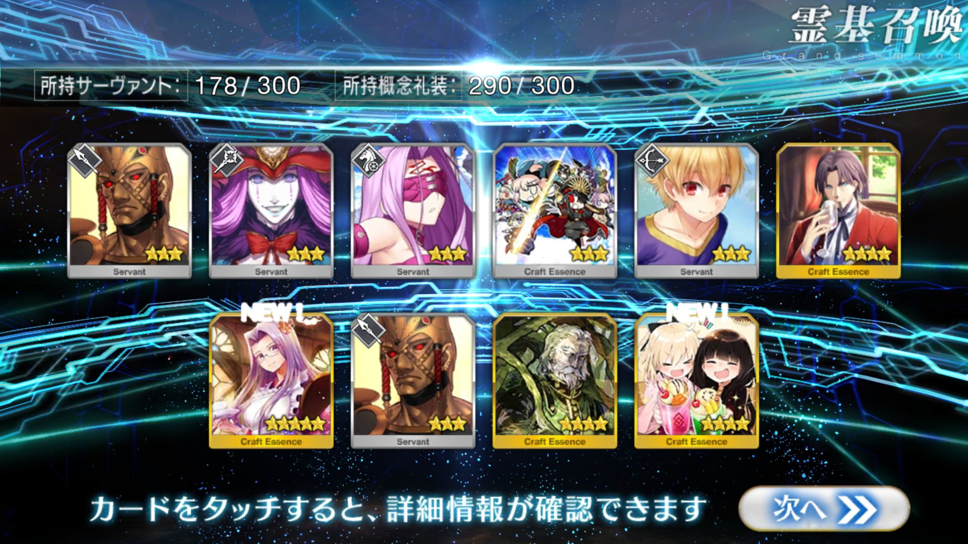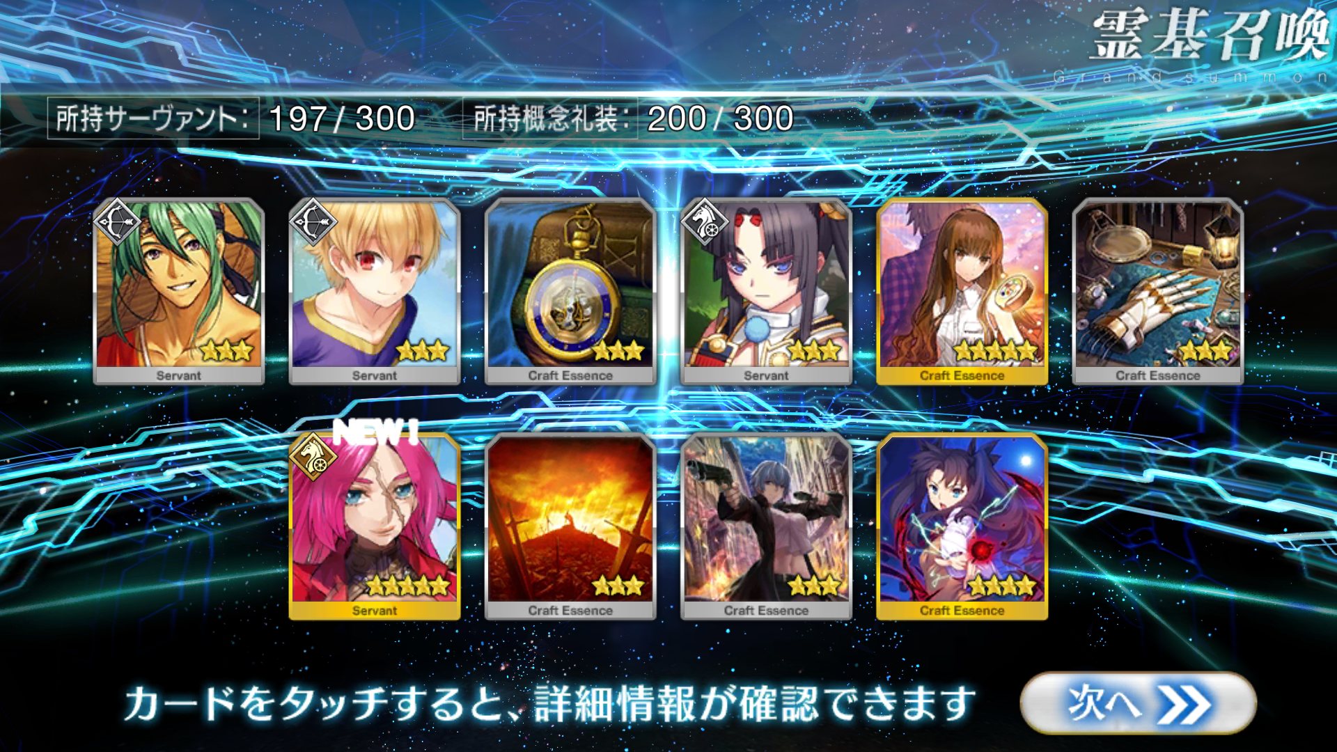 すり抜けてくれたのはずっと欲しかったジークフリート、あと三蔵は宝具を2にできた。