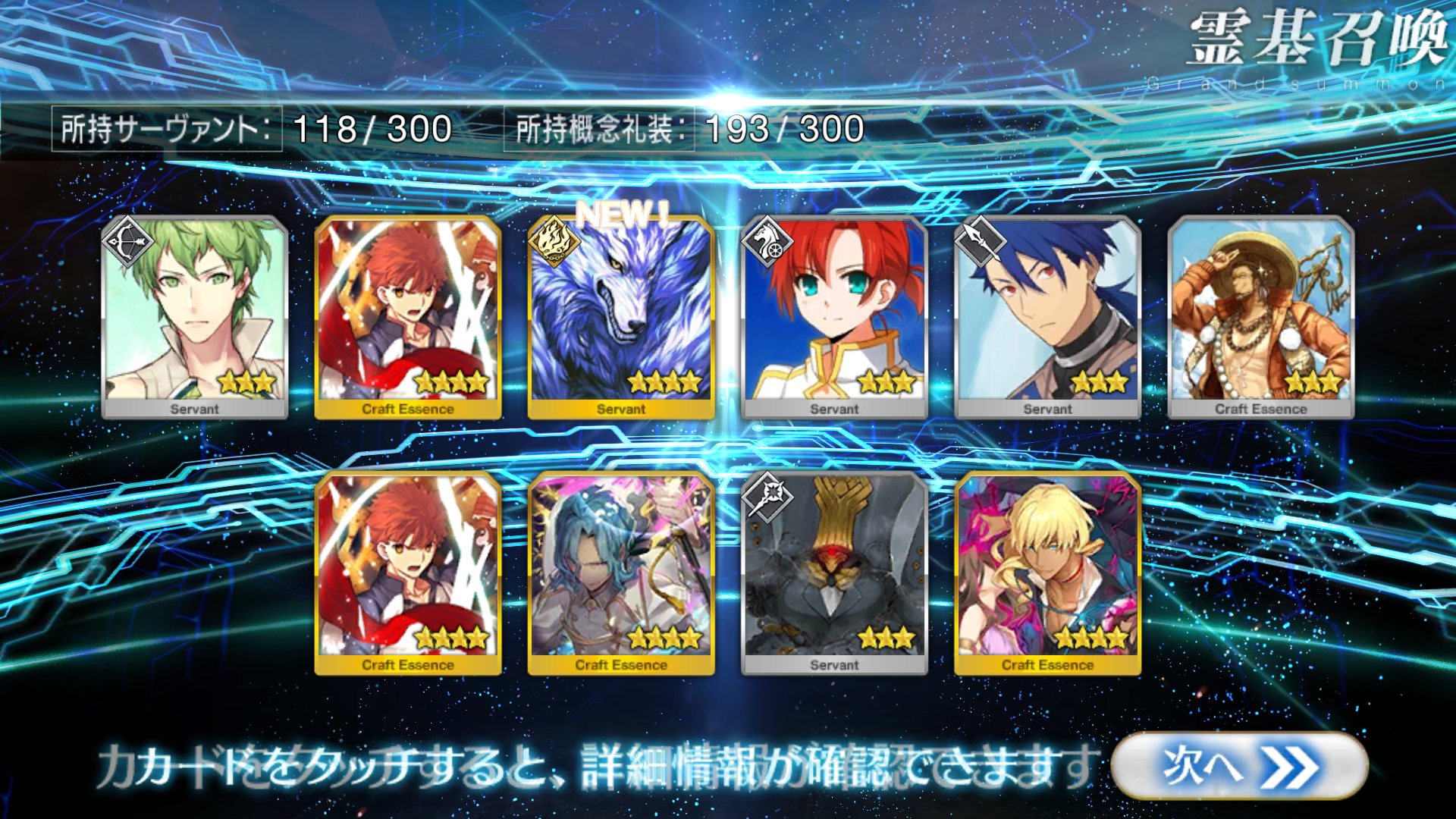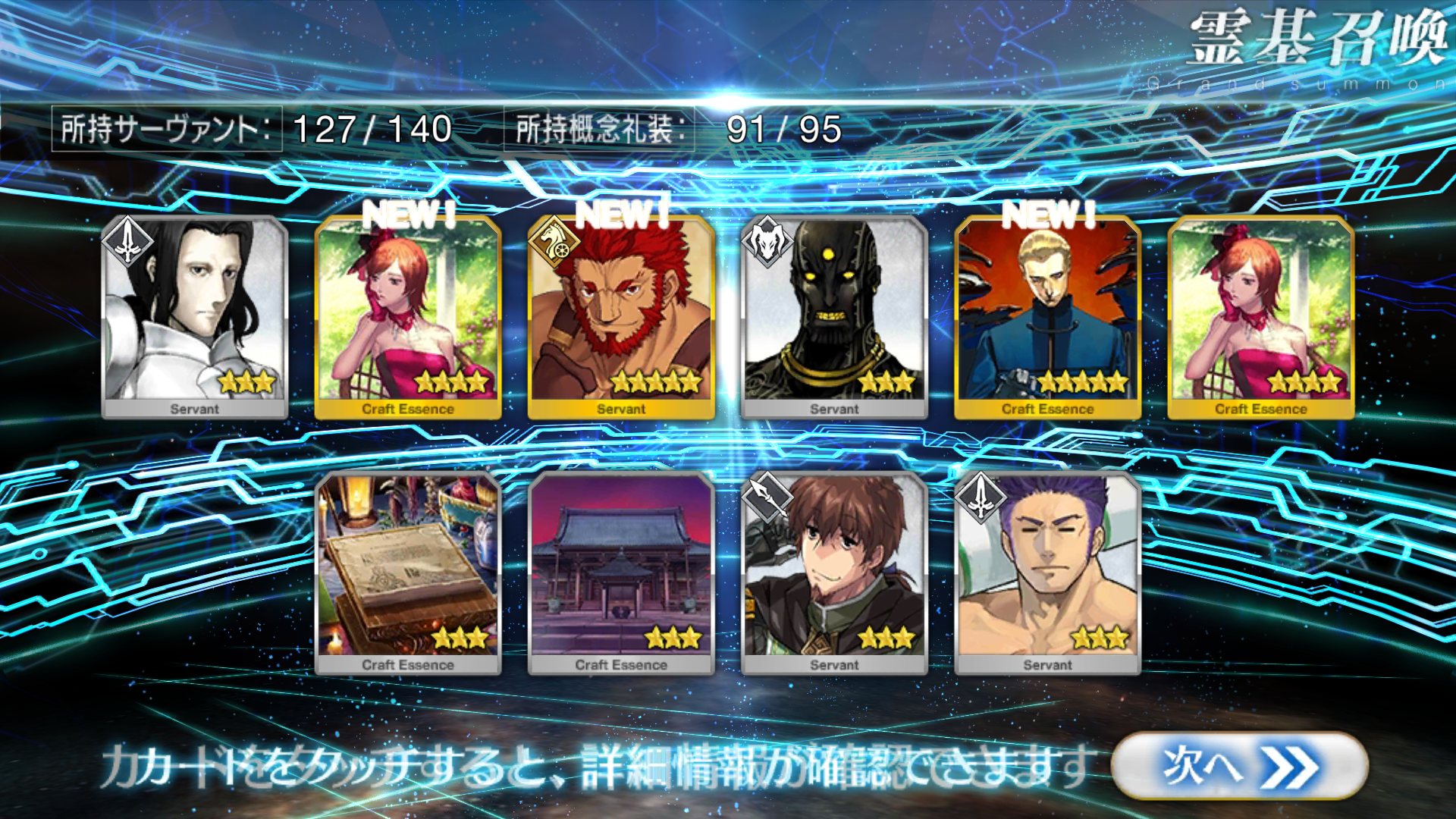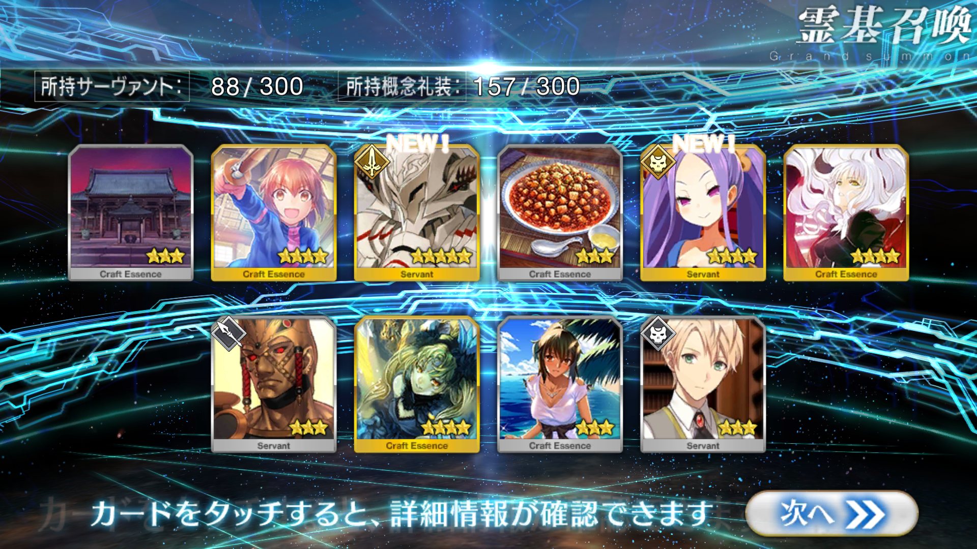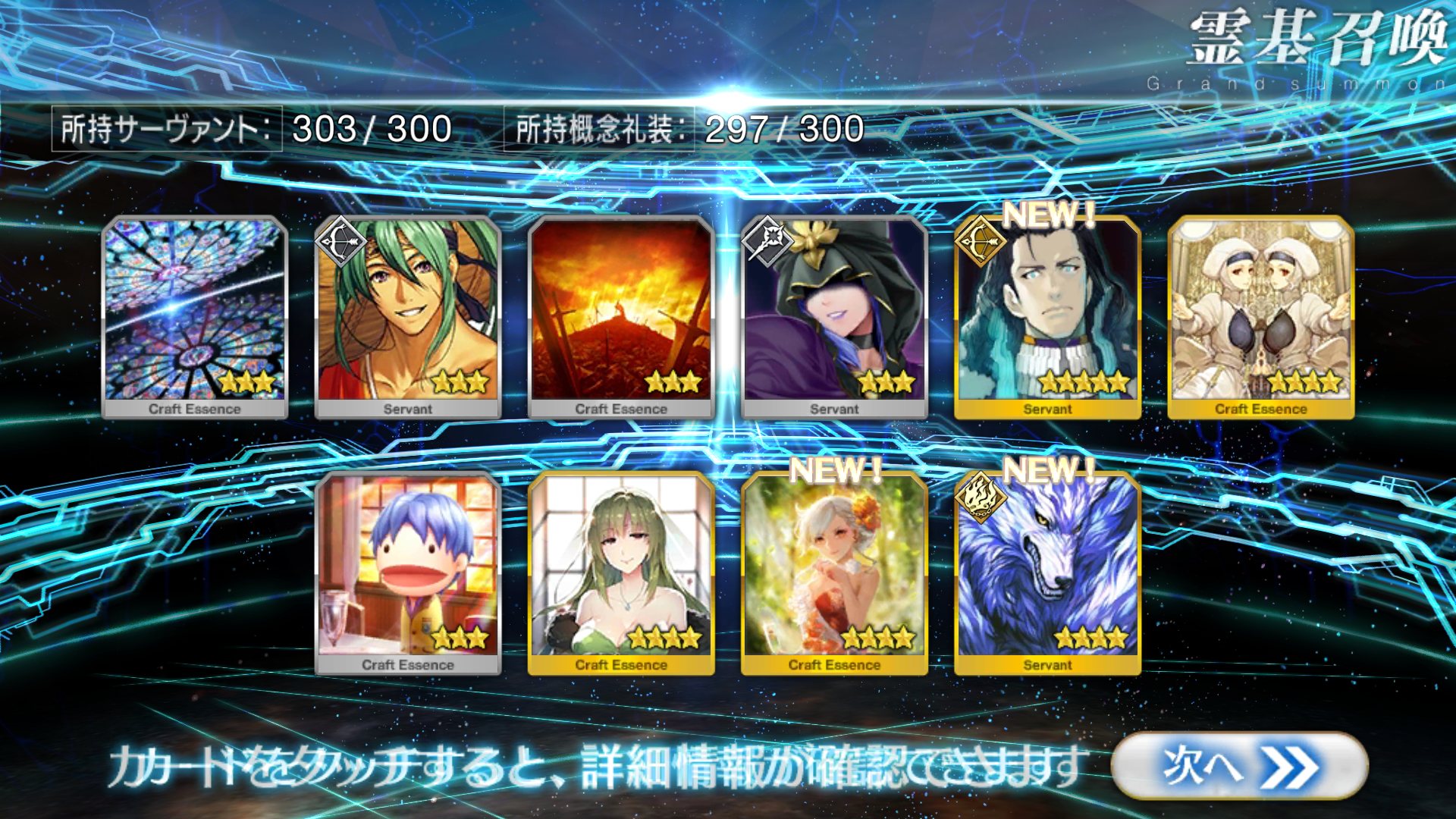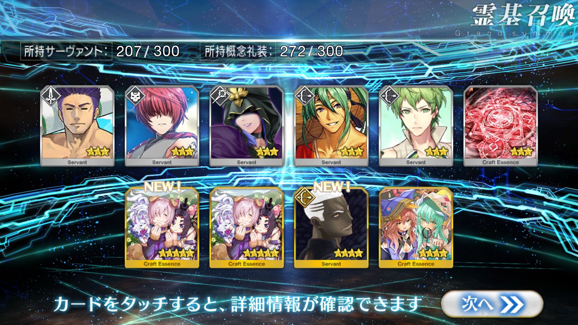 すり抜けてくれたのはずっと欲しかったジークフリート、あと三蔵は宝具を2にできた。