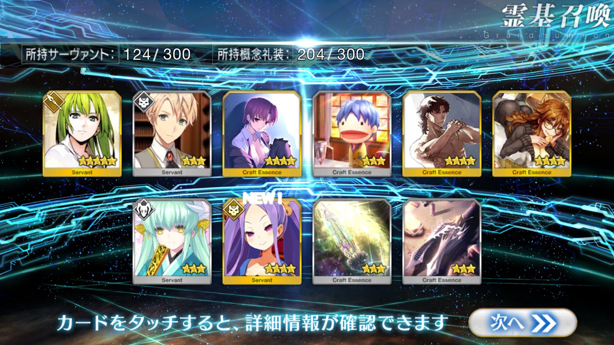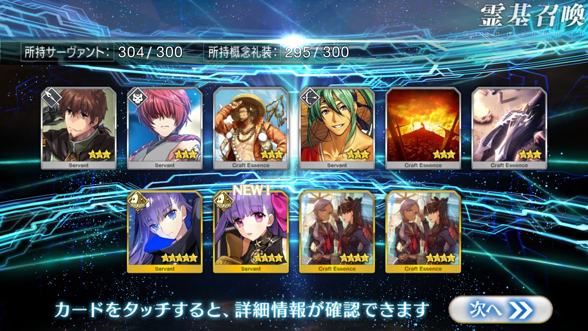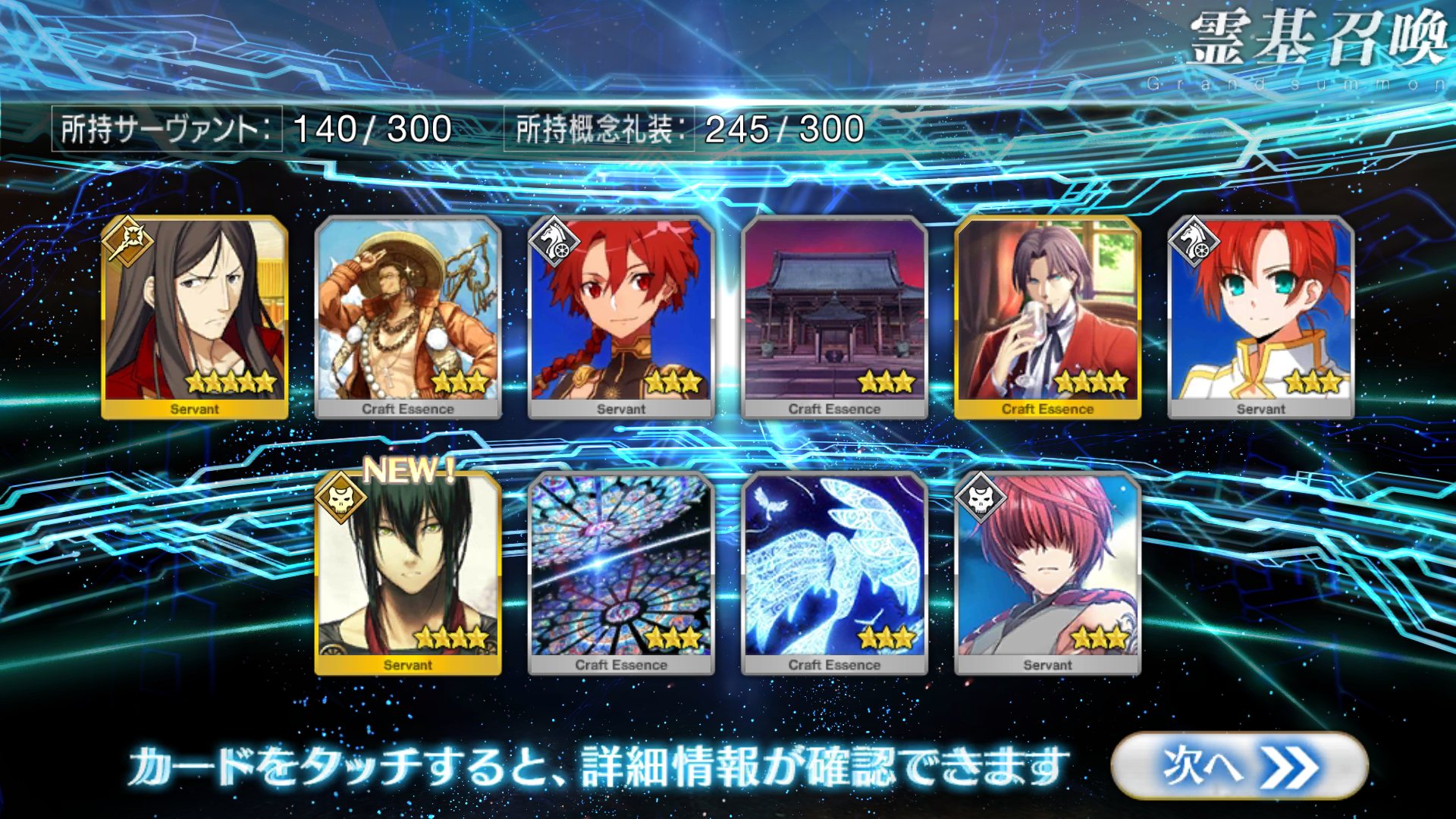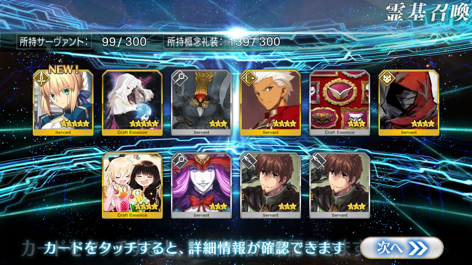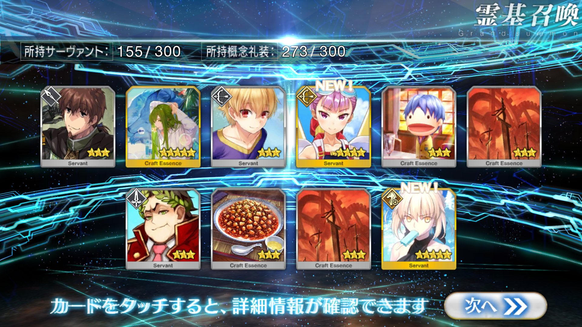 すり抜けてくれたのはずっと欲しかったジークフリート、あと三蔵は宝具を2にできた。