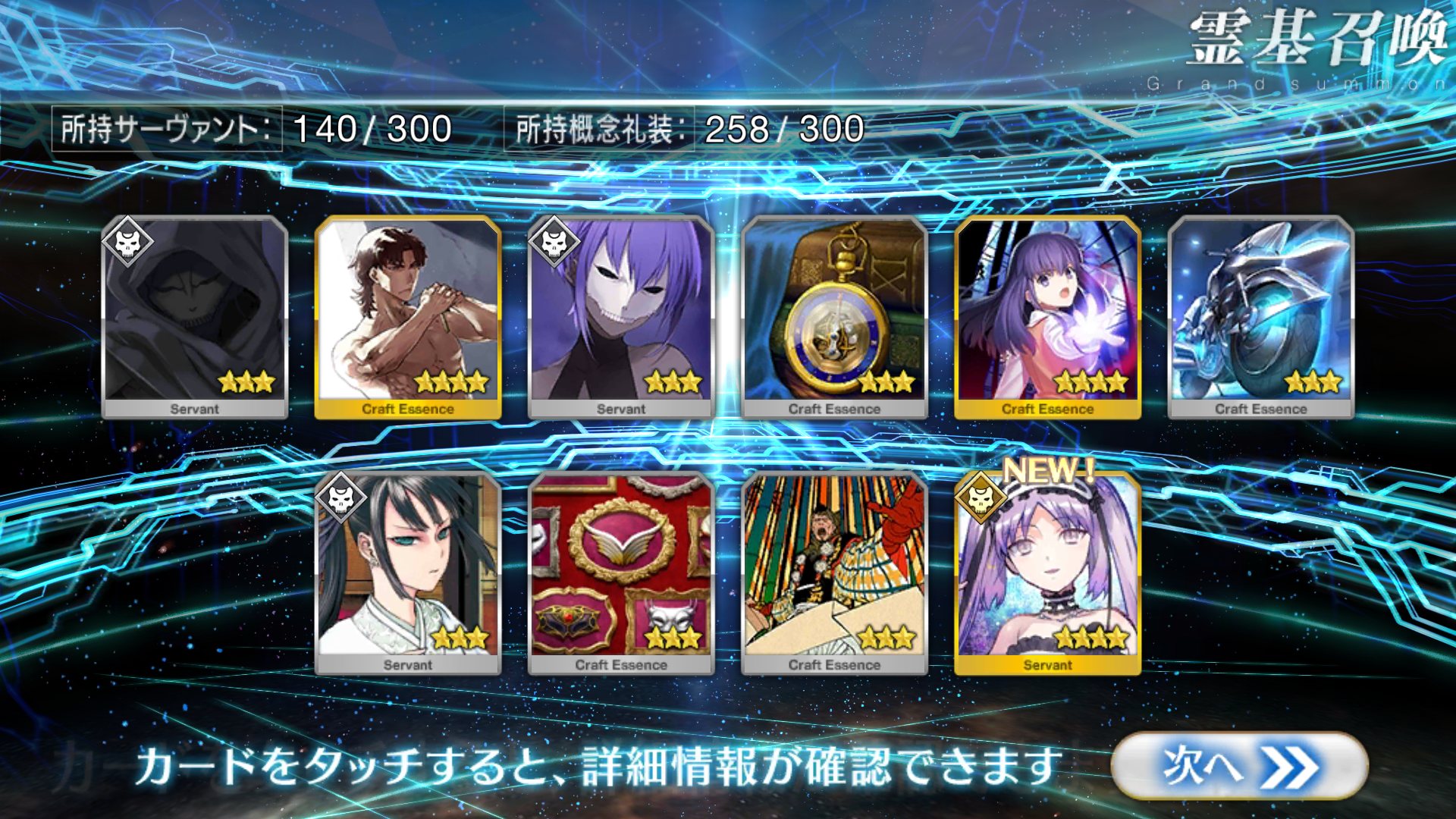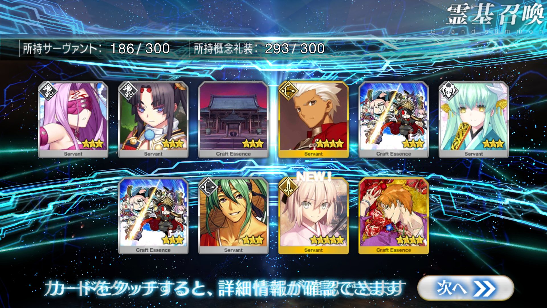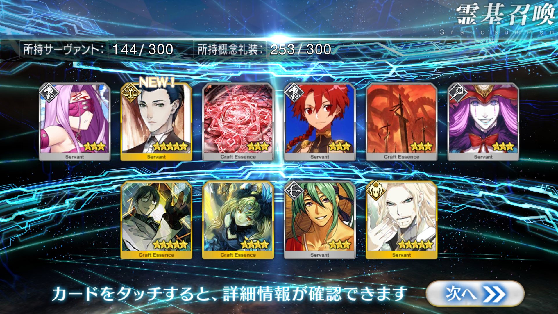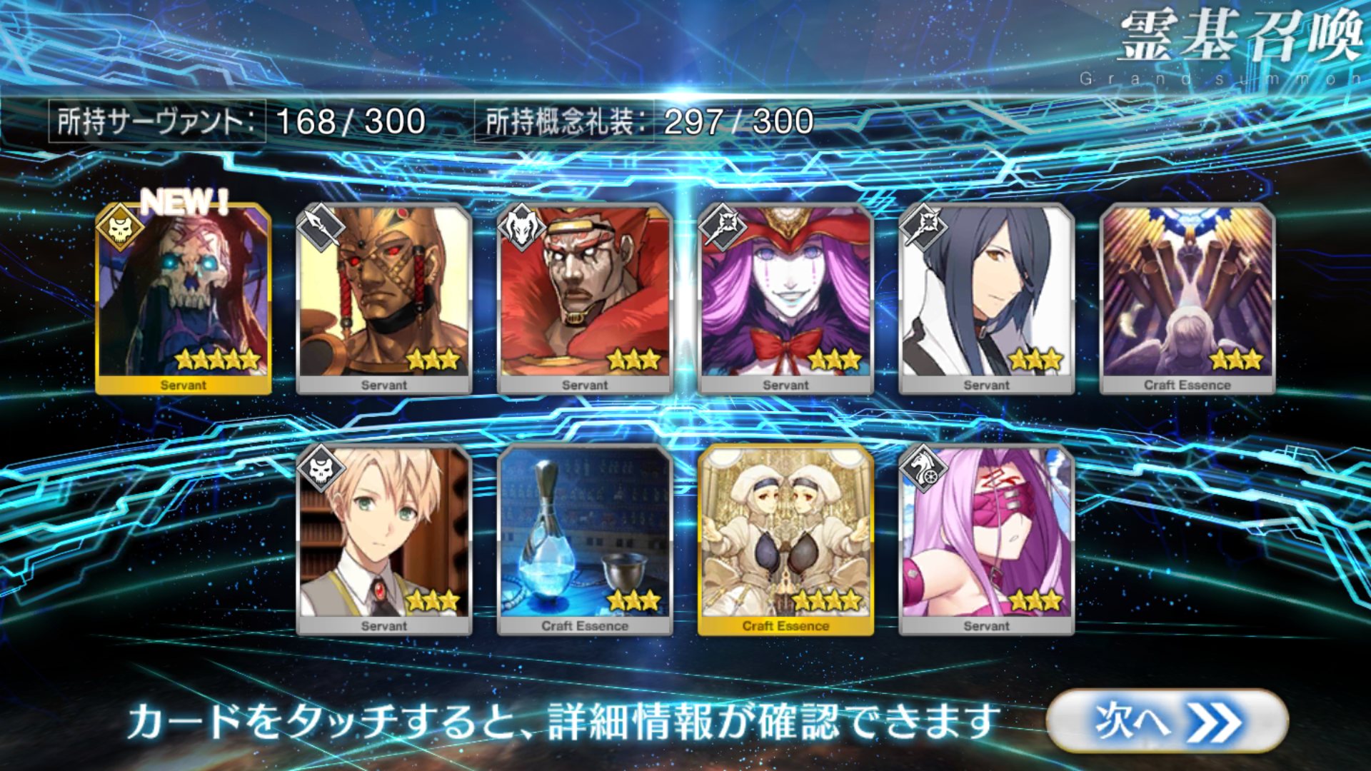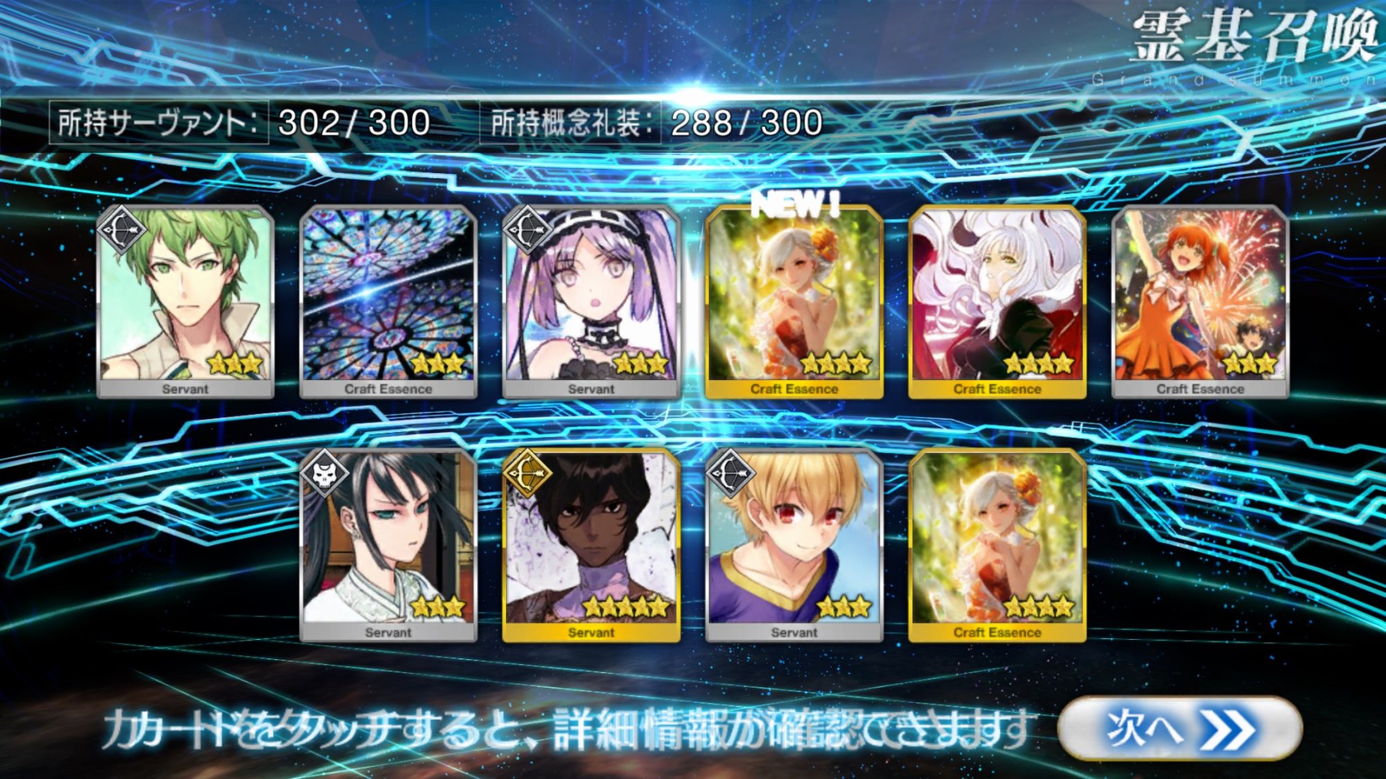 すり抜けてくれたのはずっと欲しかったジークフリート、あと三蔵は宝具を2にできた。