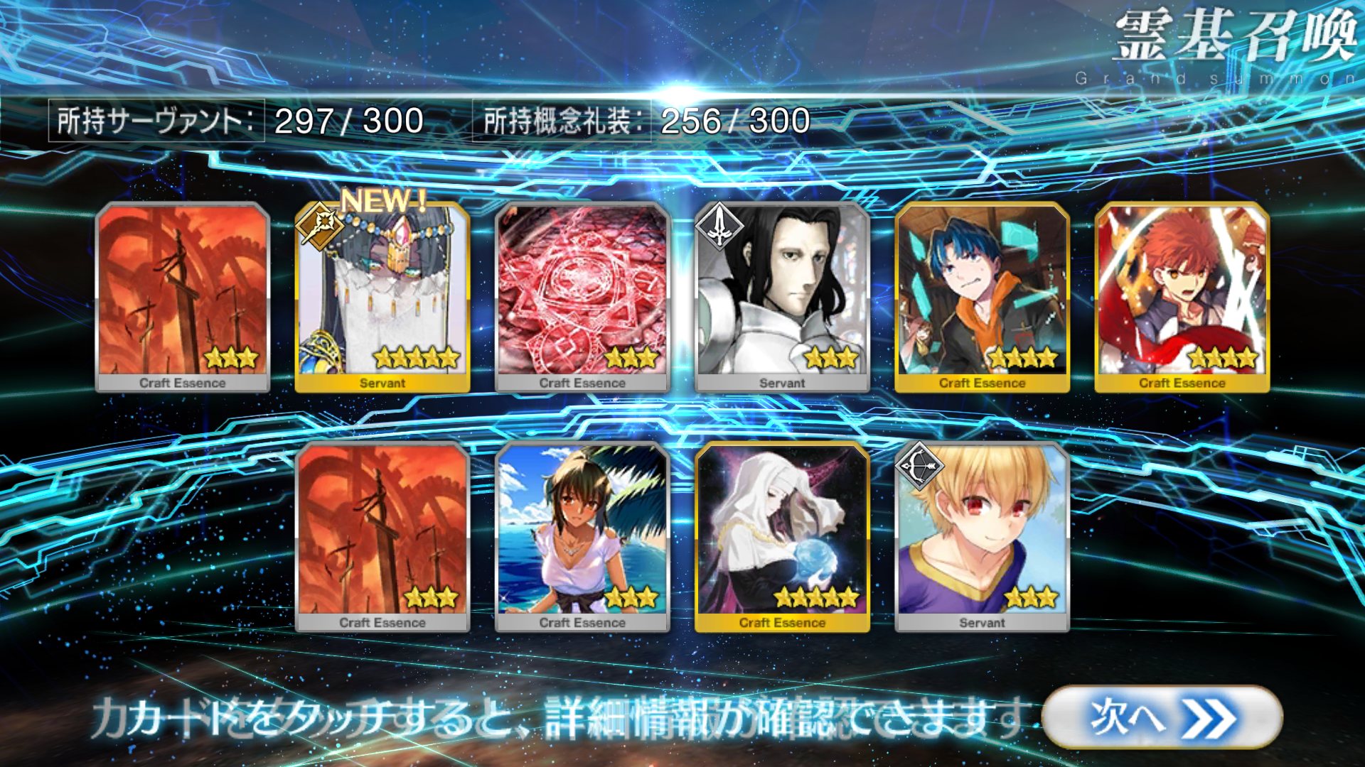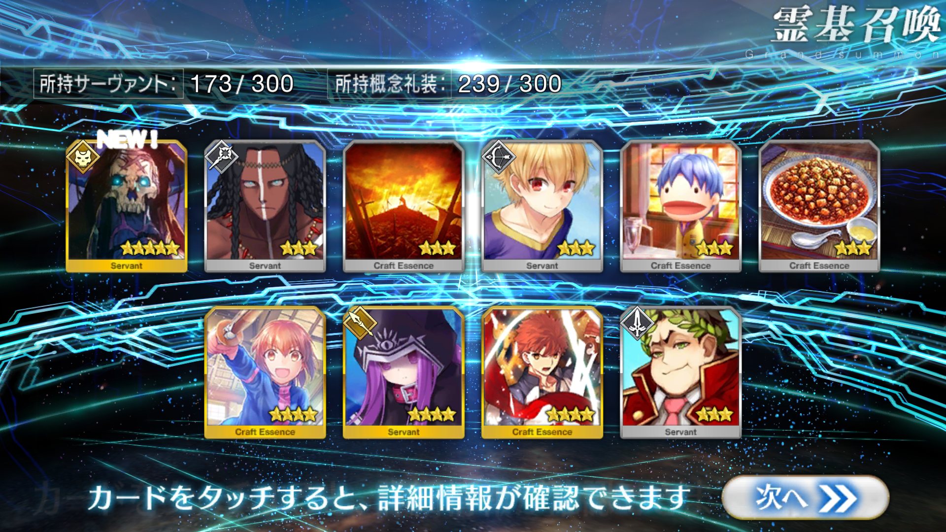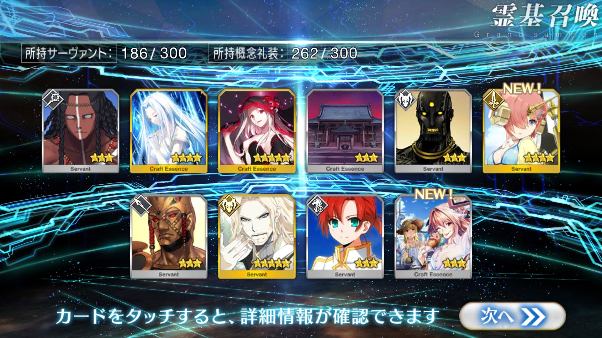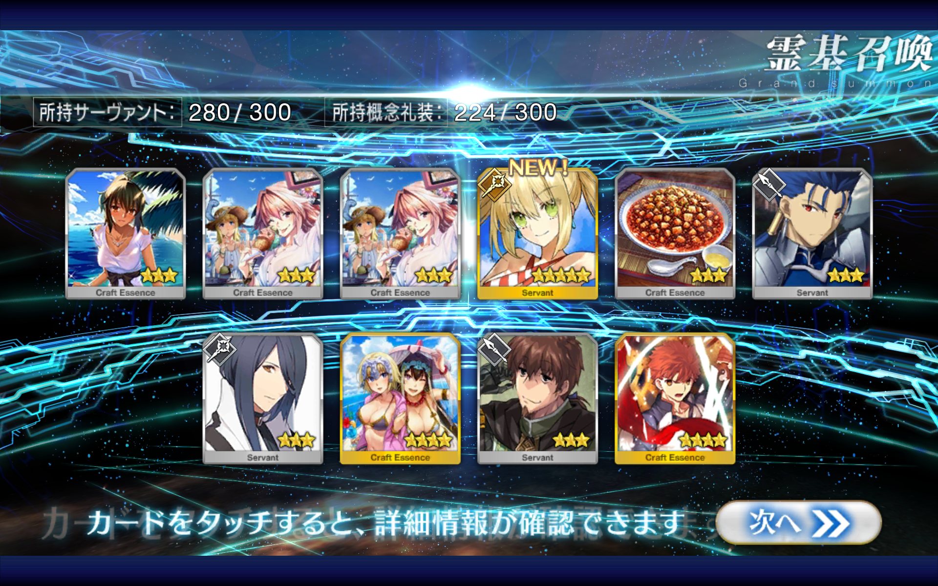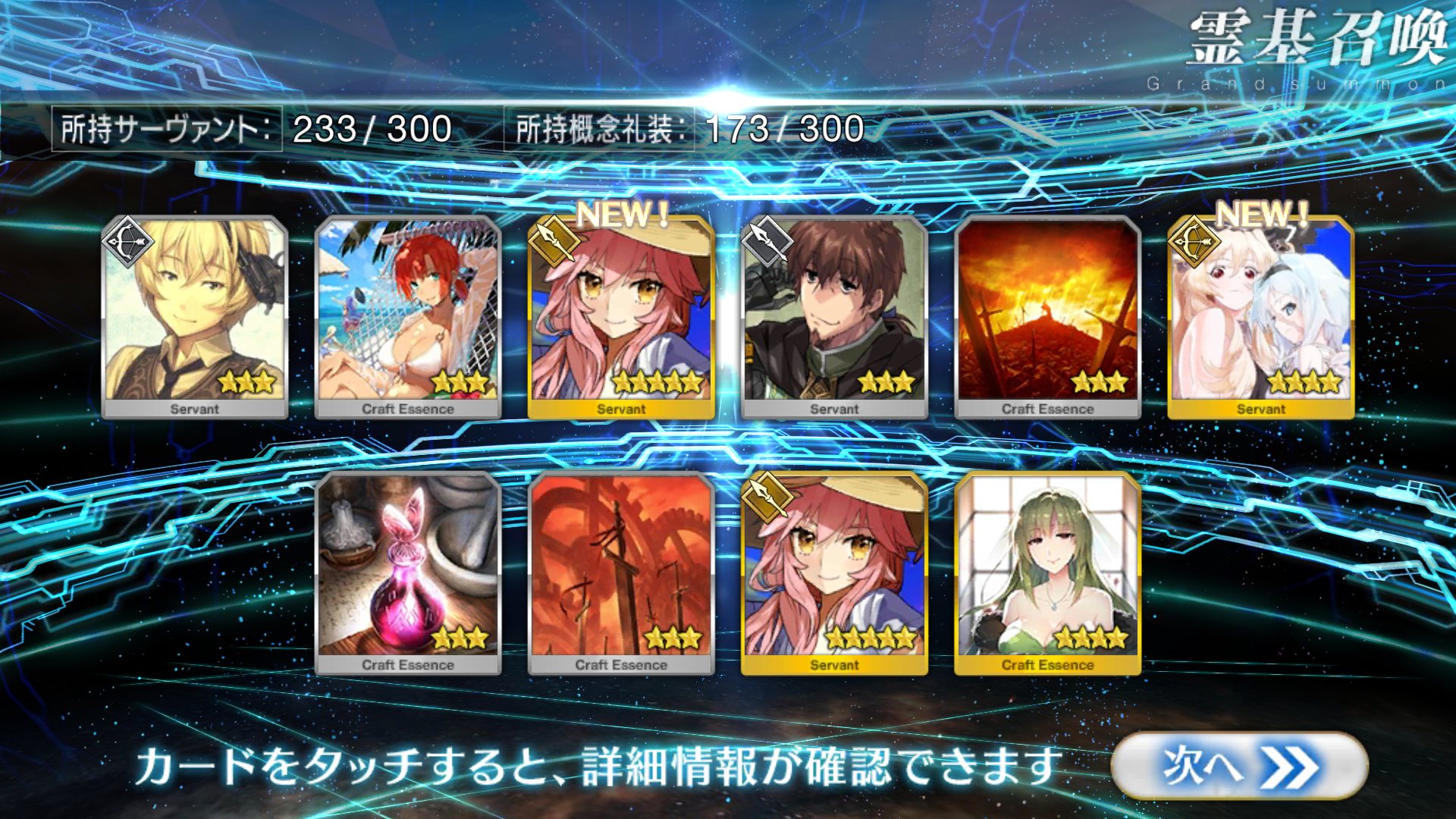 すり抜けてくれたのはずっと欲しかったジークフリート、あと三蔵は宝具を2にできた。