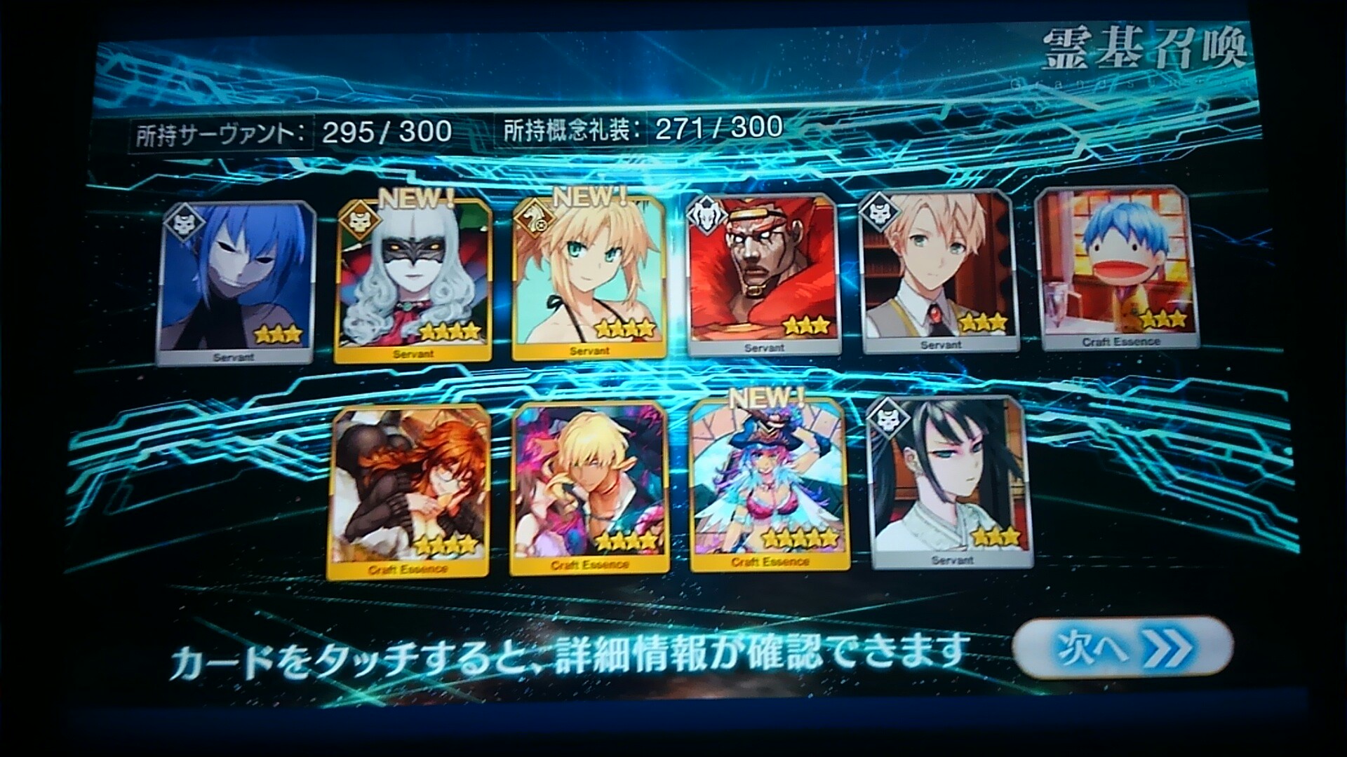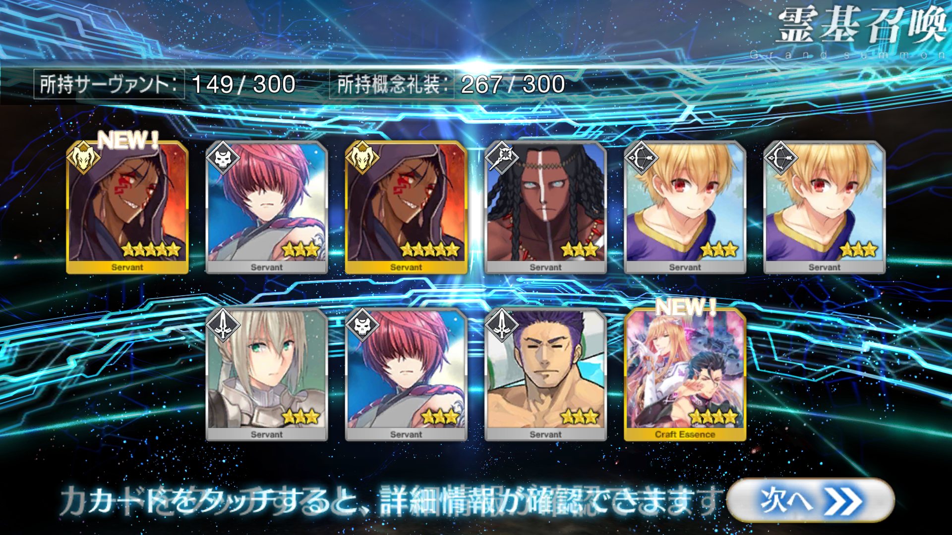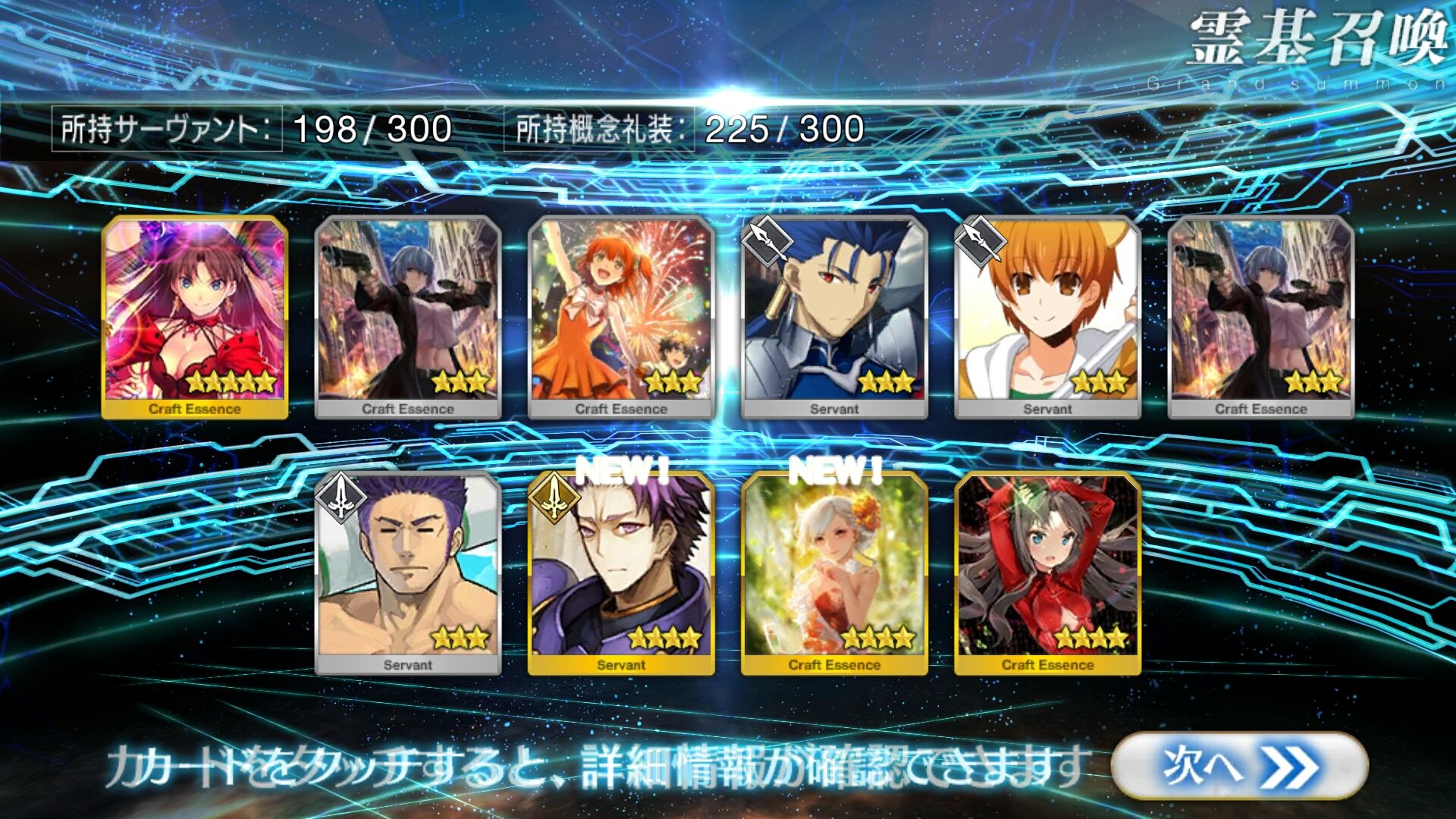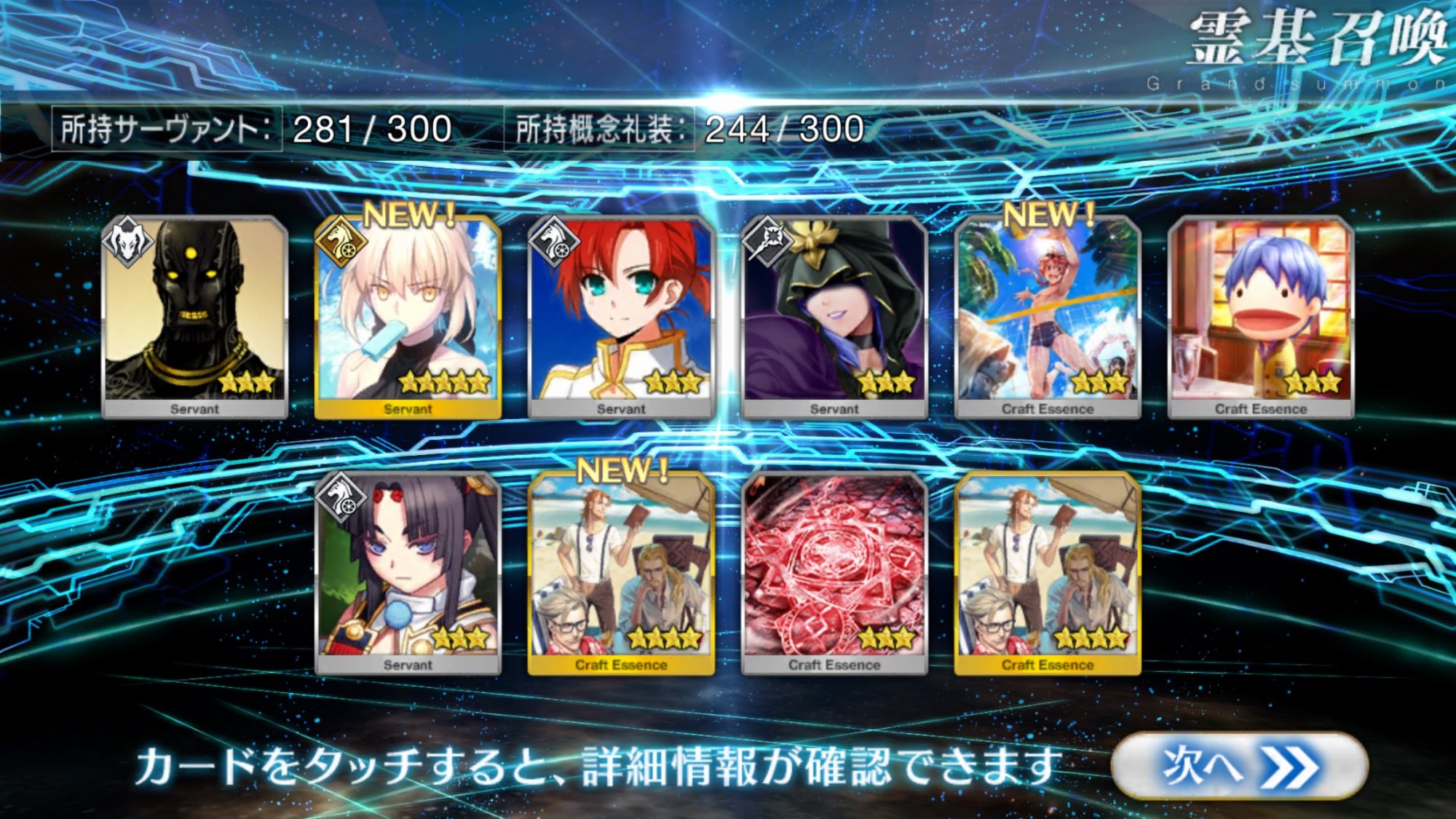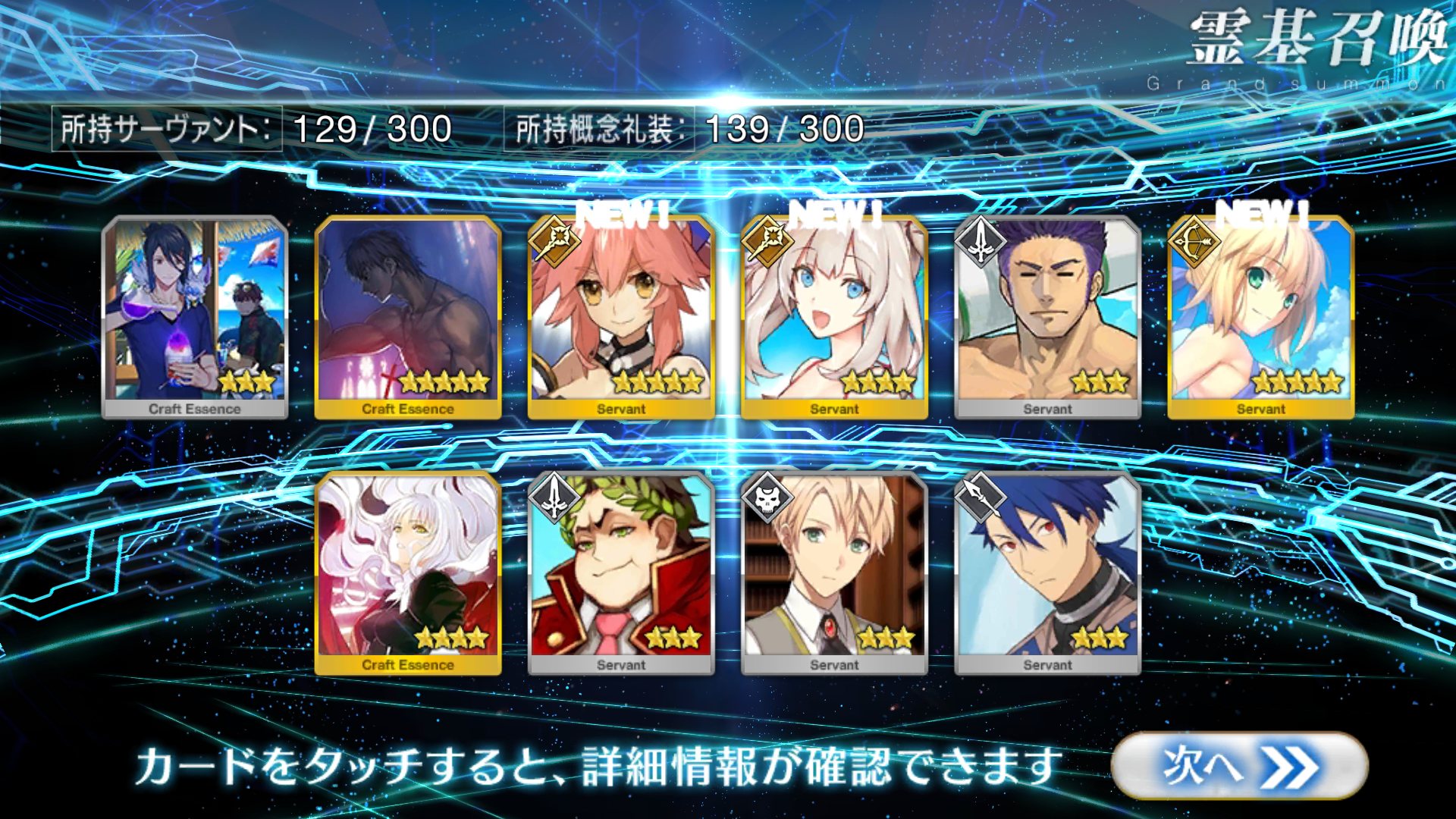 すり抜けてくれたのはずっと欲しかったジークフリート、あと三蔵は宝具を2にできた。
