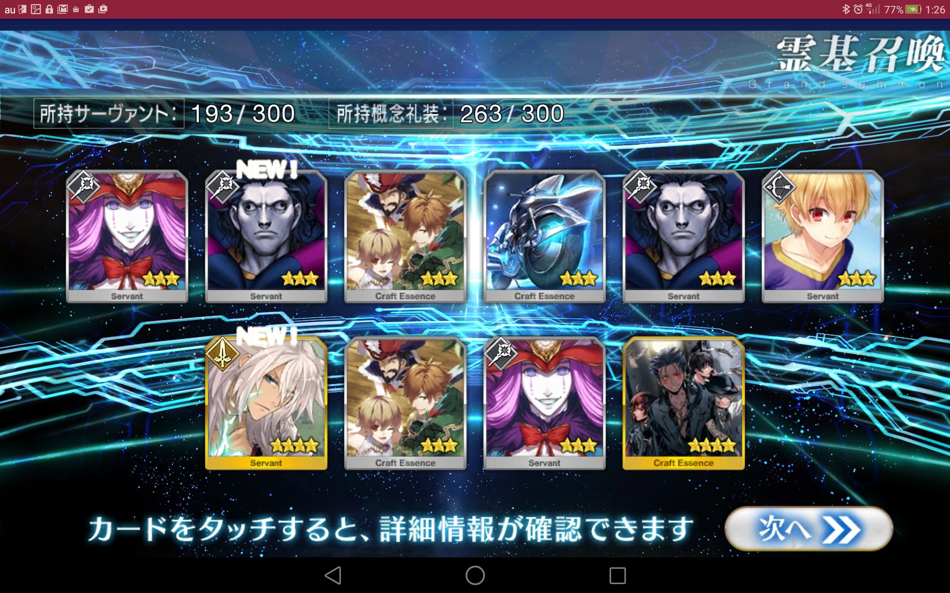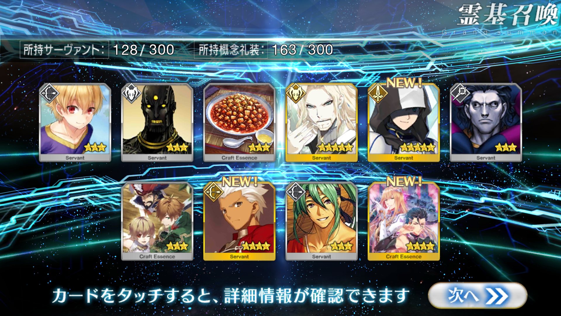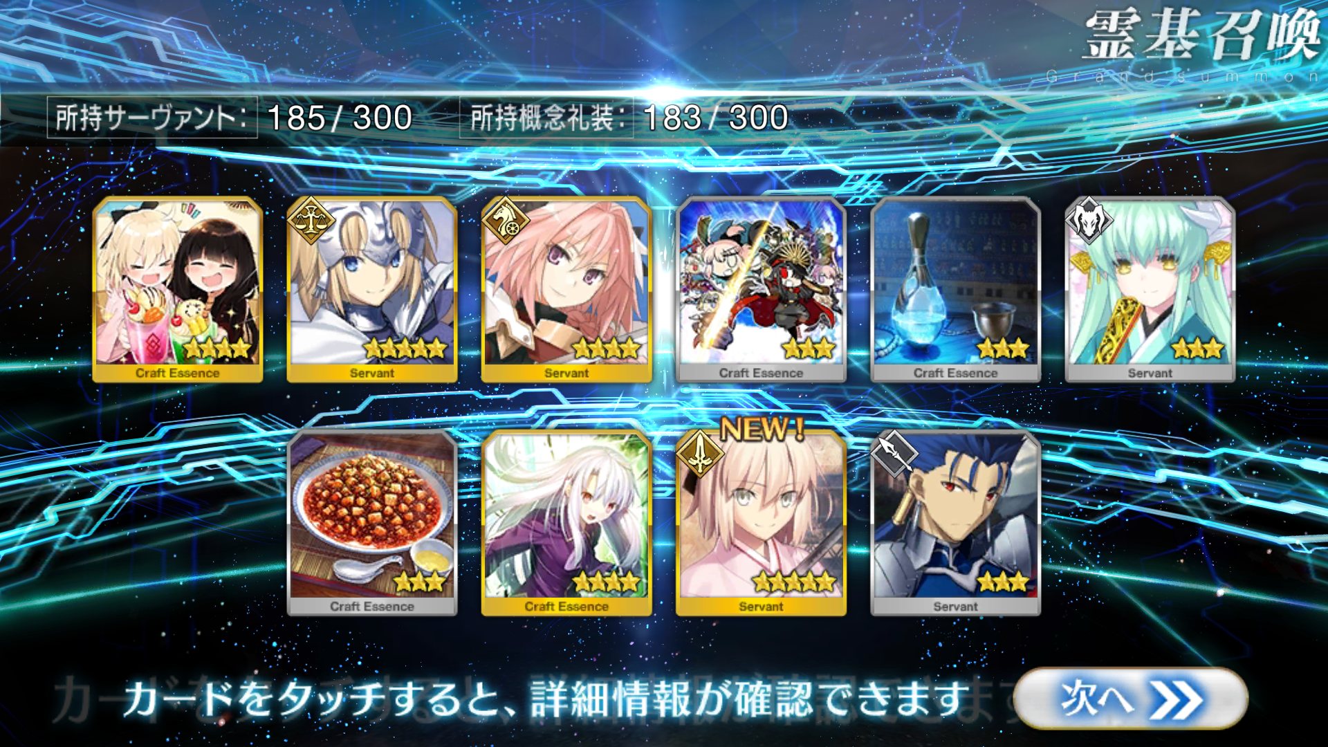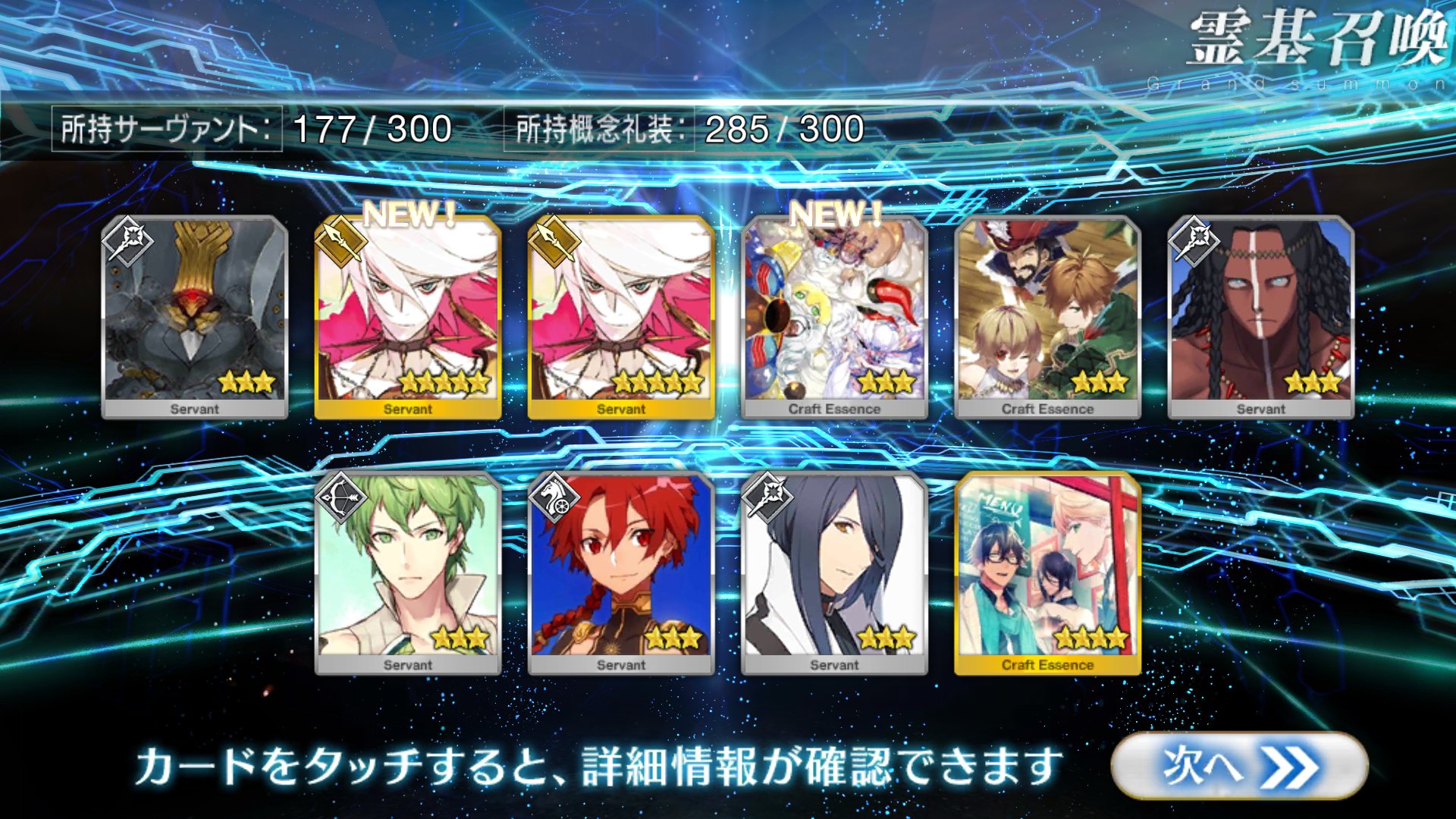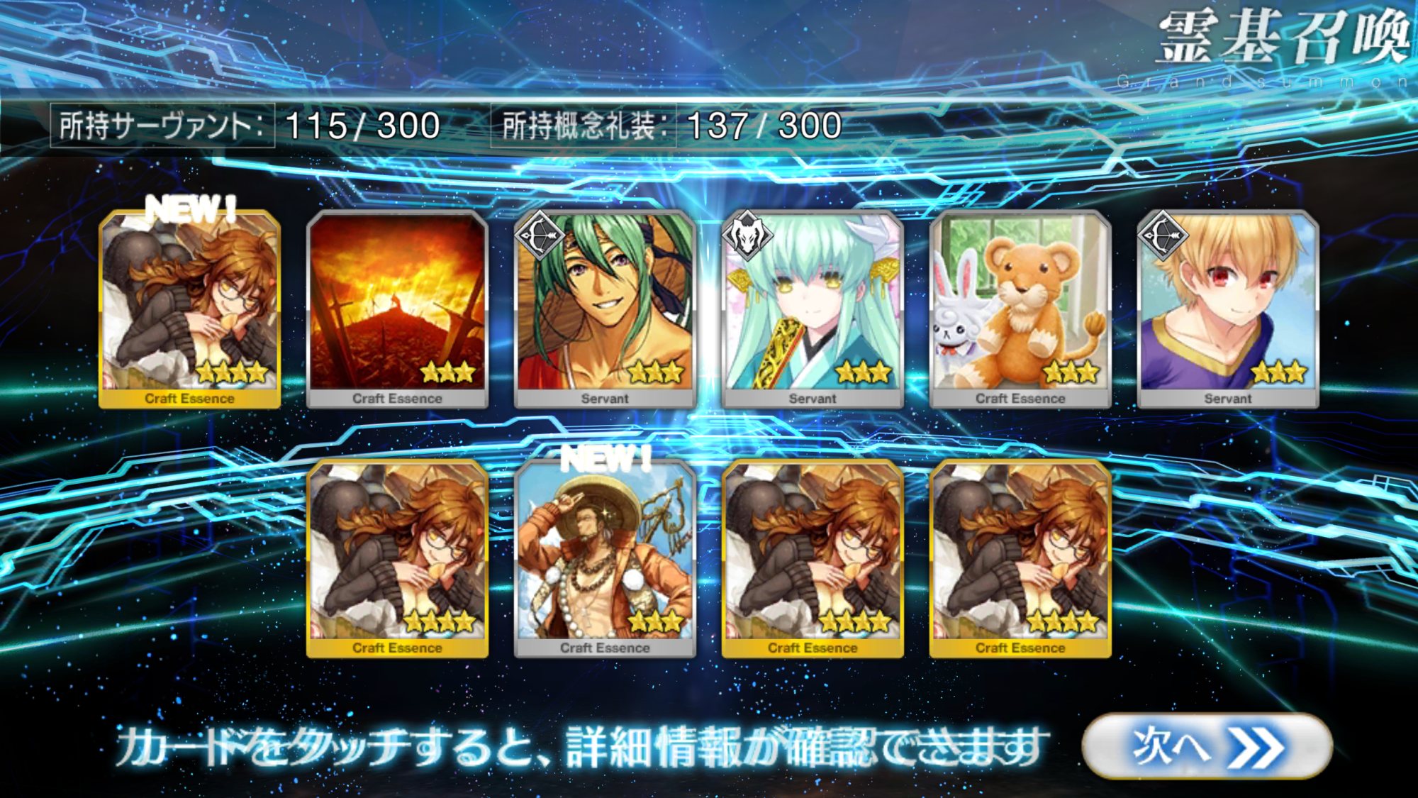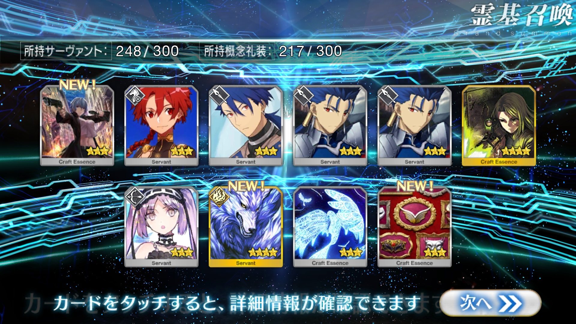 すり抜けてくれたのはずっと欲しかったジークフリート、あと三蔵は宝具を2にできた。