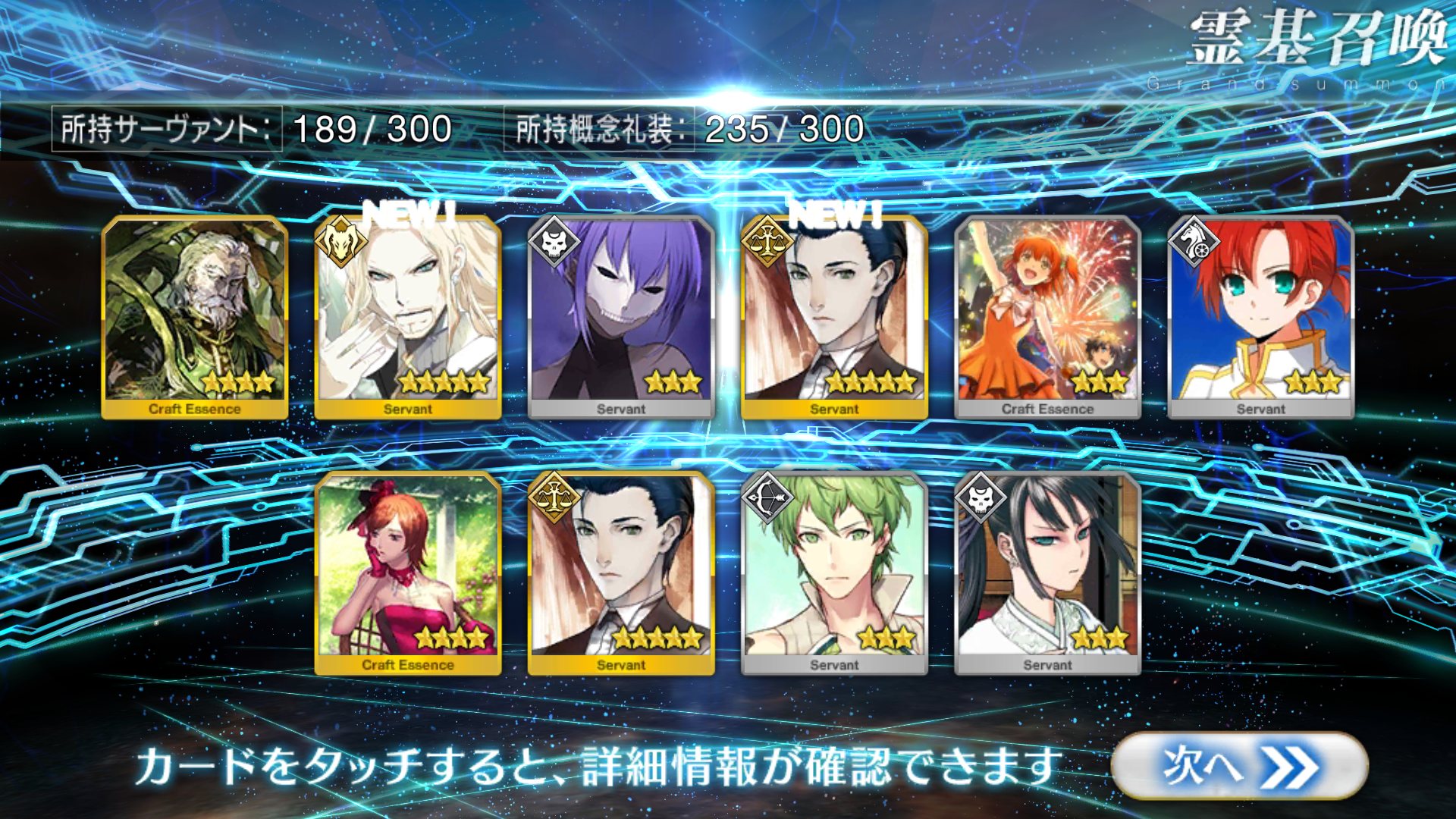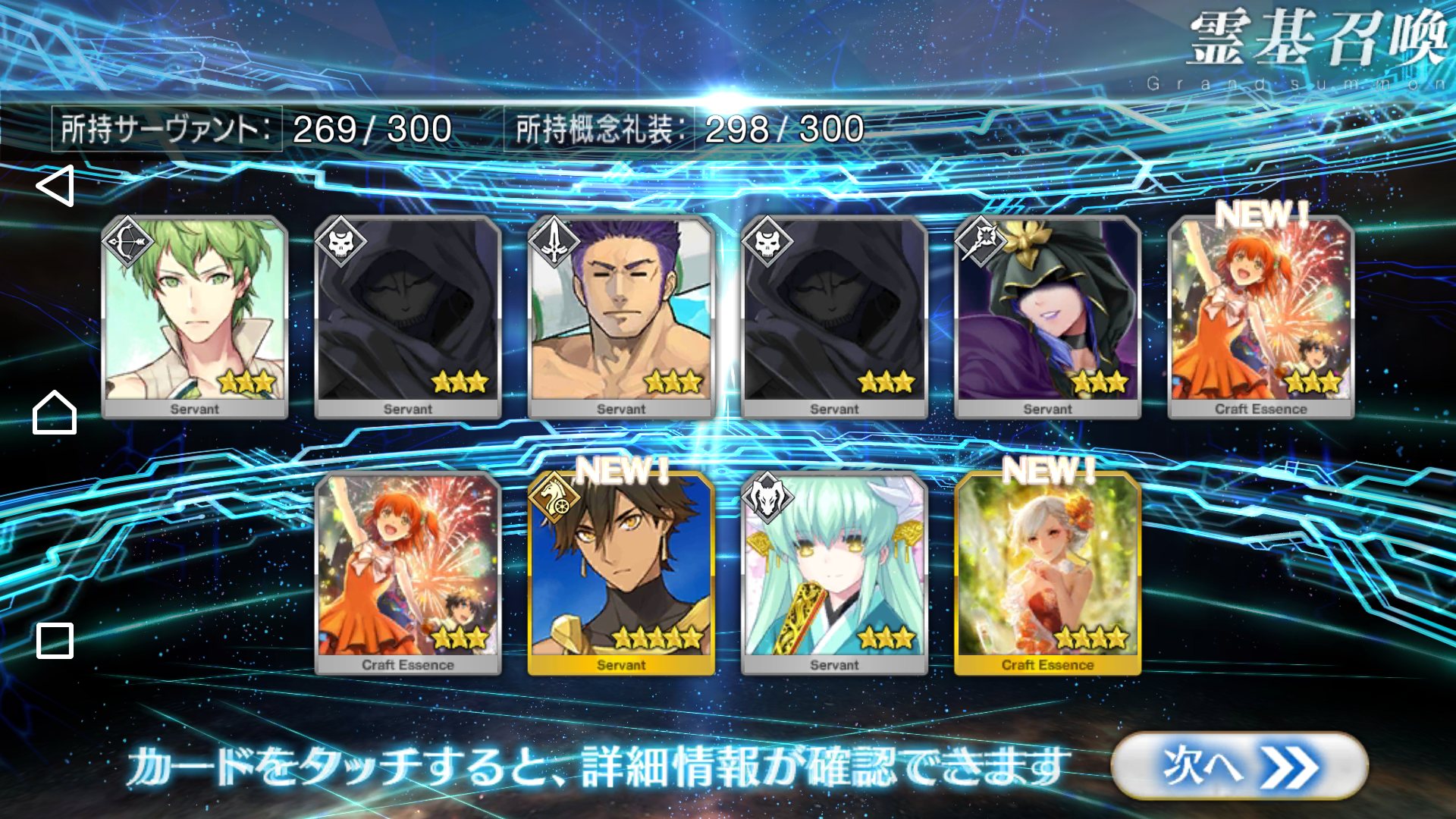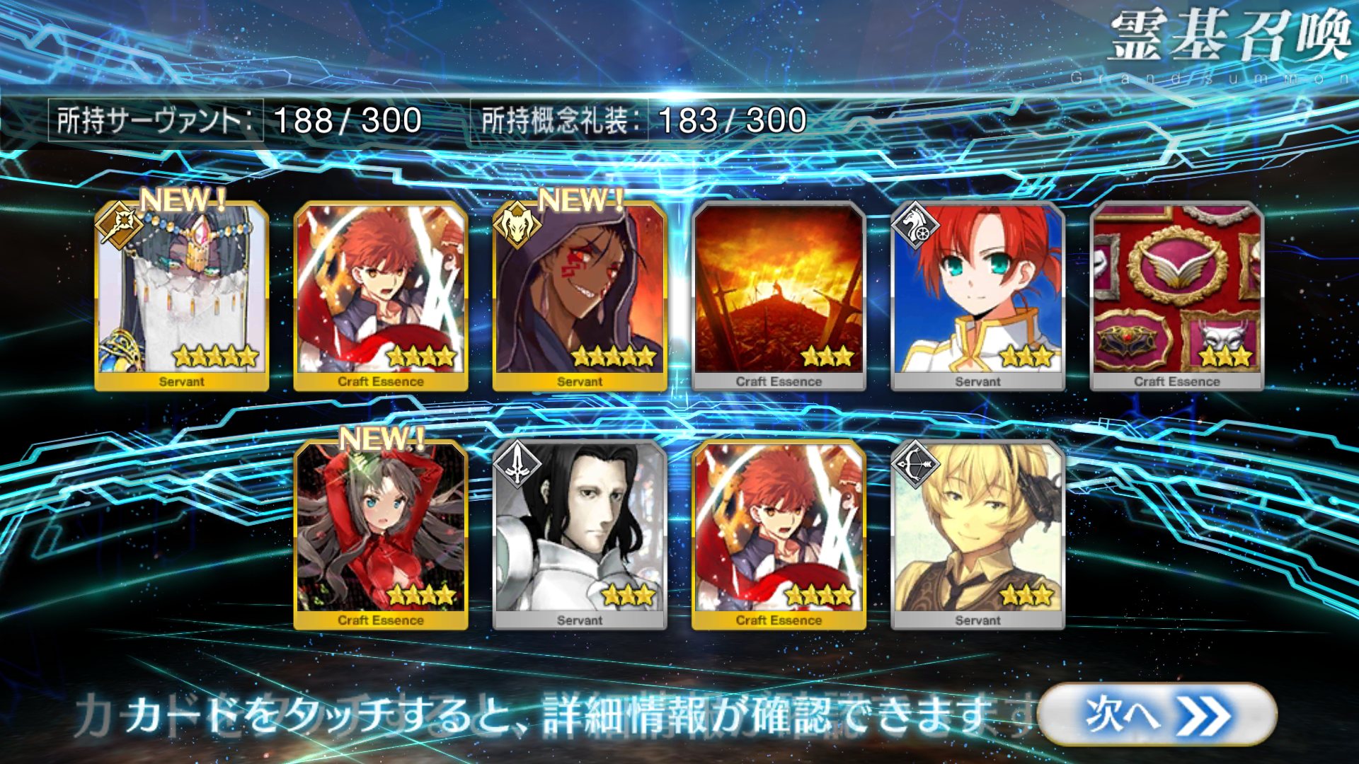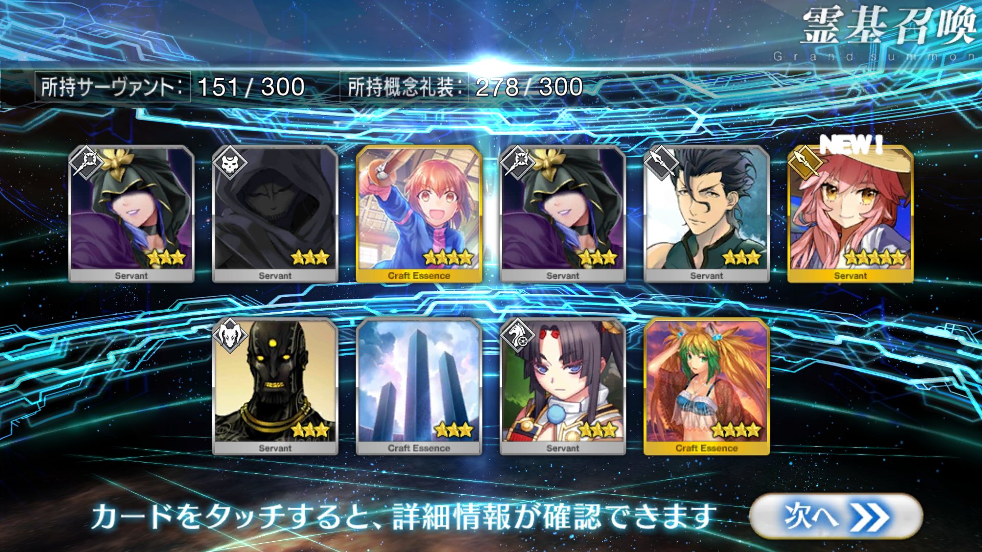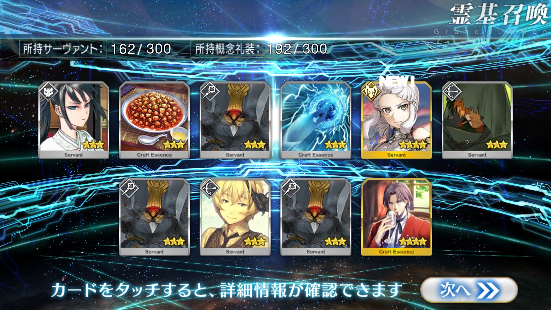 すり抜けてくれたのはずっと欲しかったジークフリート、あと三蔵は宝具を2にできた。