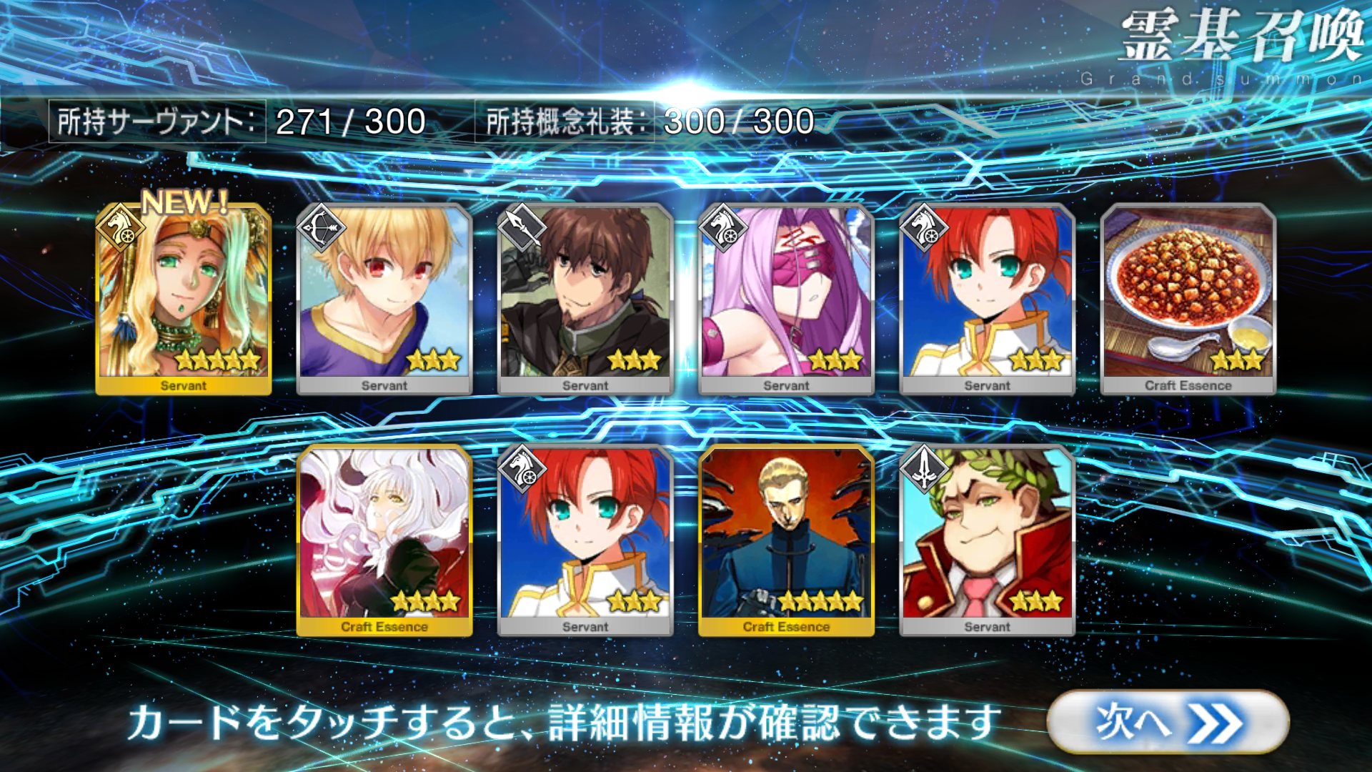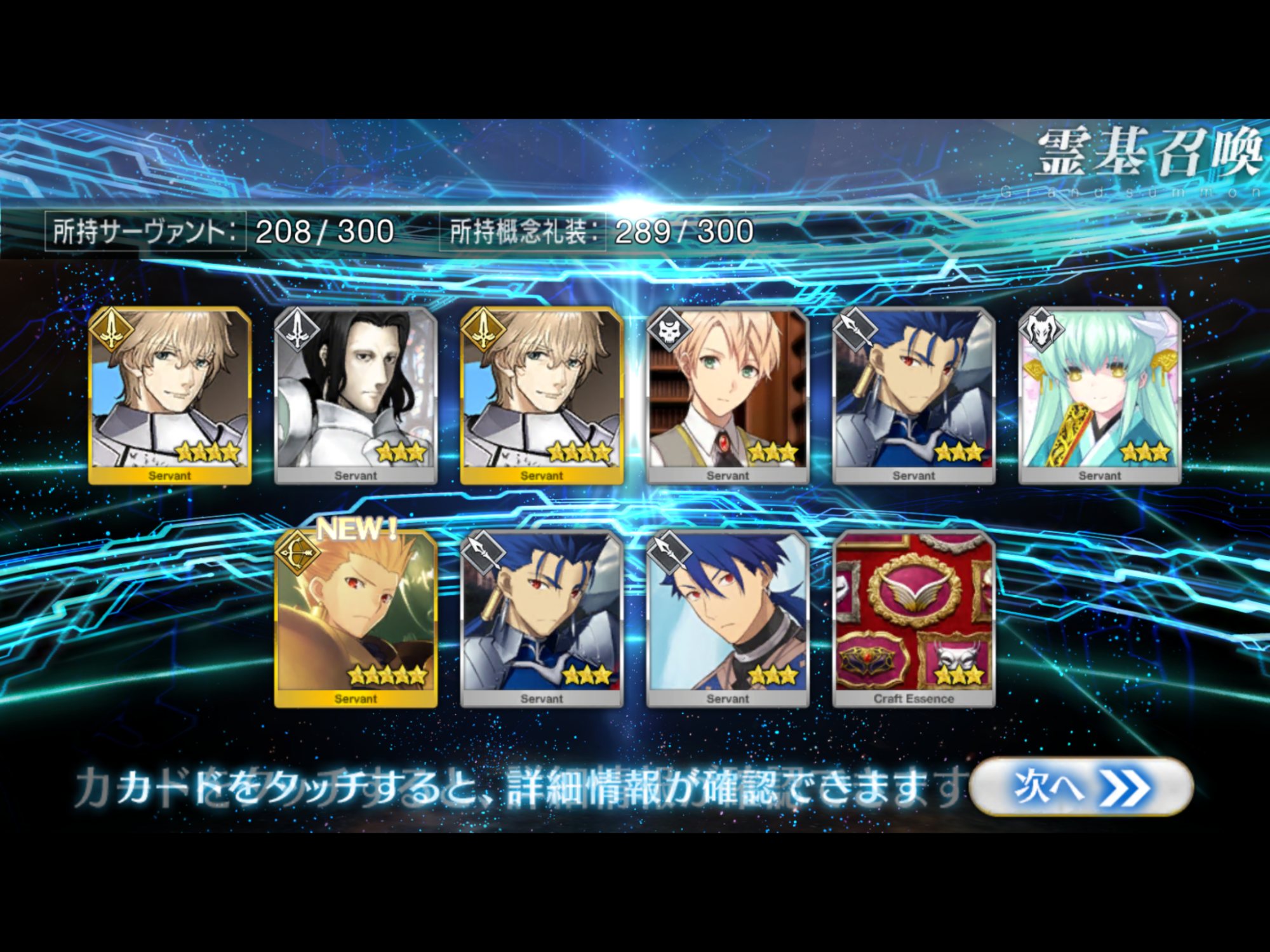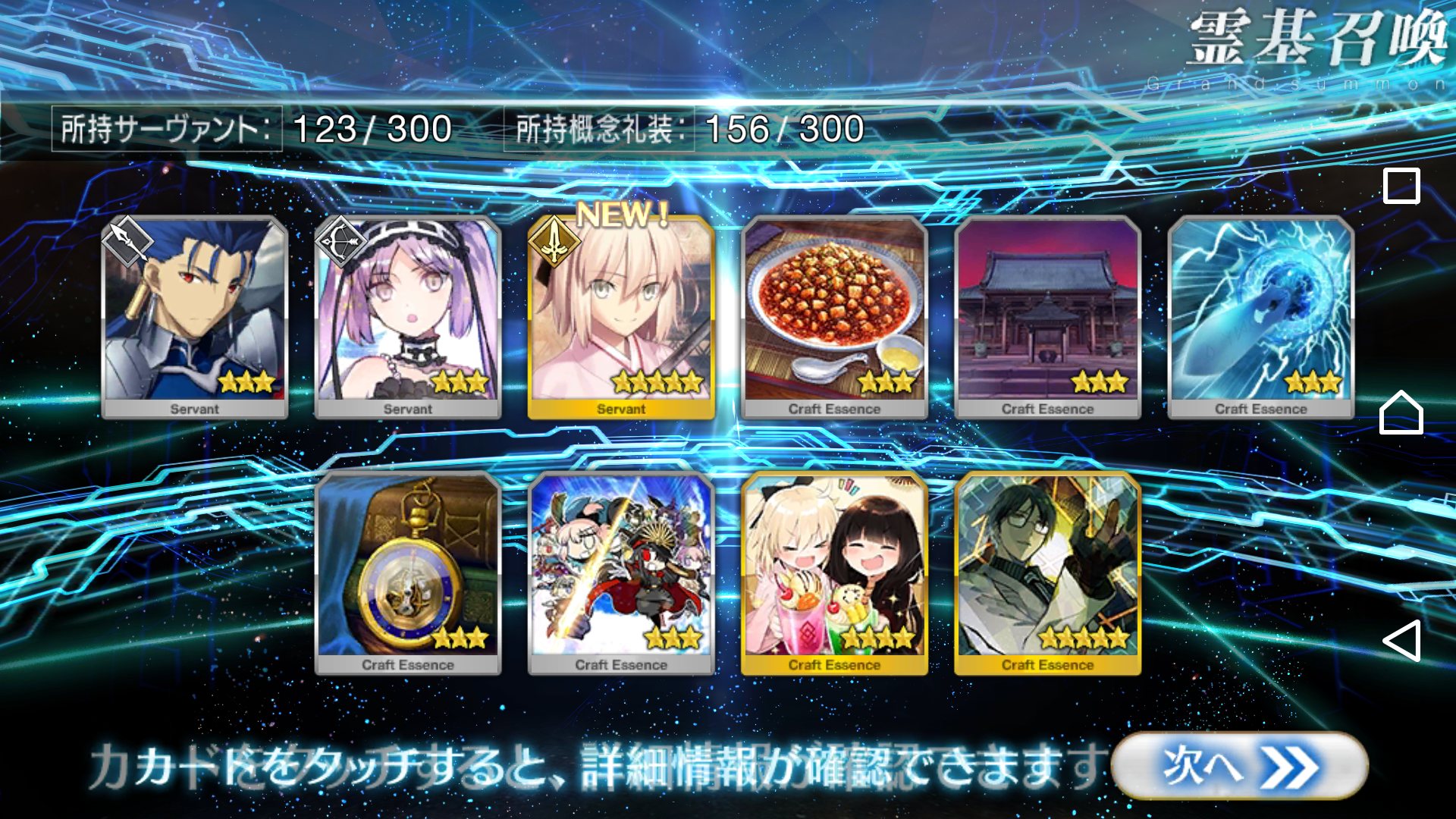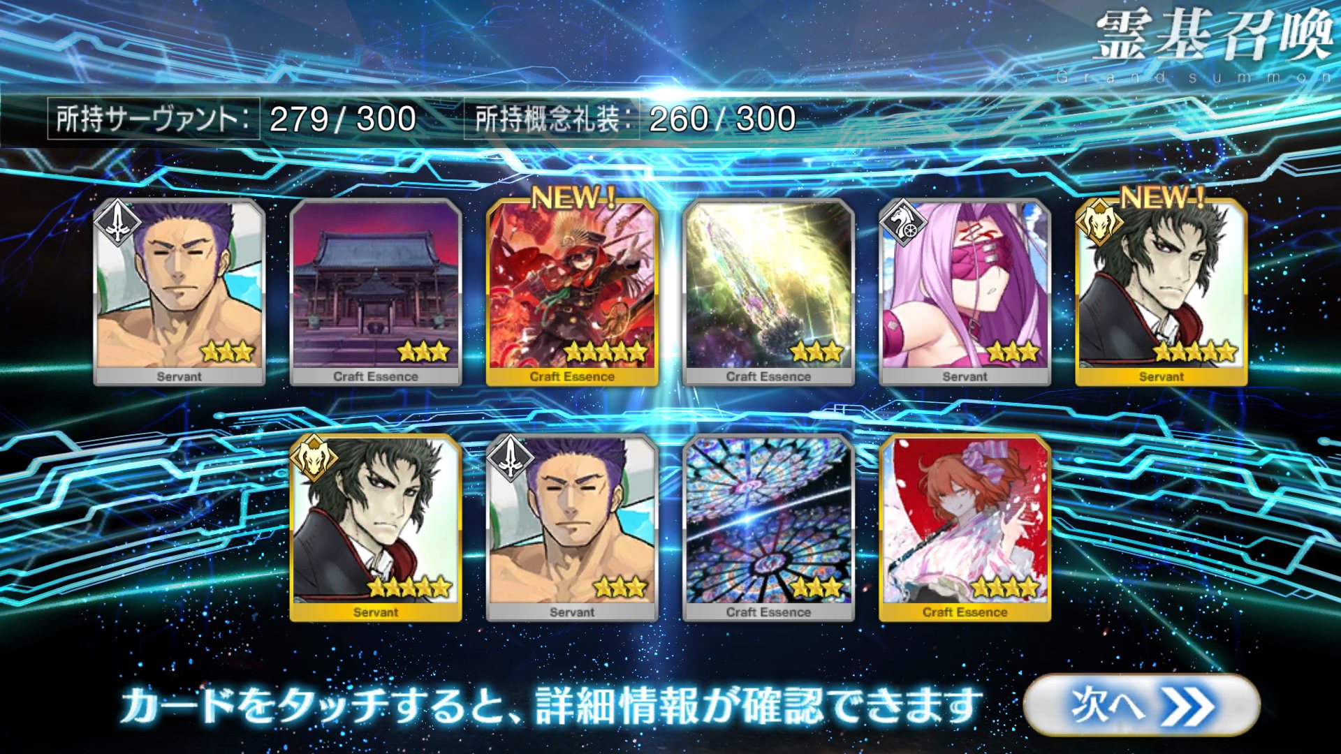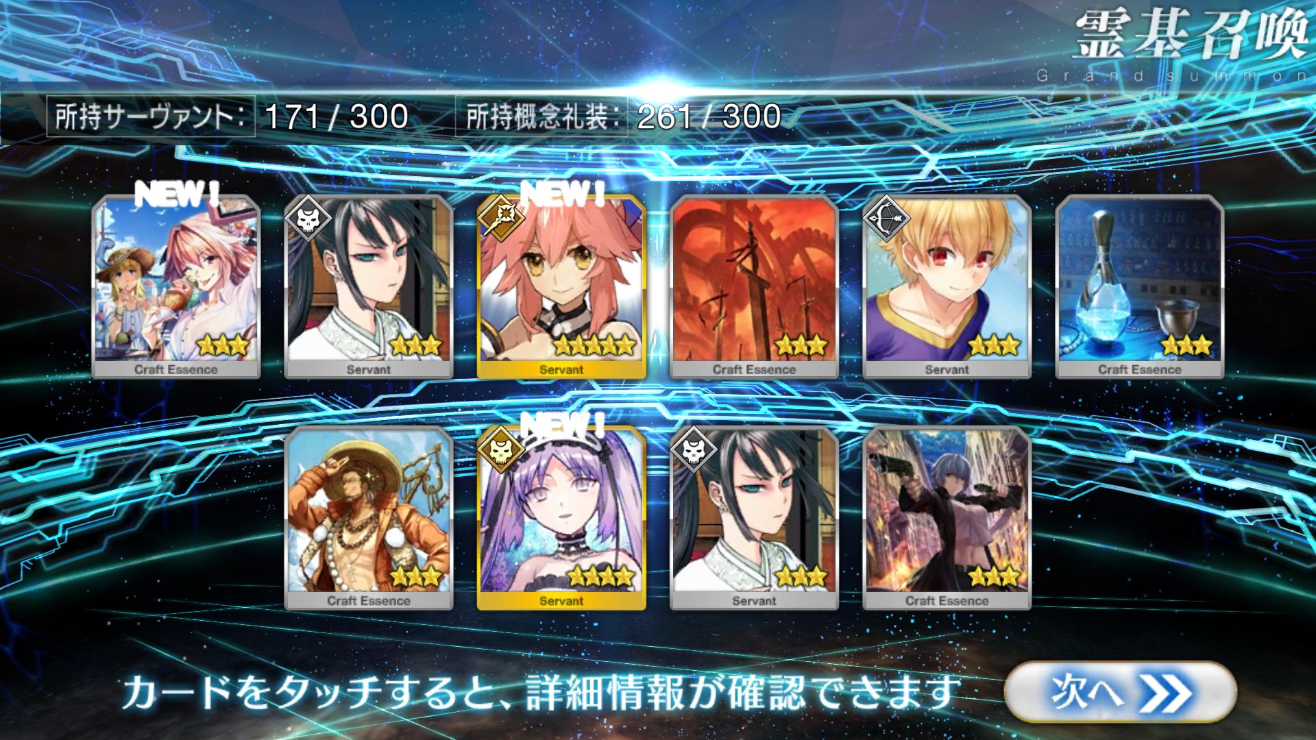 すり抜けてくれたのはずっと欲しかったジークフリート、あと三蔵は宝具を2にできた。