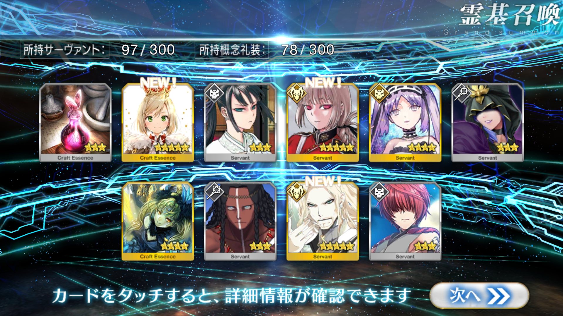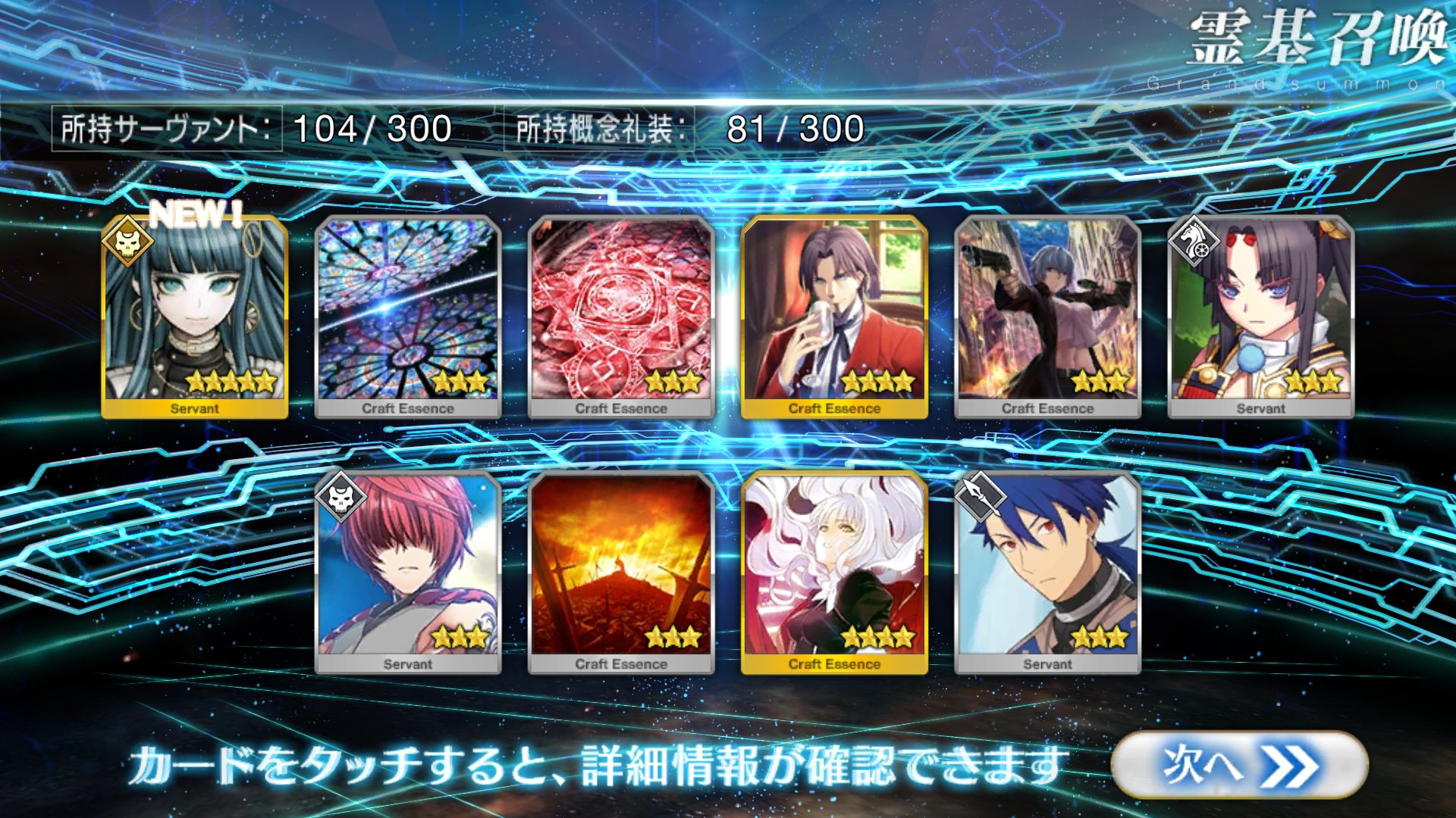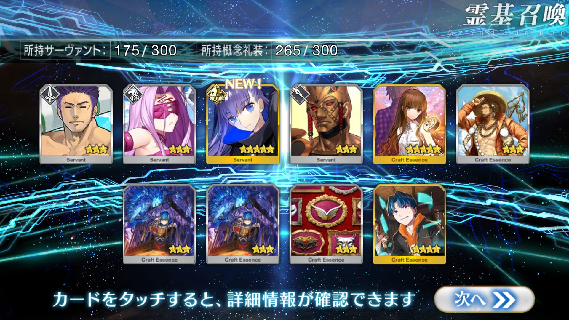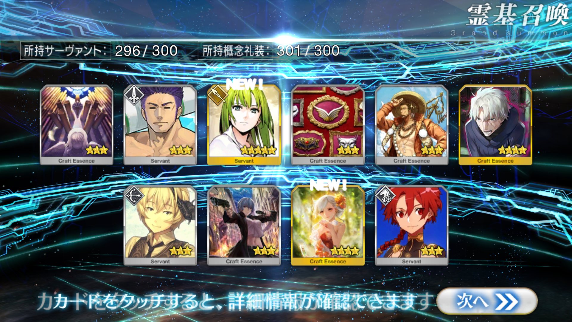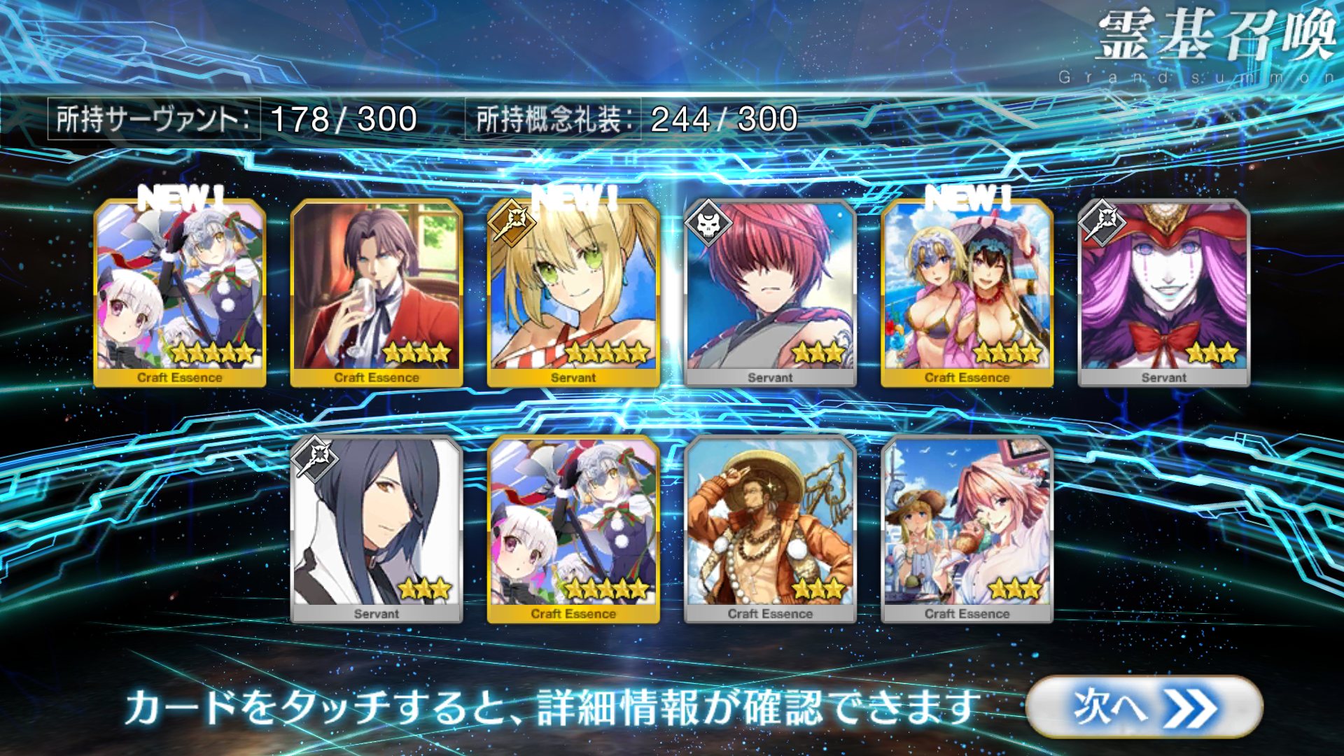 すり抜けてくれたのはずっと欲しかったジークフリート、あと三蔵は宝具を2にできた。